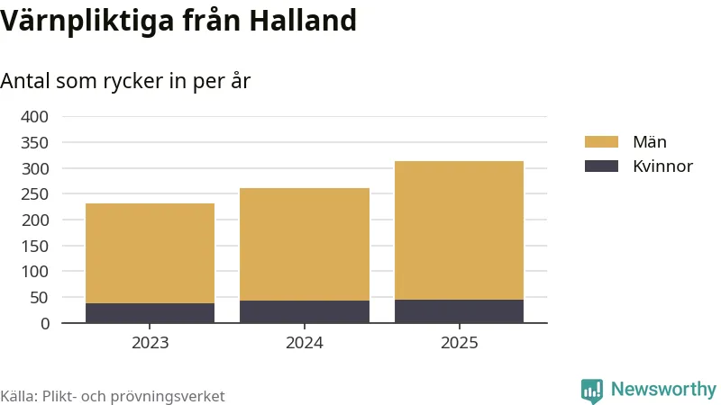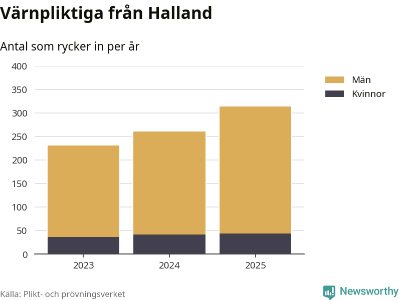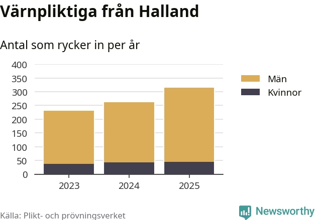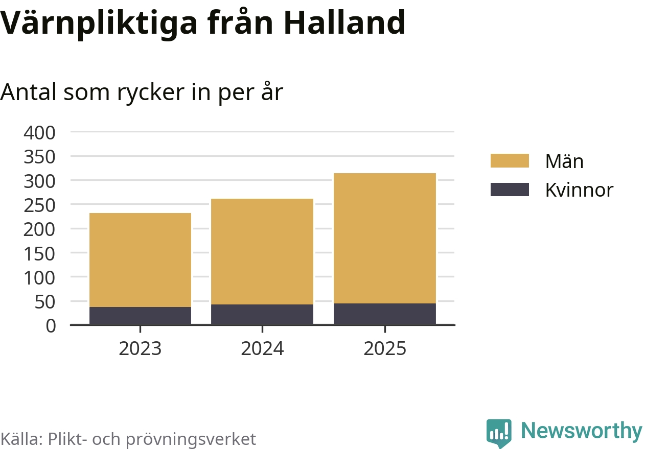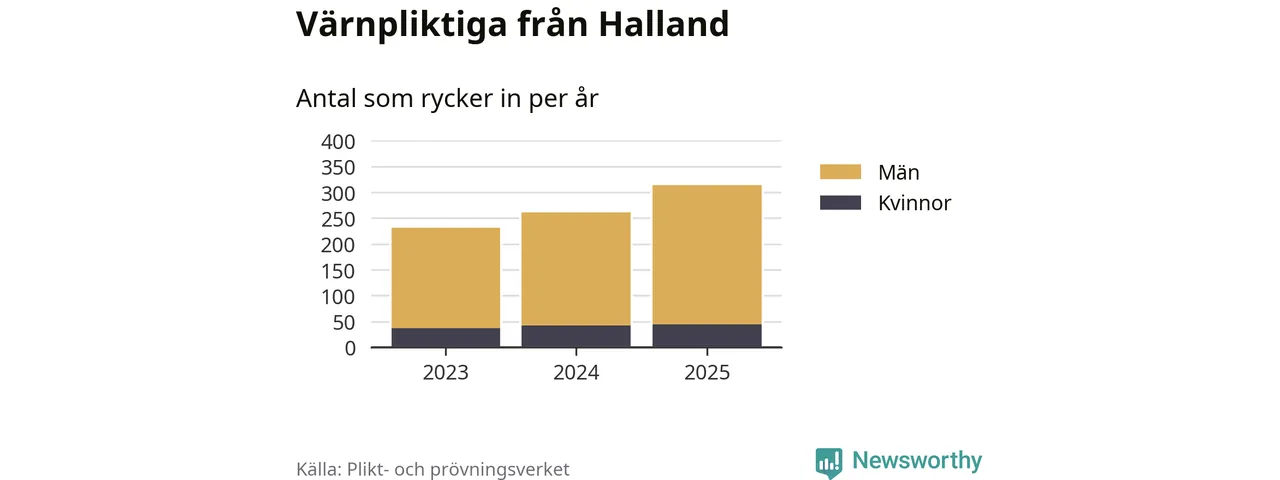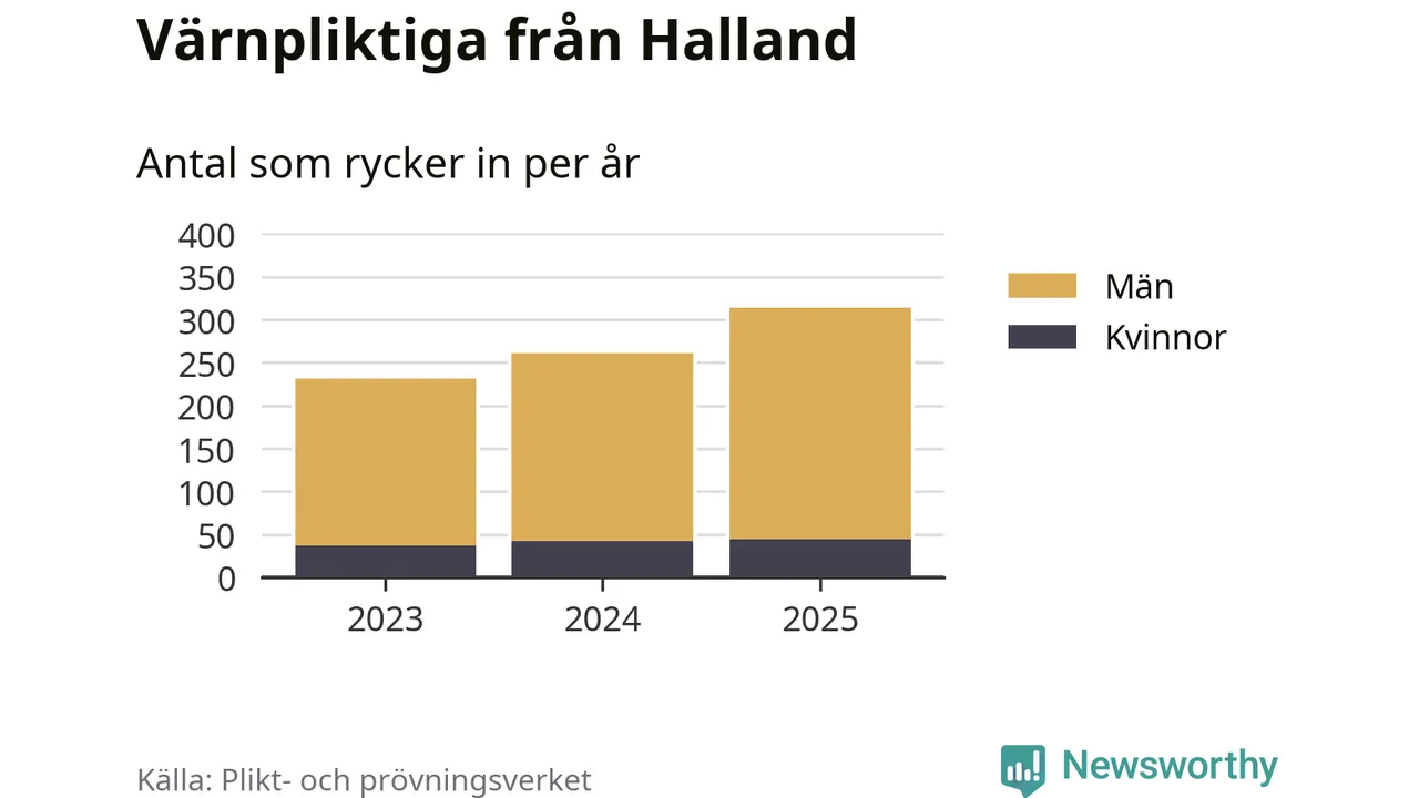 Sedan 2023 – som är det första året vi har jämförbara siffror för – har totalt 806 ungdomar från Halland påbörjat sin värnplikt. Av dem har 123 varit kvinnor.