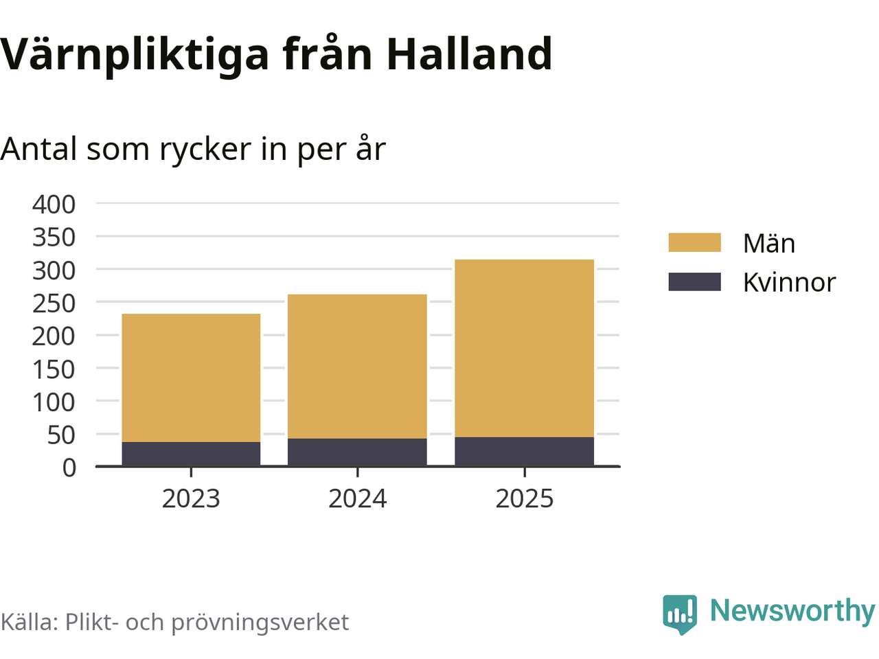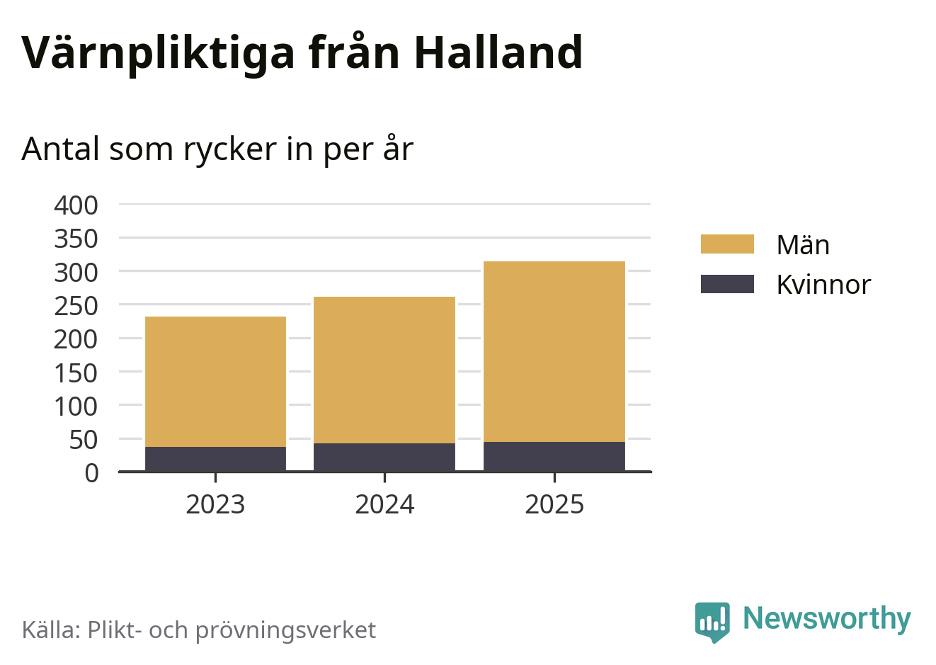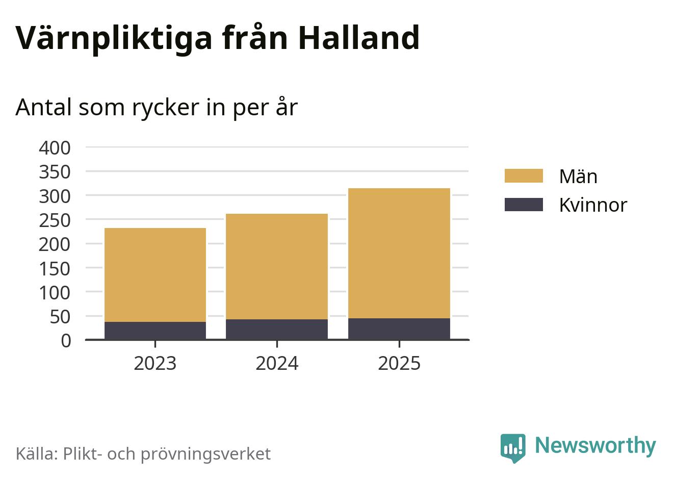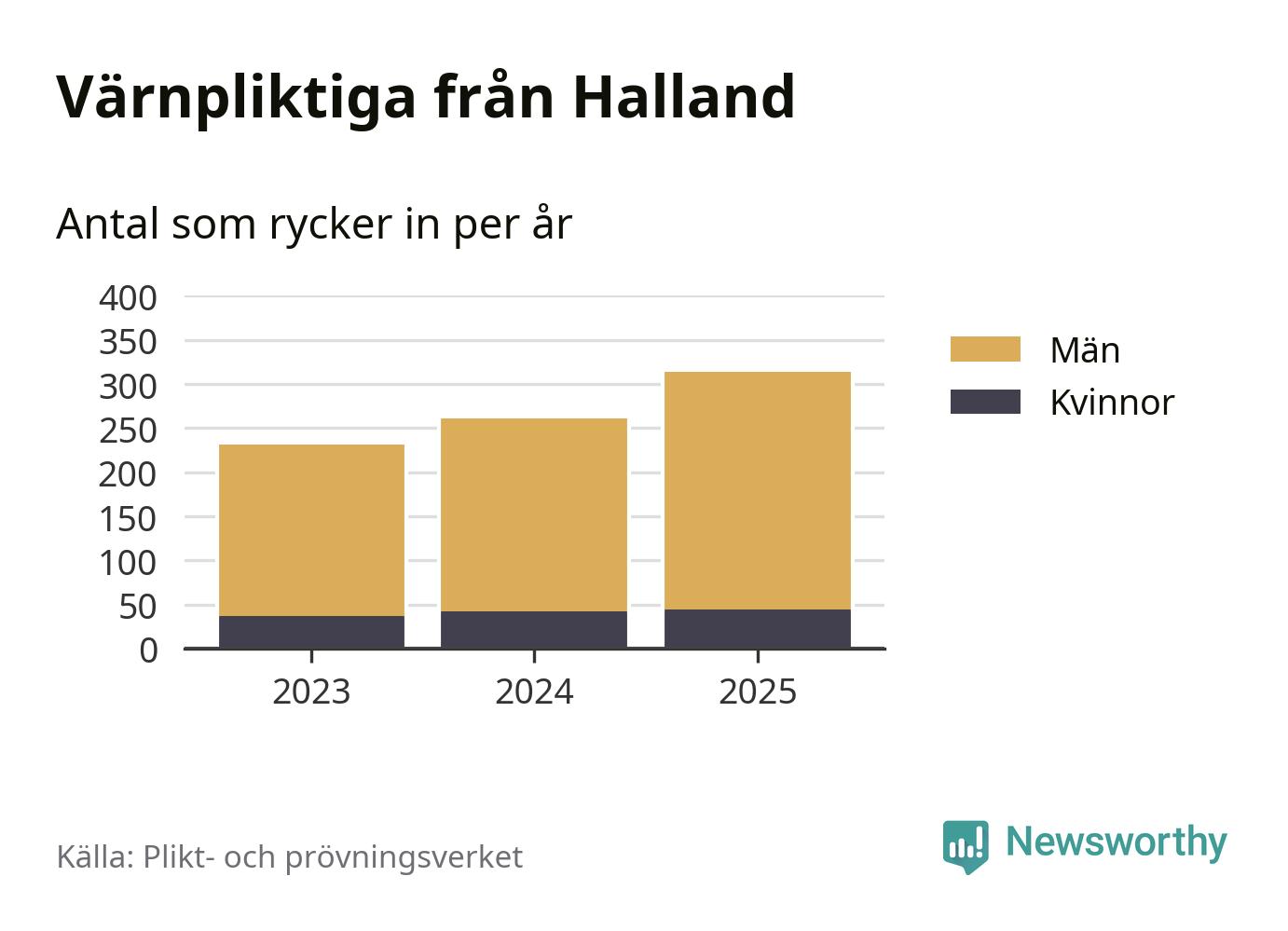 Sedan 2023 – som är det första året vi har jämförbara siffror för – har totalt 806 ungdomar från Halland påbörjat sin värnplikt. Av dem har 123 varit kvinnor.