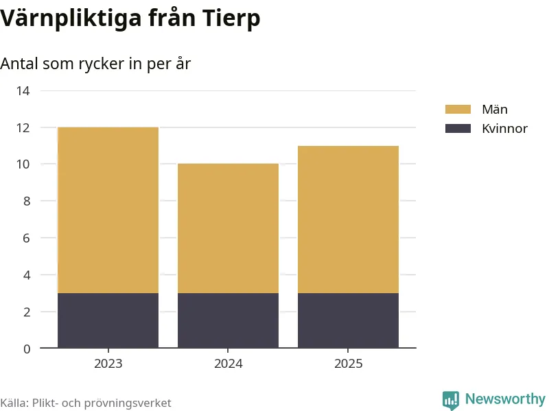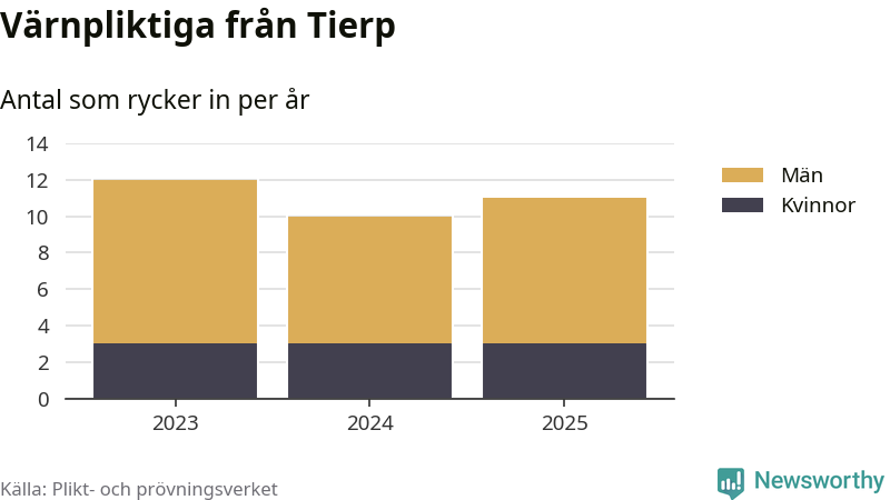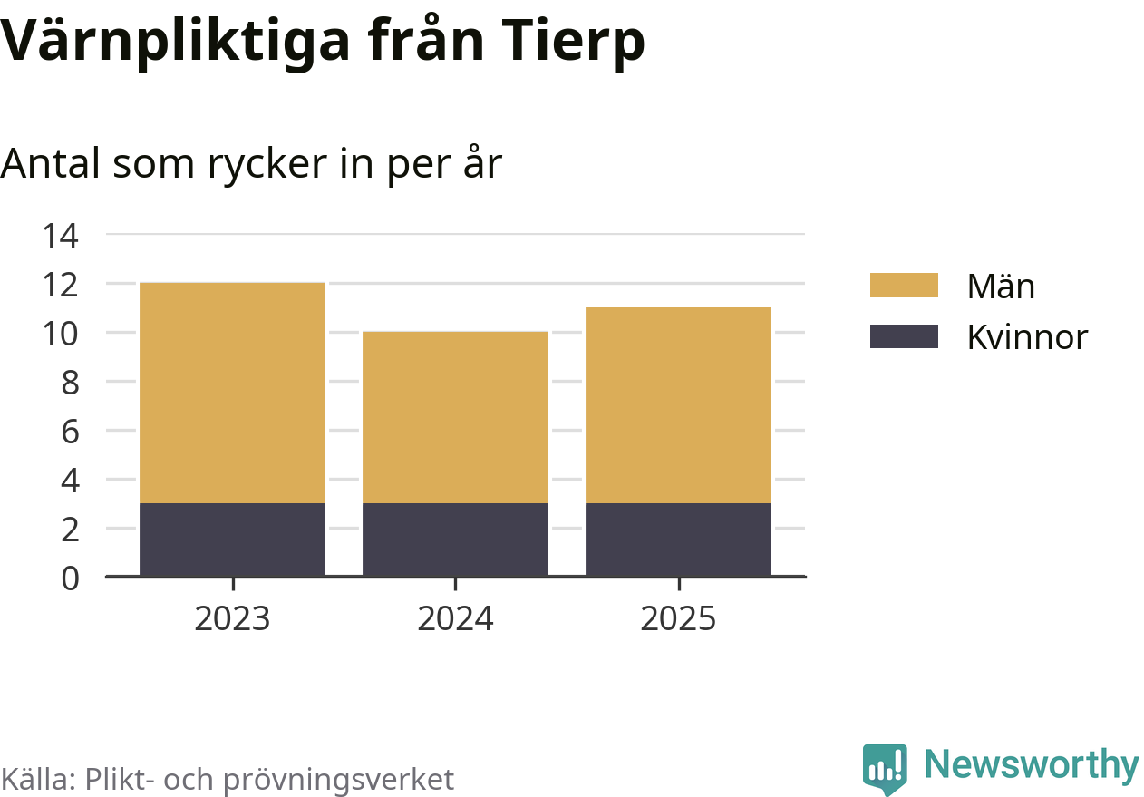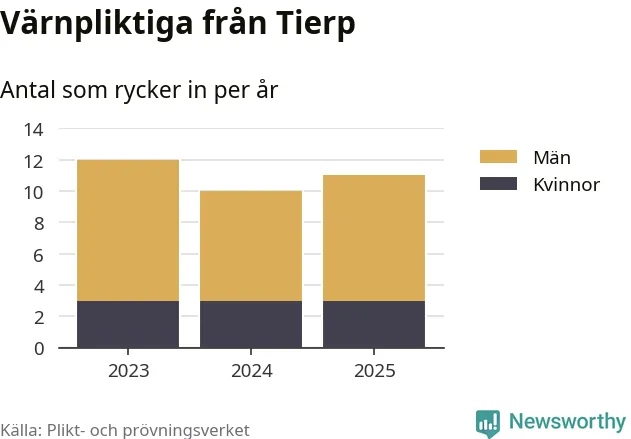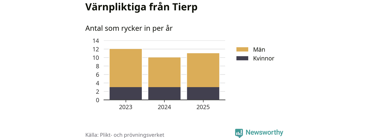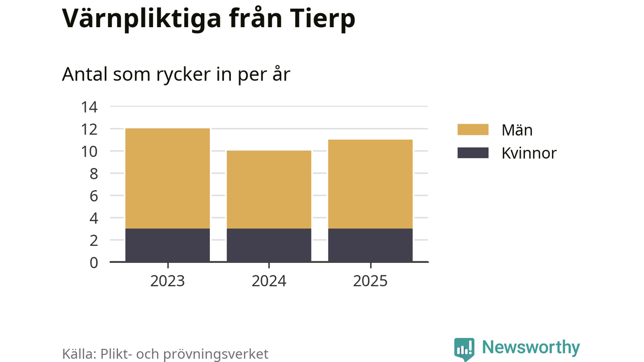 Sedan 2023 – som är det första året vi har jämförbara siffror för – har totalt 33 ungdomar från Tierp påbörjat sin värnplikt. Av dem har nio varit kvinnor.