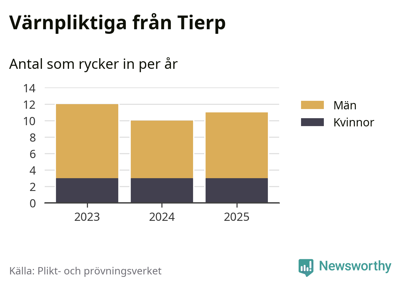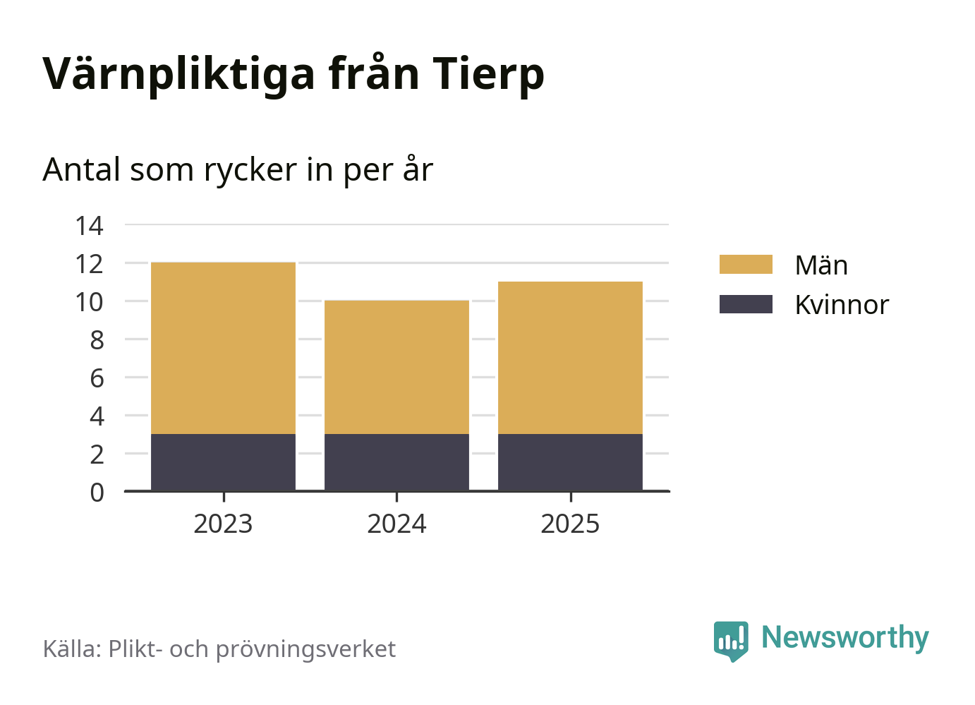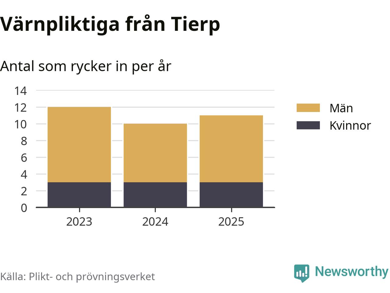 Sedan 2023 – som är det första året vi har jämförbara siffror för – har totalt 33 ungdomar från Tierp påbörjat sin värnplikt. Av dem har nio varit kvinnor.