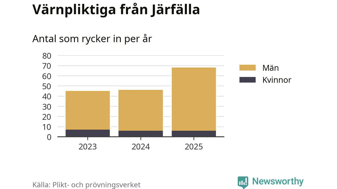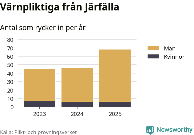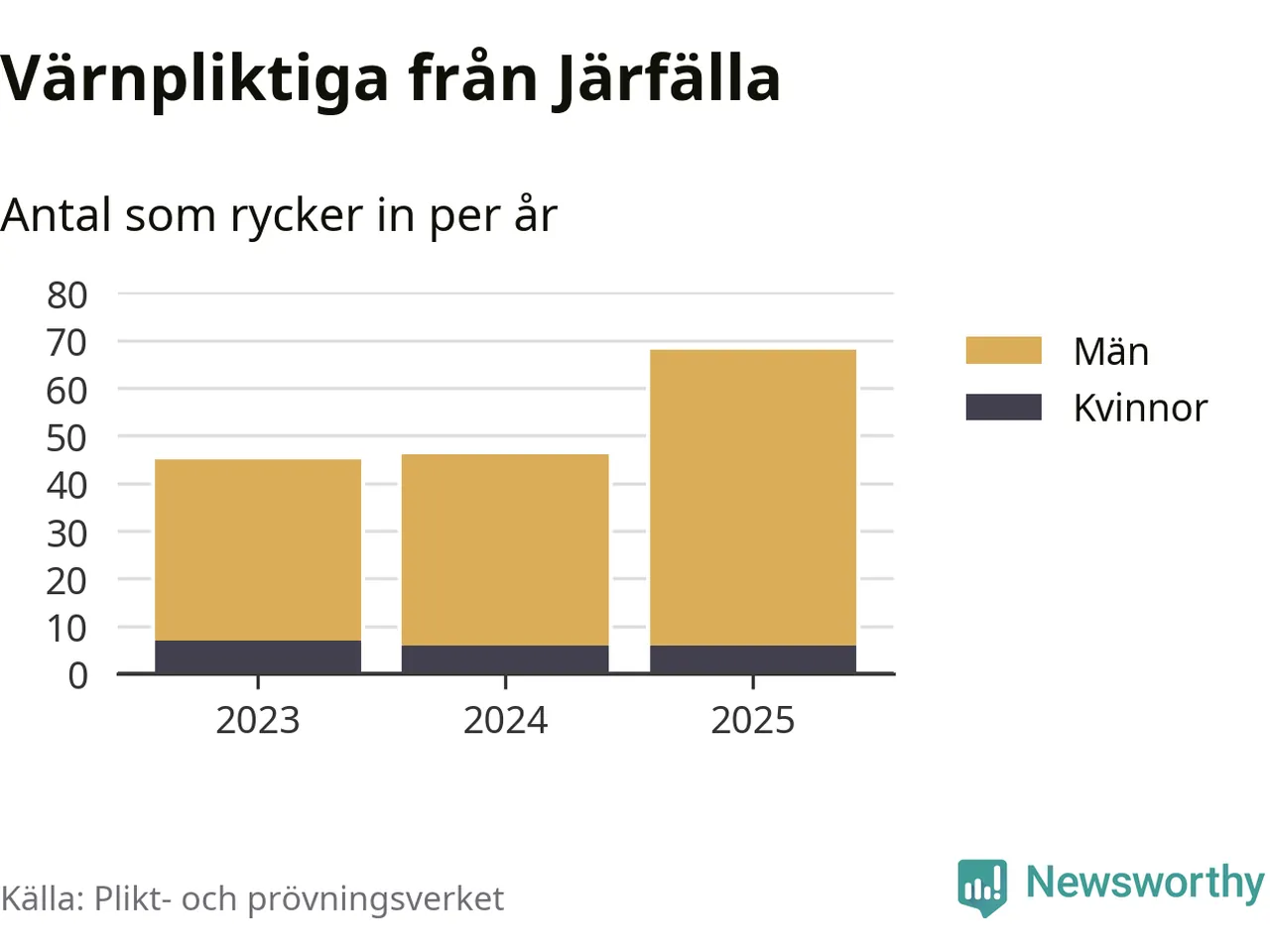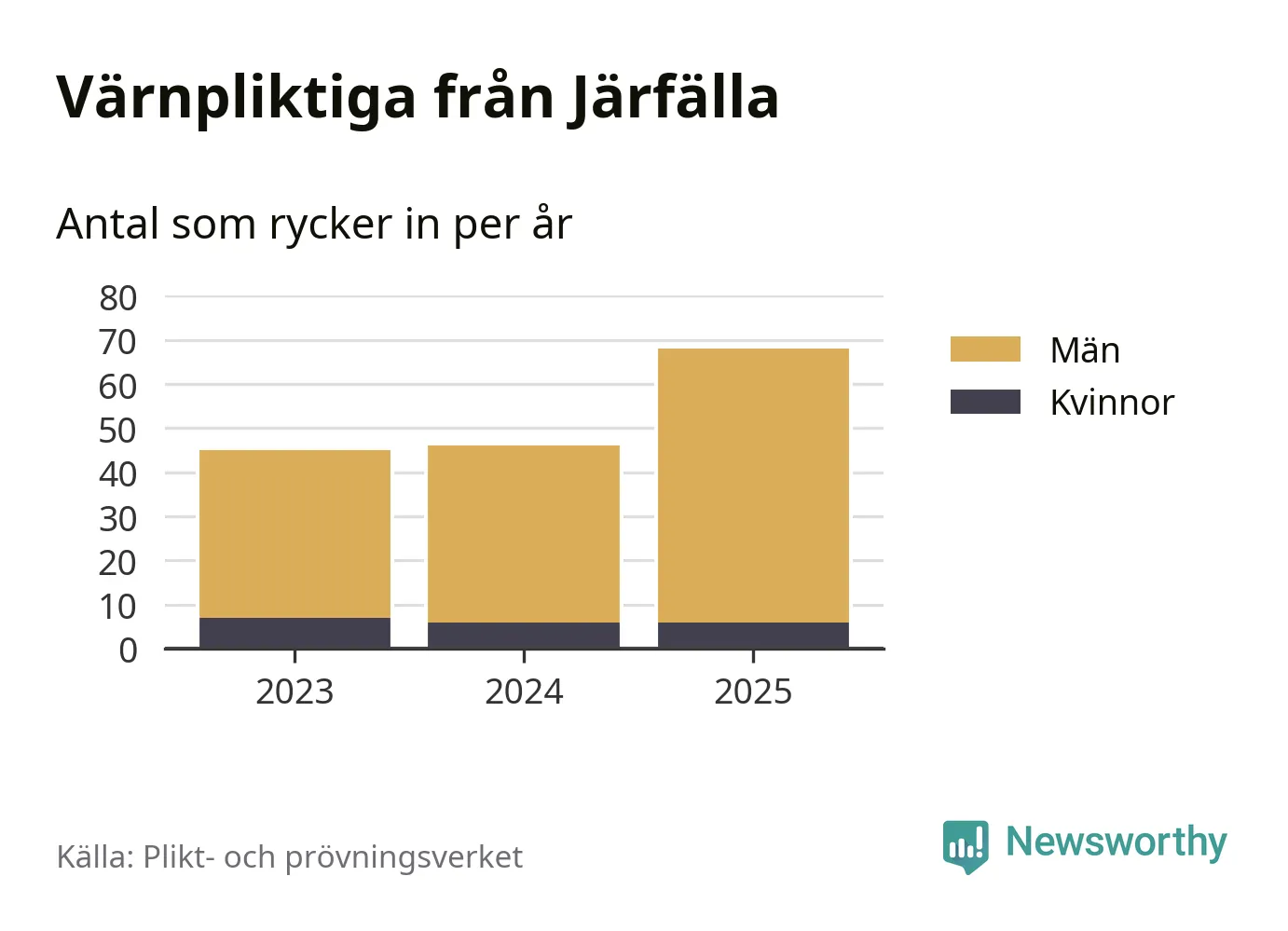 Sedan 2023 – som är det första året vi har jämförbara siffror för – har totalt 159 ungdomar från Järfälla påbörjat sin värnplikt. Av dem har 19 varit kvinnor.