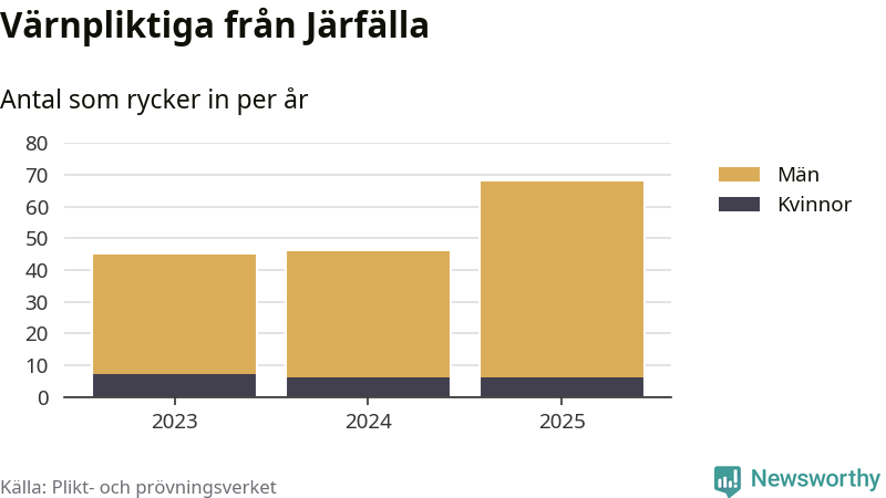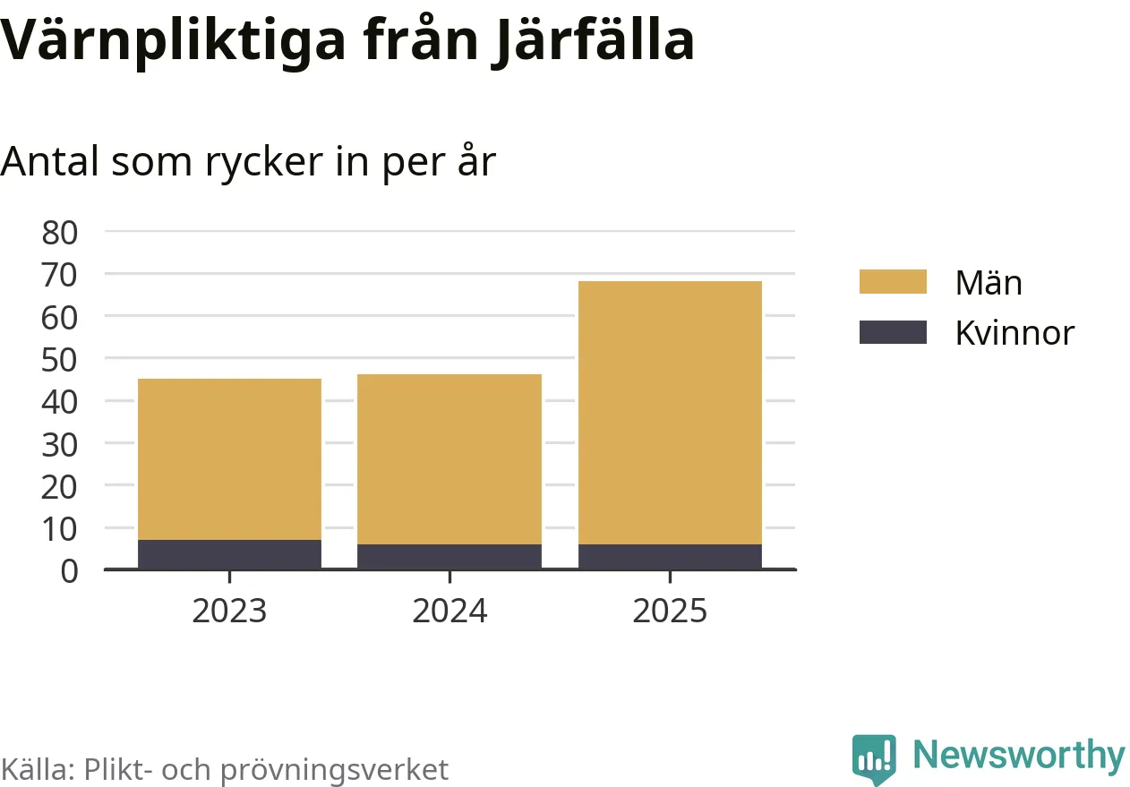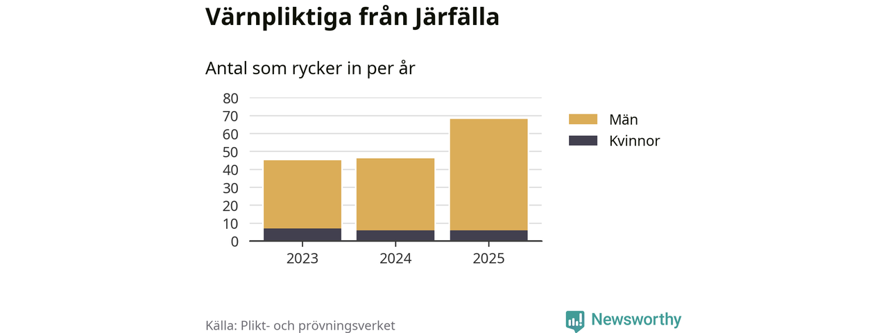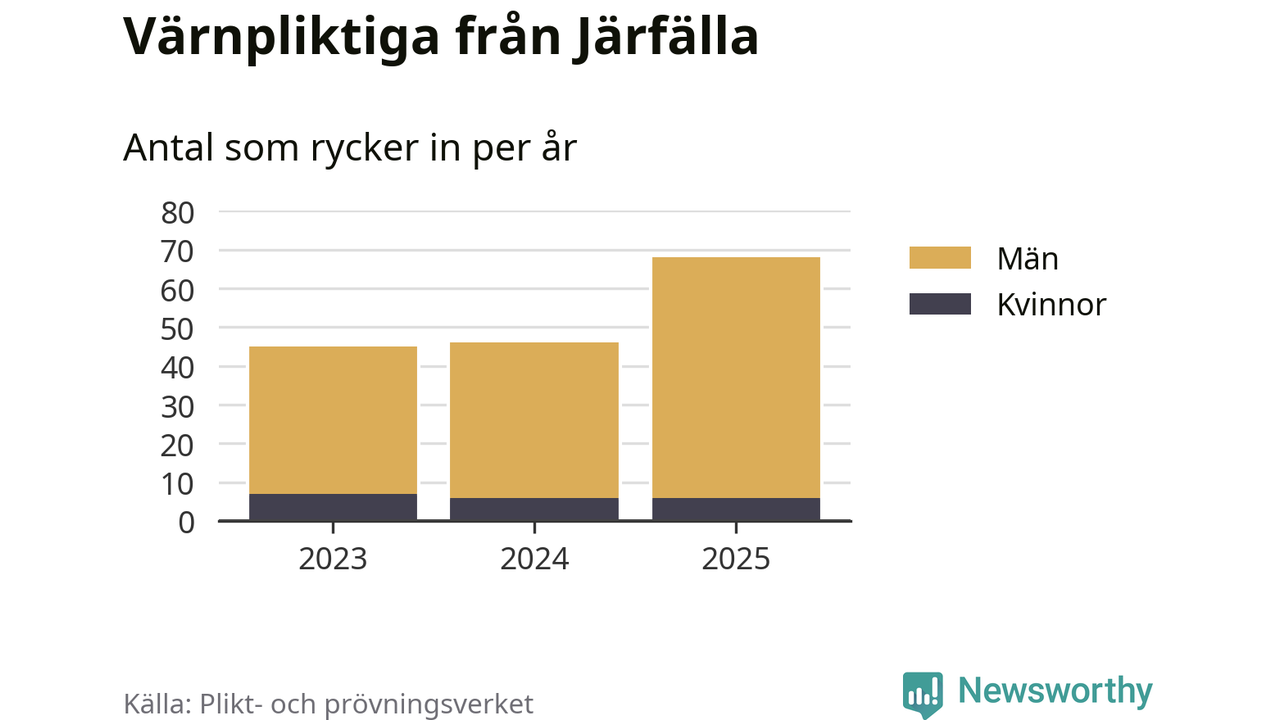 Sedan 2023 – som är det första året vi har jämförbara siffror för – har totalt 159 ungdomar från Järfälla påbörjat sin värnplikt. Av dem har 19 varit kvinnor.