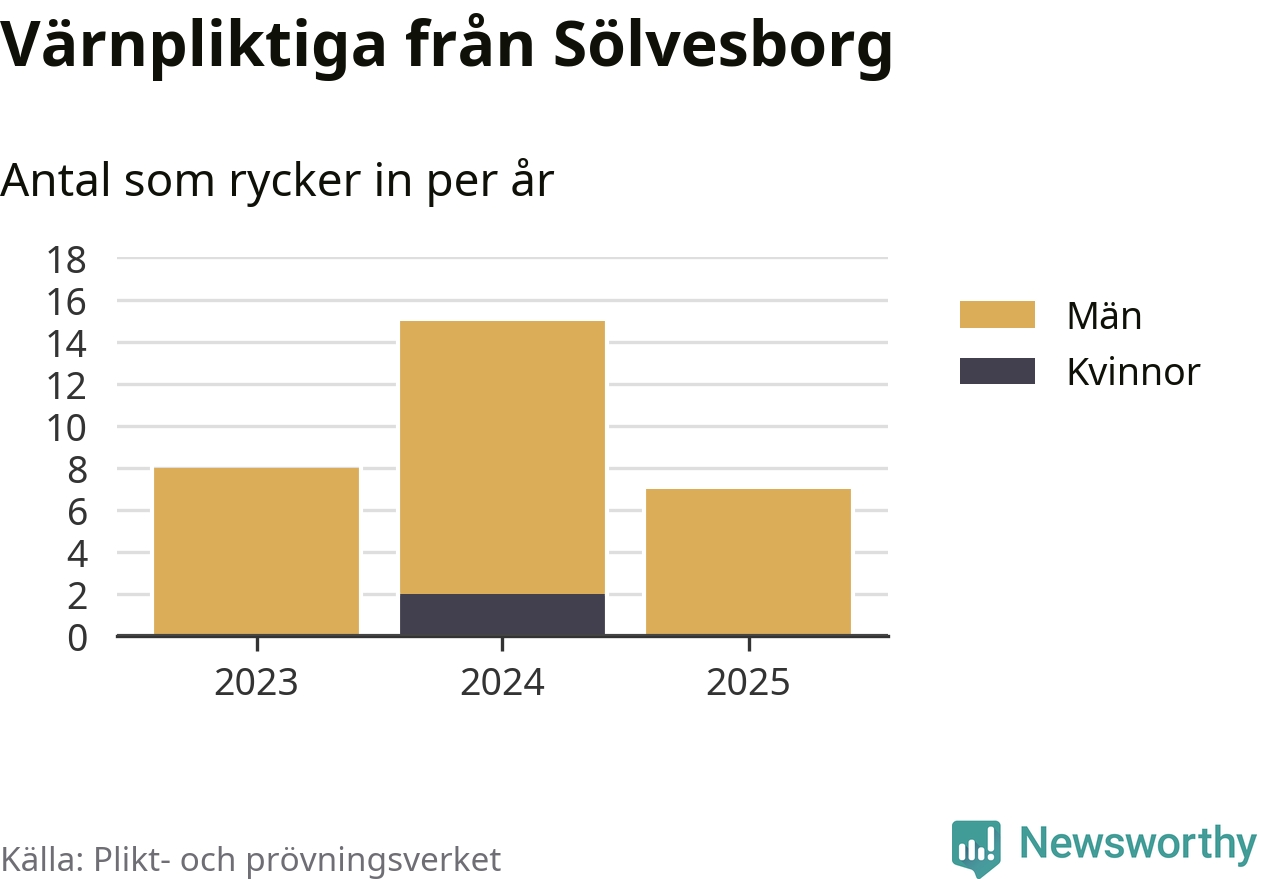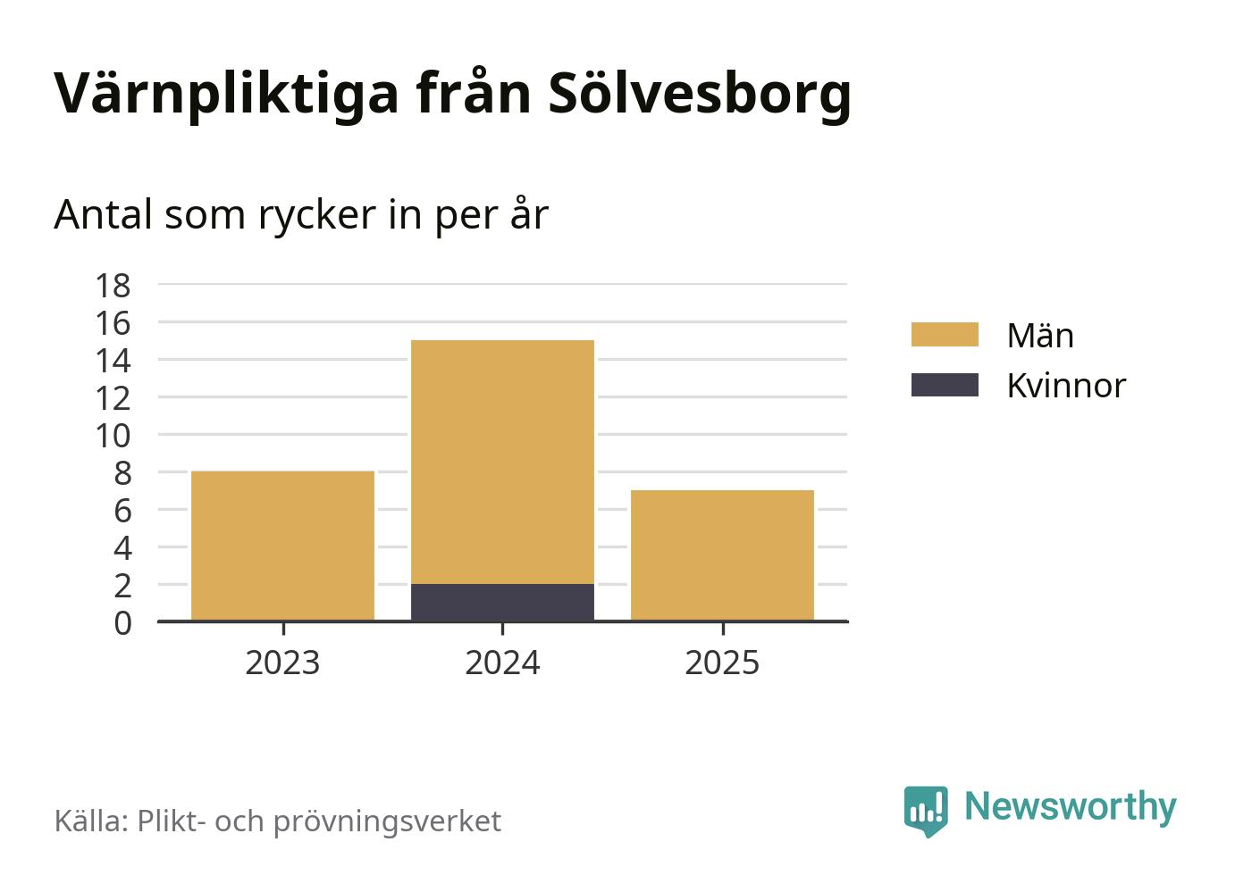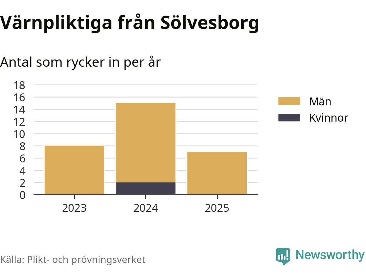 Sedan 2023 – som är det första året vi har jämförbara siffror för – har totalt 30 ungdomar från Sölvesborg påbörjat sin värnplikt. Av dem har två varit kvinnor.