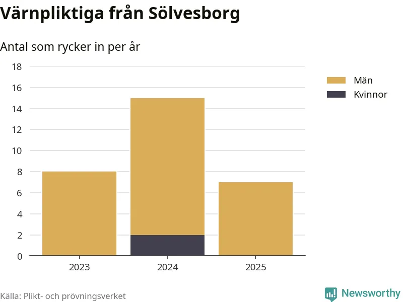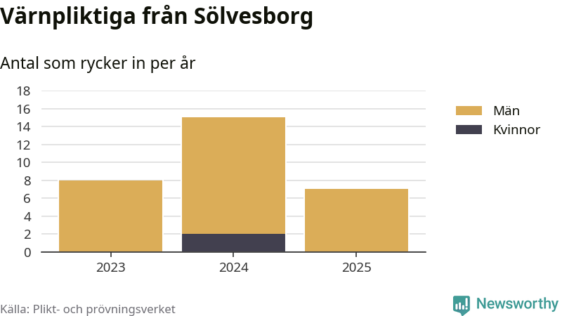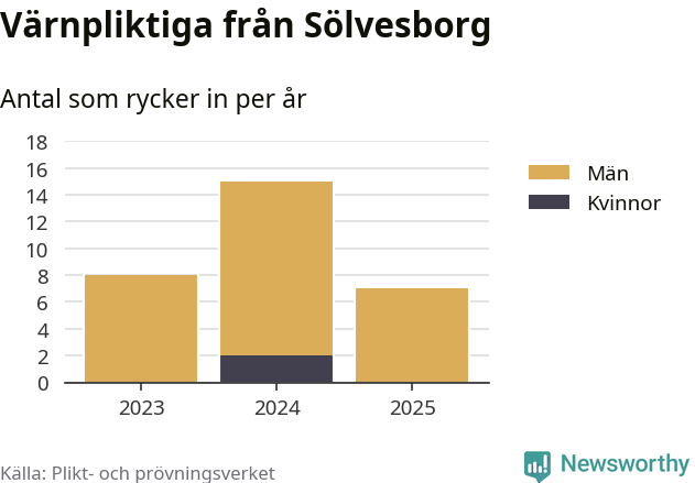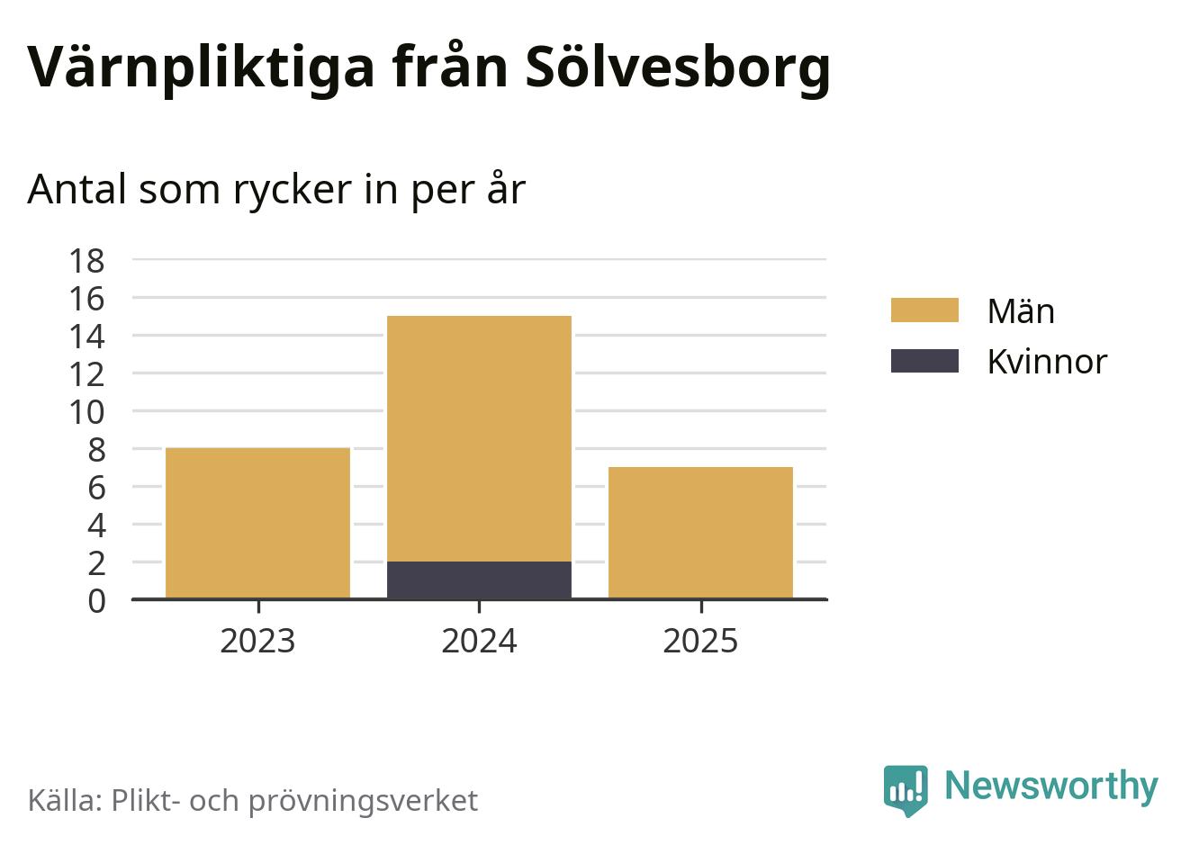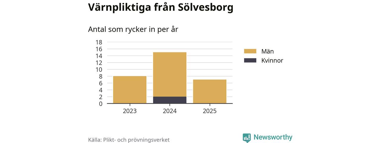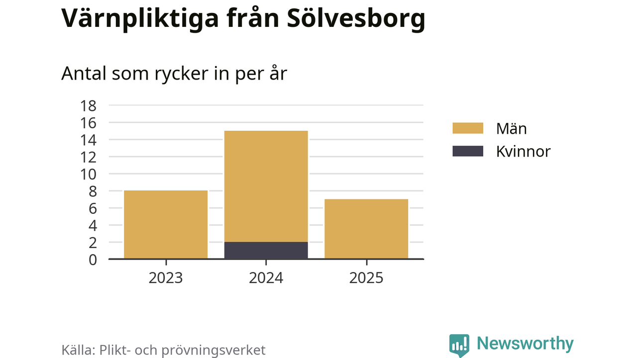 Sedan 2023 – som är det första året vi har jämförbara siffror för – har totalt 30 ungdomar från Sölvesborg påbörjat sin värnplikt. Av dem har två varit kvinnor.