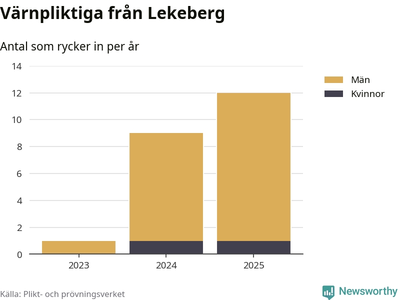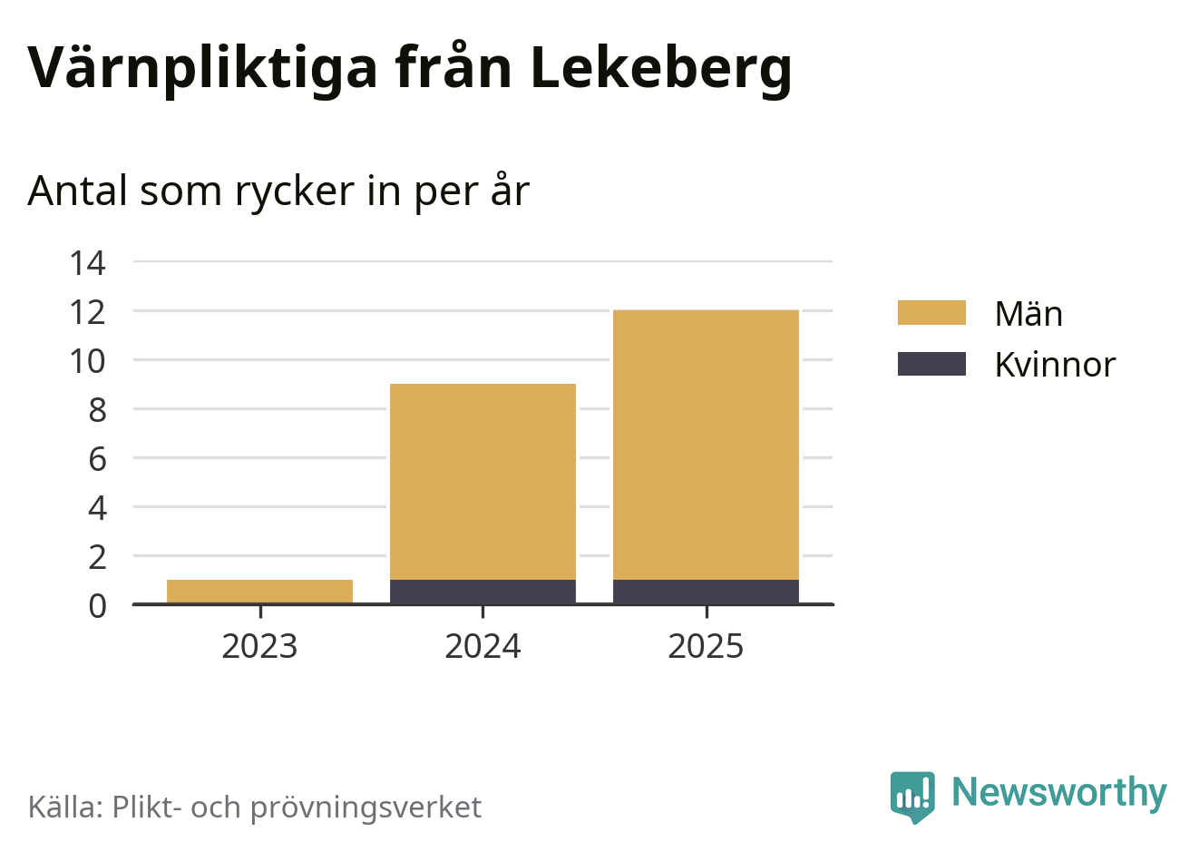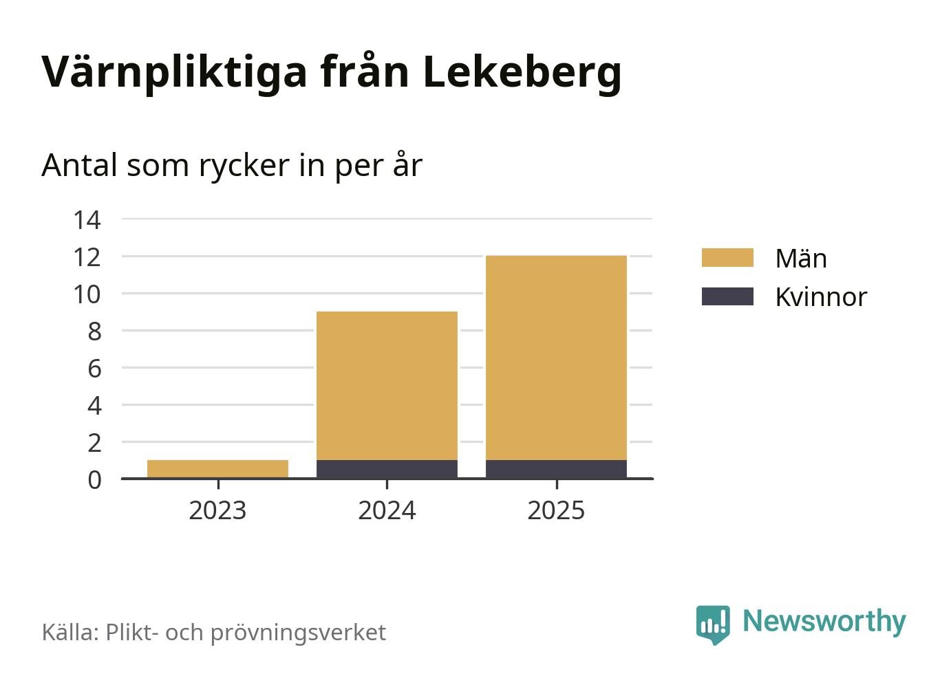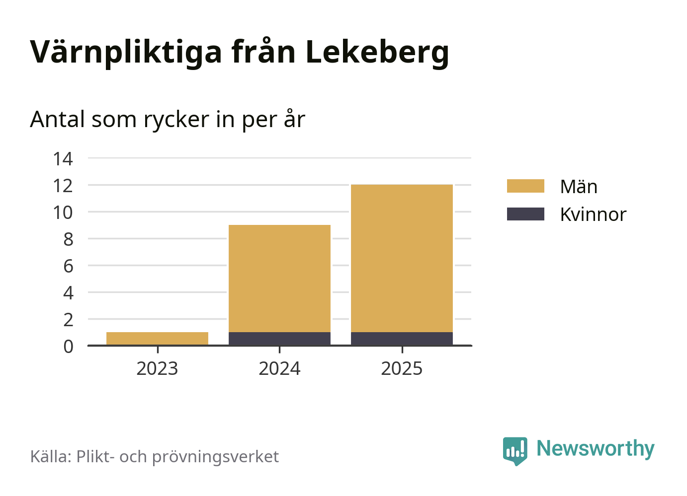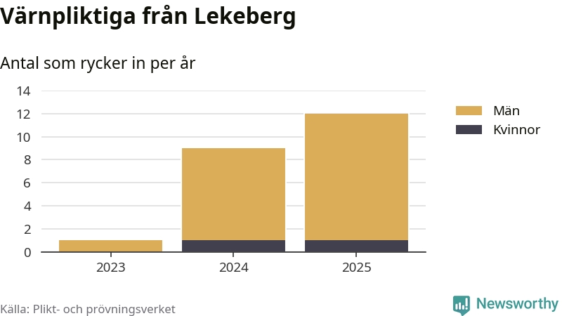 Sedan 2023 – som är det första året vi har jämförbara siffror för – har totalt 22 ungdomar från Lekeberg påbörjat sin värnplikt. Av dem har två varit kvinnor.
