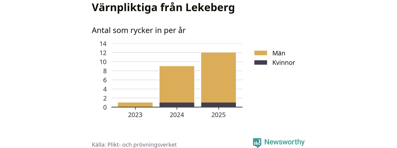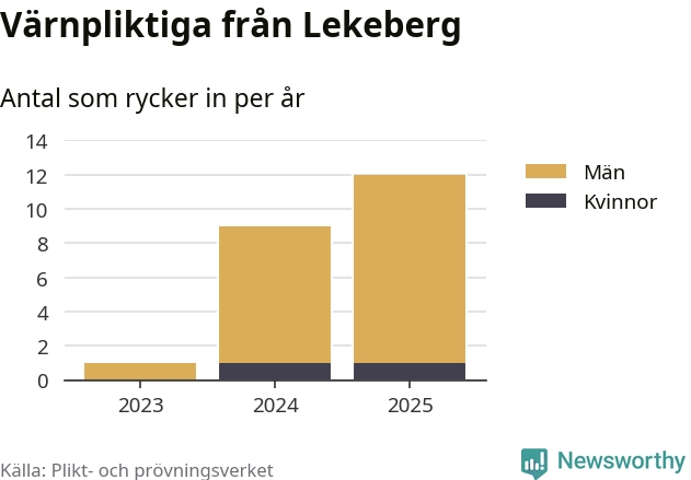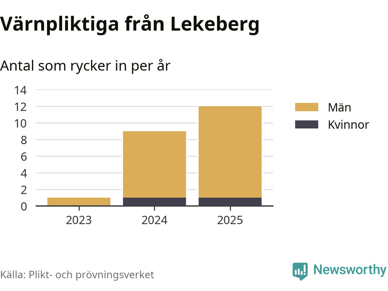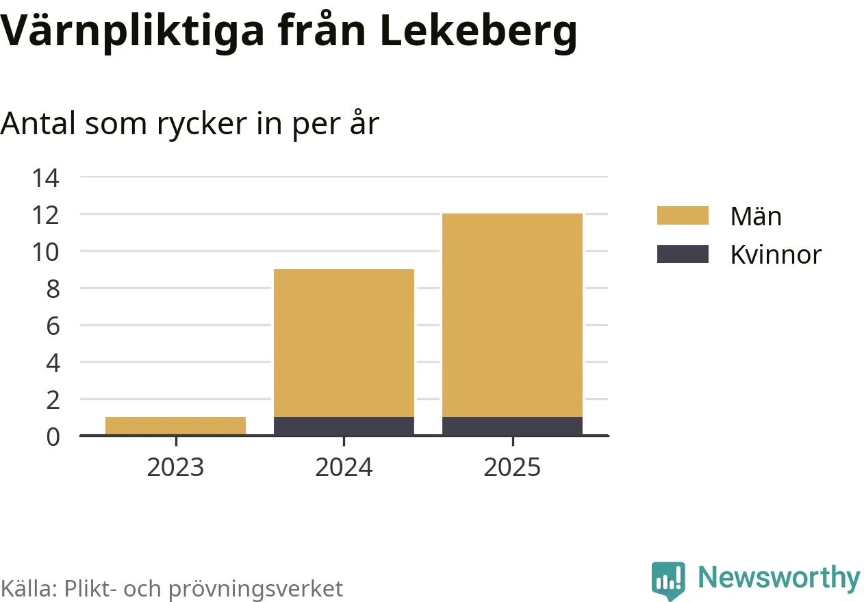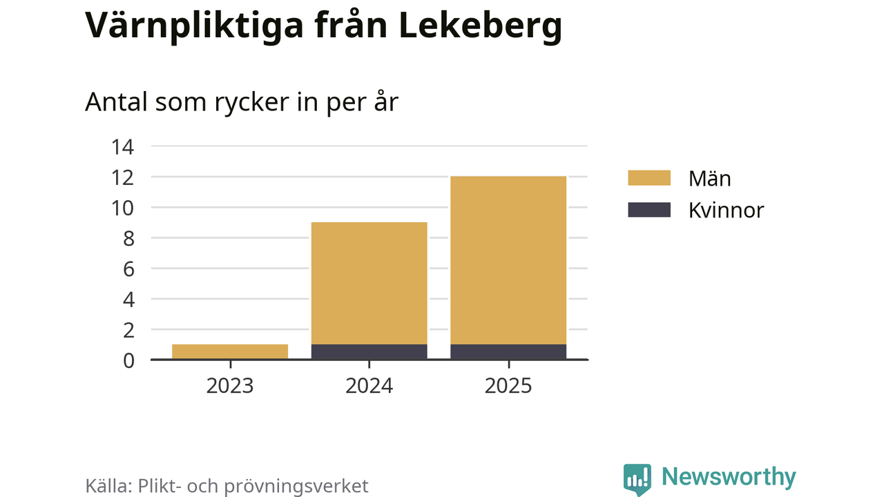 Sedan 2023 – som är det första året vi har jämförbara siffror för – har totalt 22 ungdomar från Lekeberg påbörjat sin värnplikt. Av dem har två varit kvinnor.