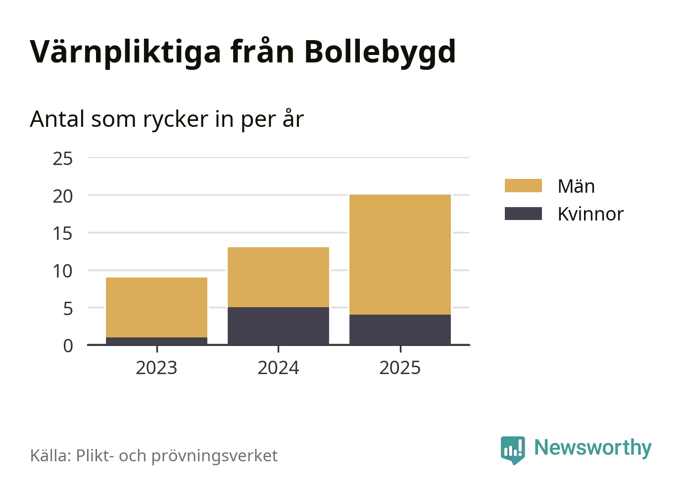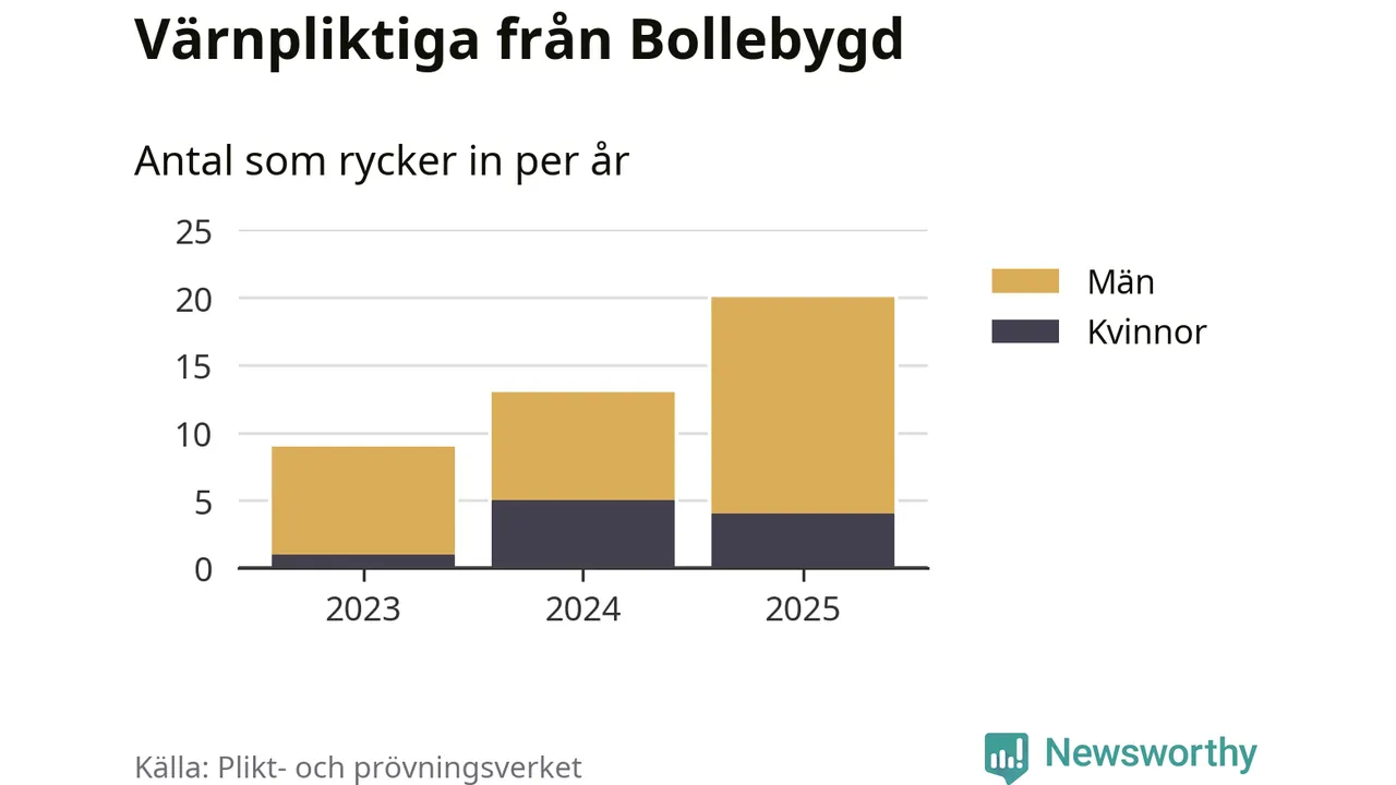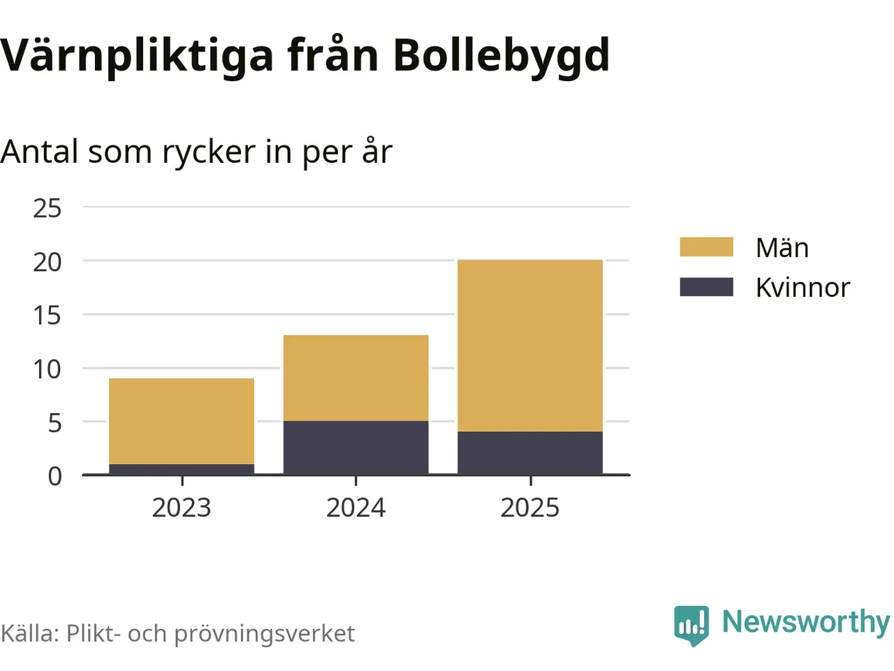 Sedan 2023 – som är det första året vi har jämförbara siffror för – har totalt 42 ungdomar från Bollebygd påbörjat sin värnplikt. Av dem har tio varit kvinnor.