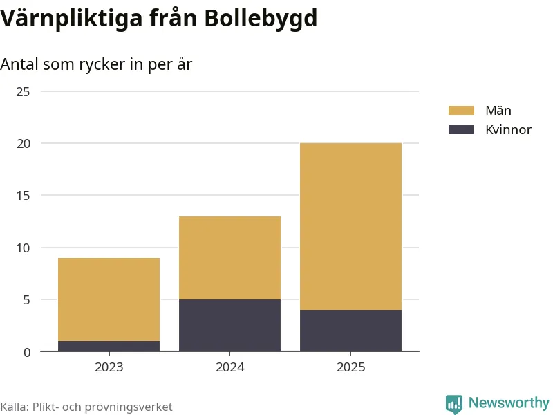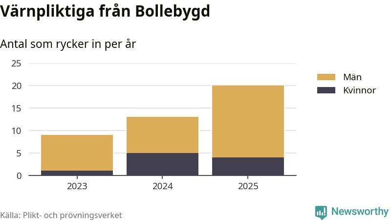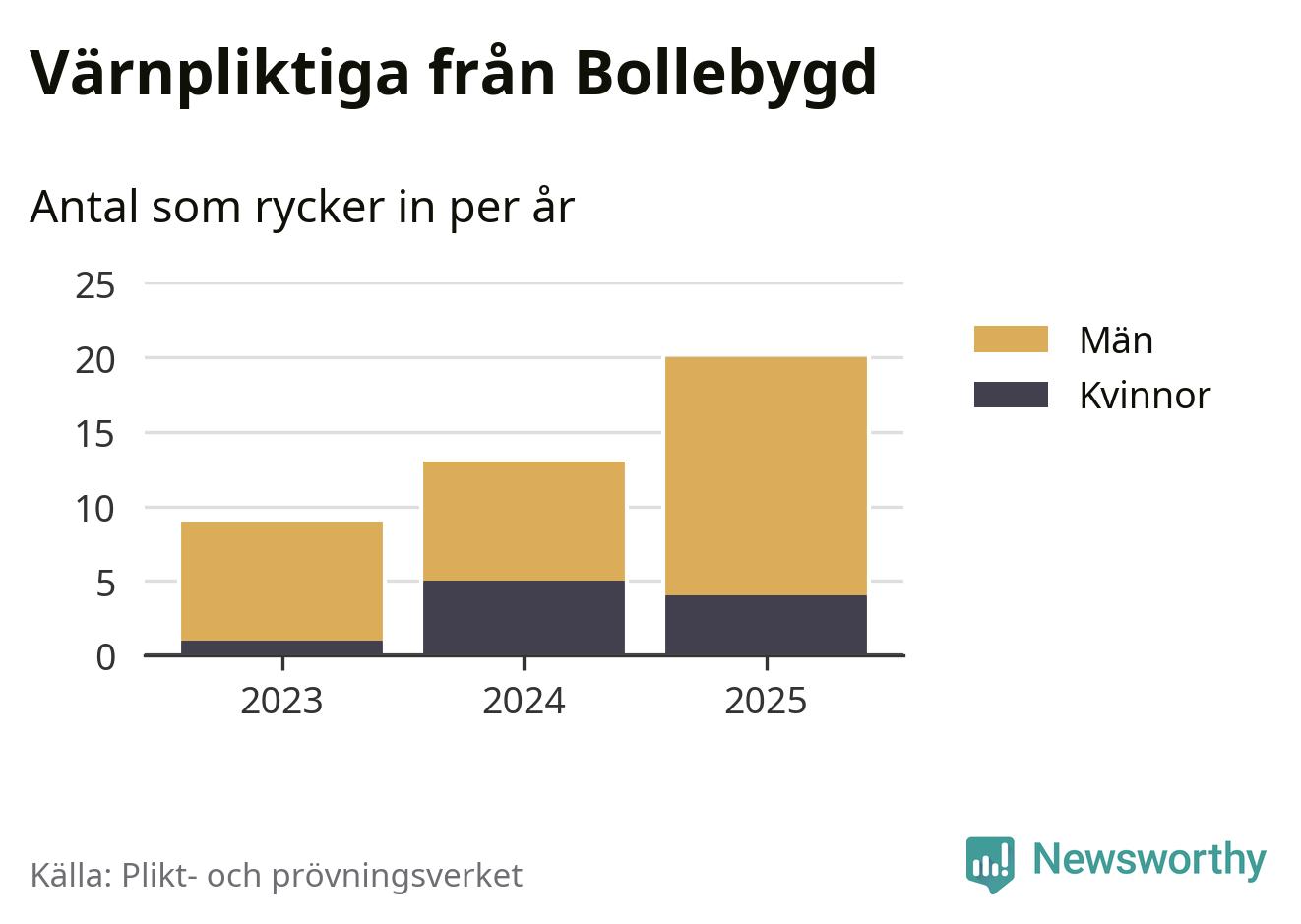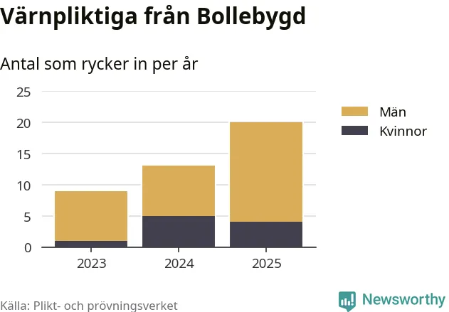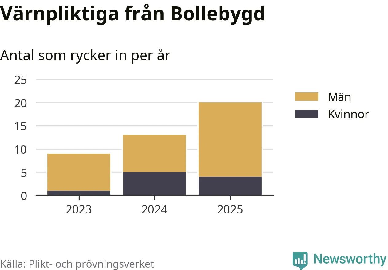 Sedan 2023 – som är det första året vi har jämförbara siffror för – har totalt 42 ungdomar från Bollebygd påbörjat sin värnplikt. Av dem har tio varit kvinnor.