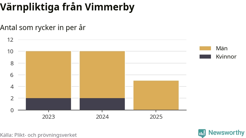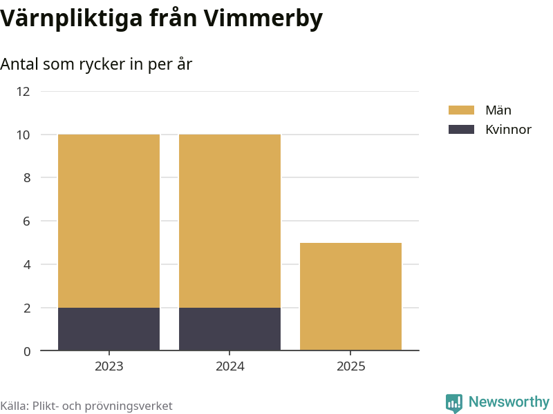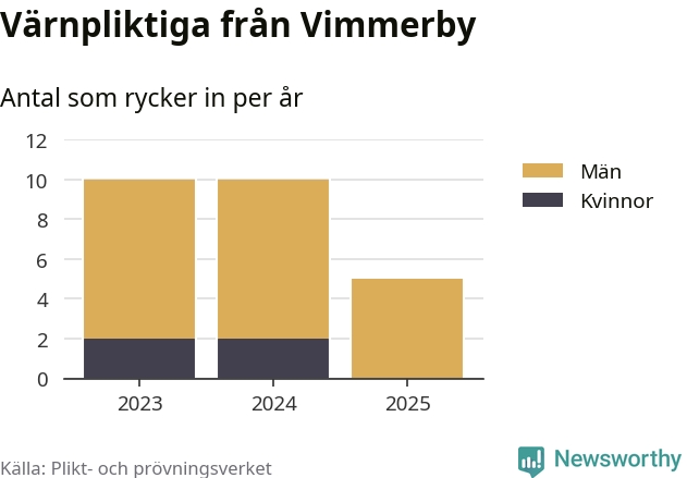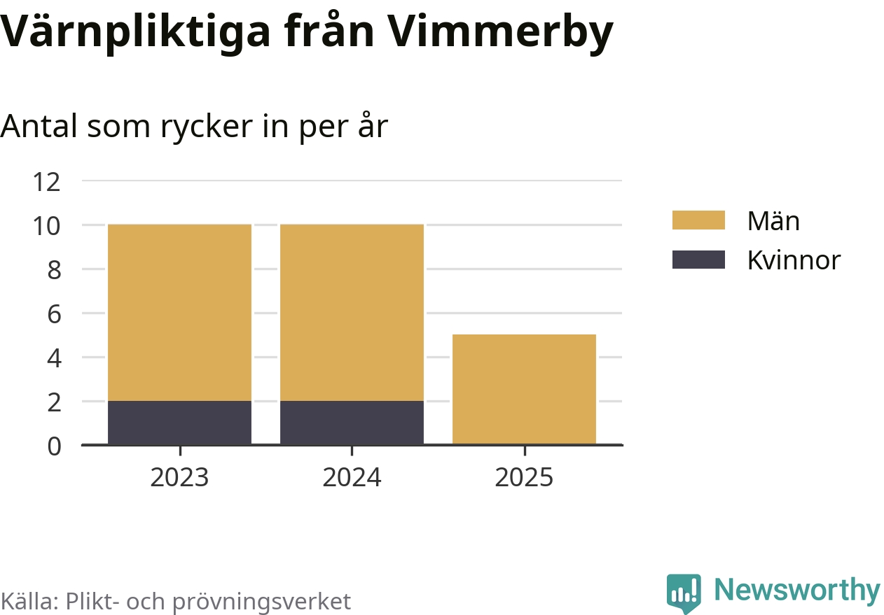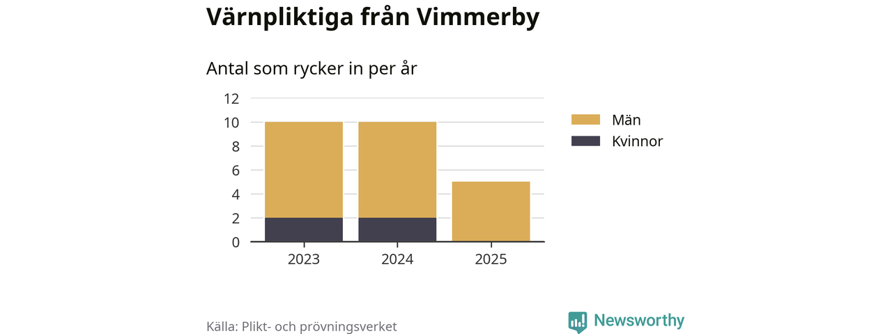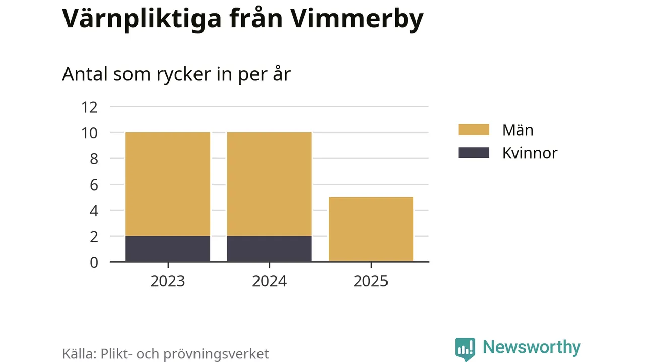 Sedan 2023 – som är det första året vi har jämförbara siffror för – har totalt 25 ungdomar från Vimmerby påbörjat sin värnplikt. Av dem har fyra varit kvinnor.