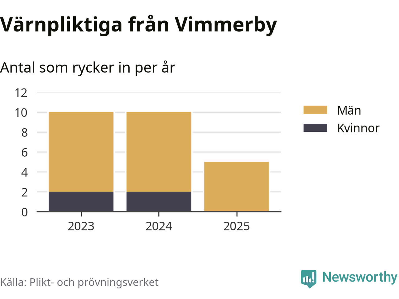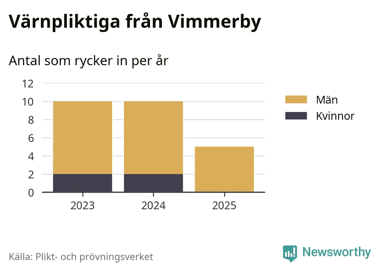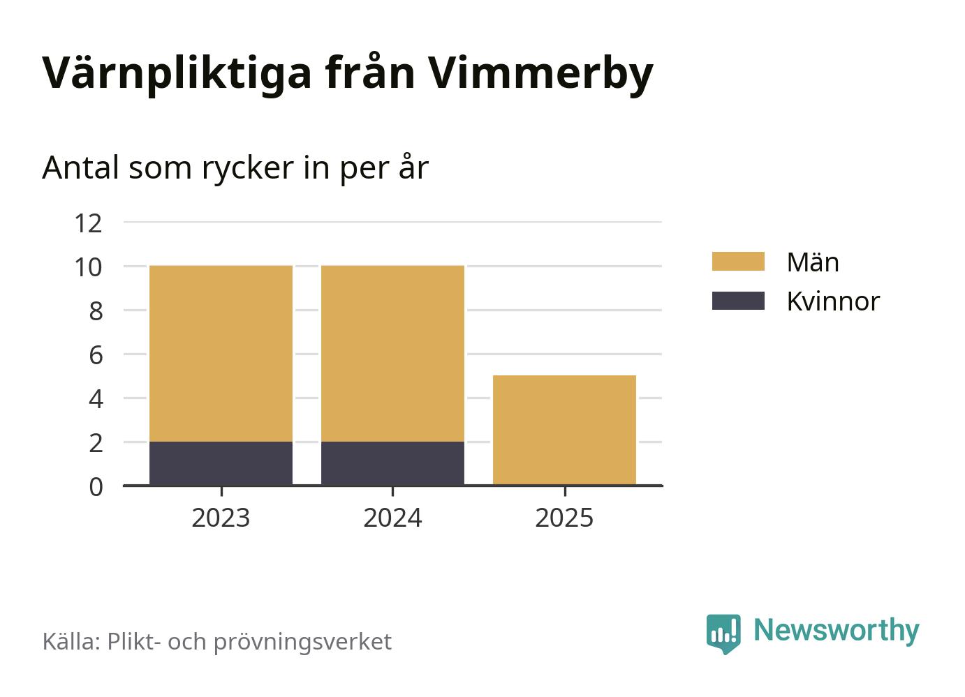 Sedan 2023 – som är det första året vi har jämförbara siffror för – har totalt 25 ungdomar från Vimmerby påbörjat sin värnplikt. Av dem har fyra varit kvinnor.