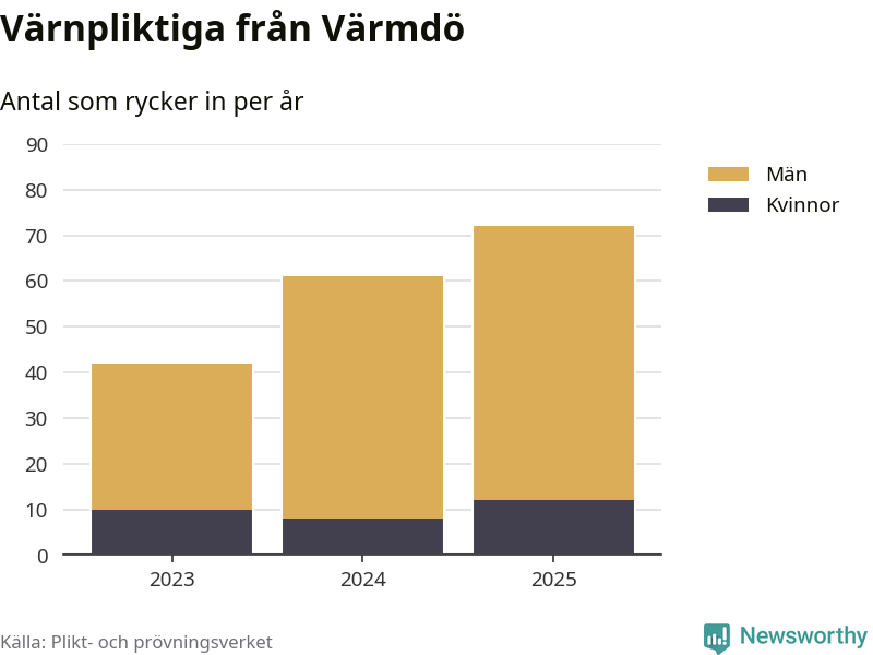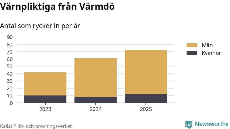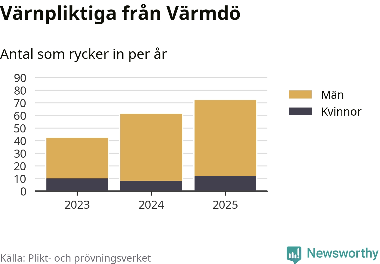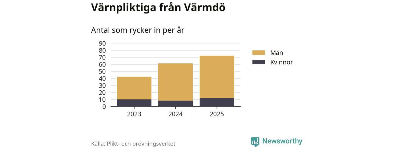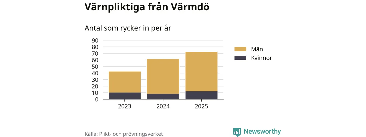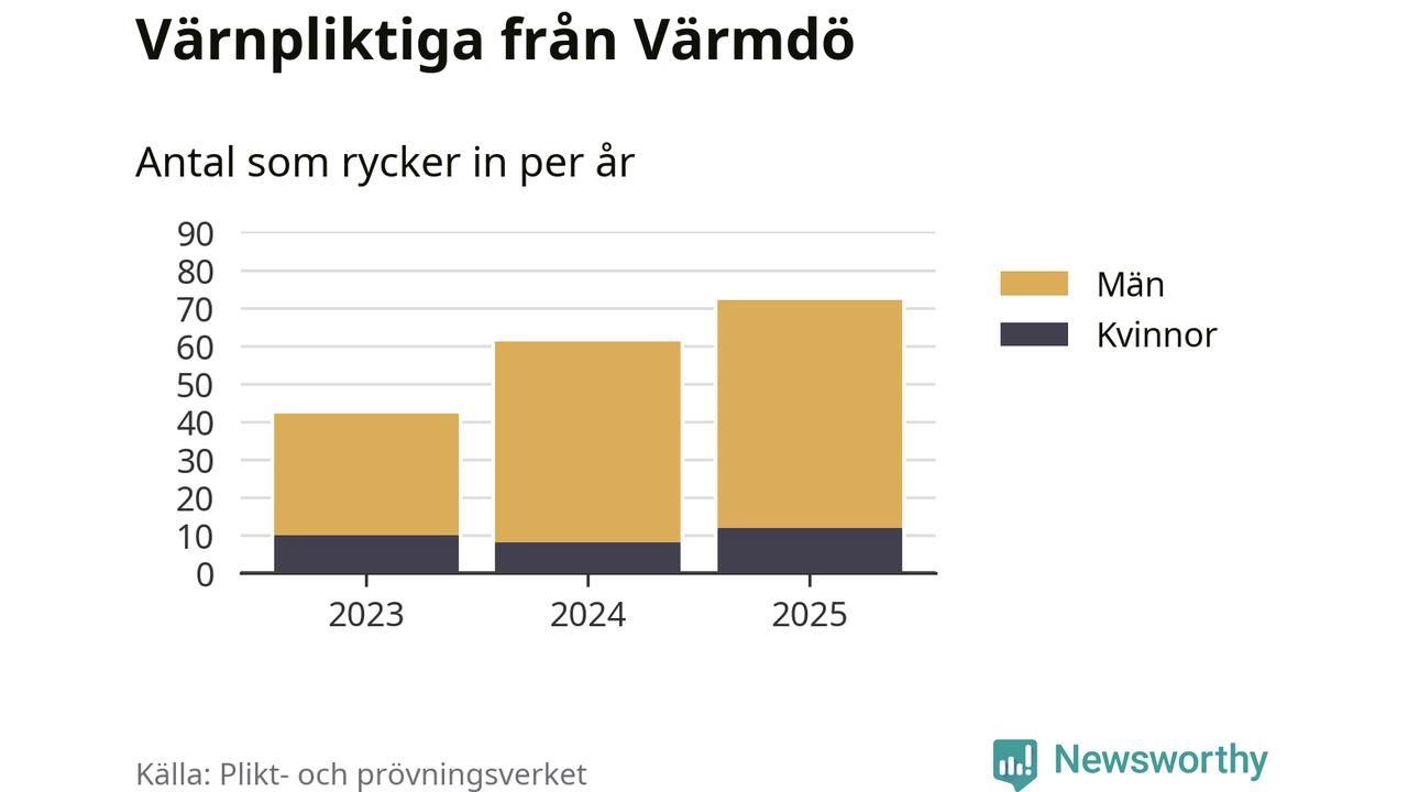 Sedan 2023 – som är det första året vi har jämförbara siffror för – har totalt 175 ungdomar från Värmdö påbörjat sin värnplikt. Av dem har 30 varit kvinnor.