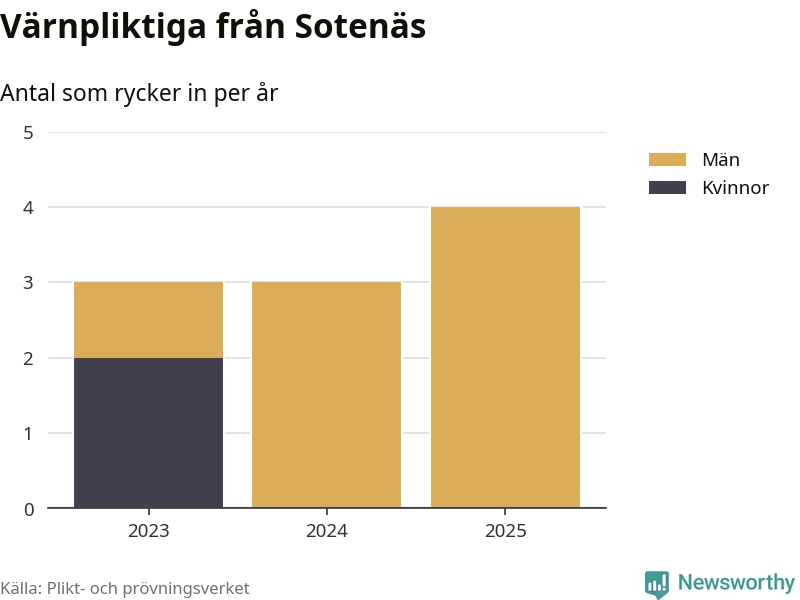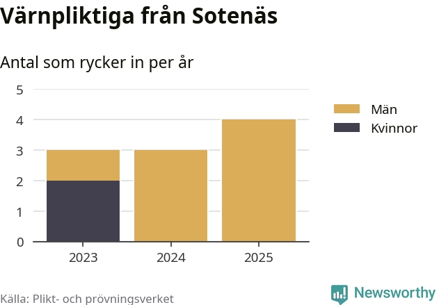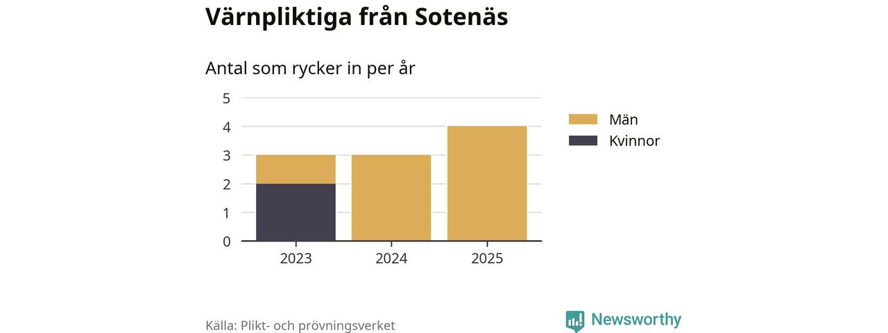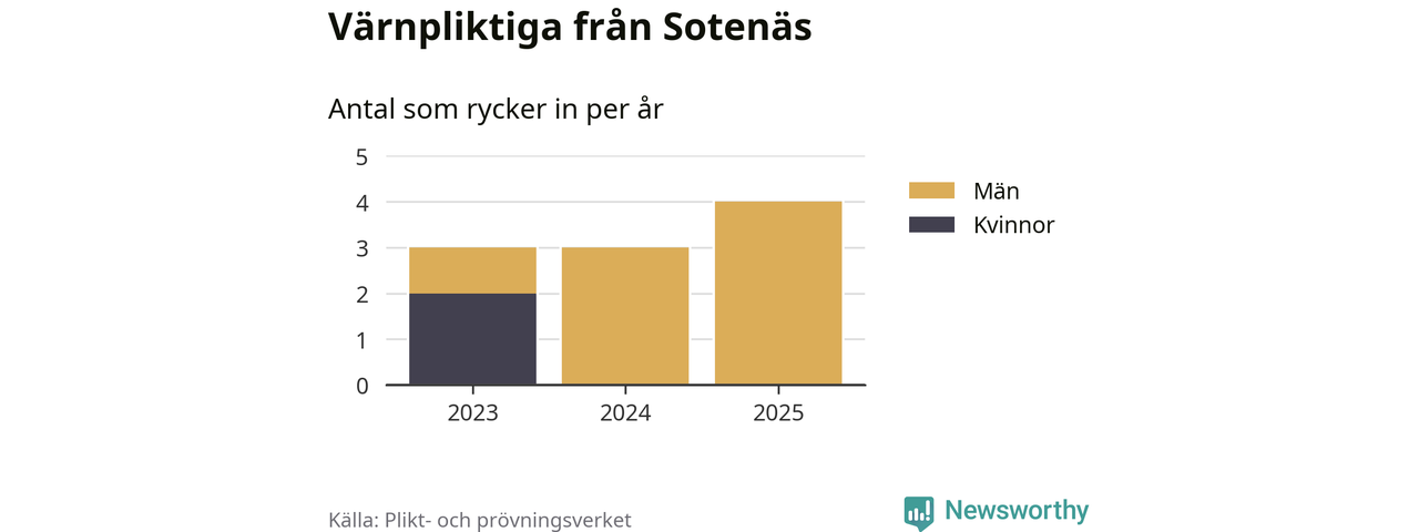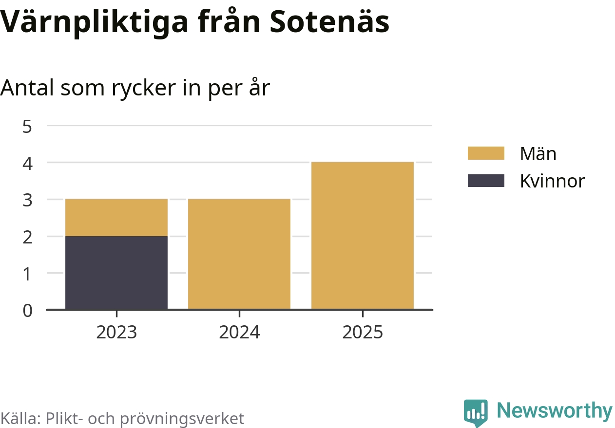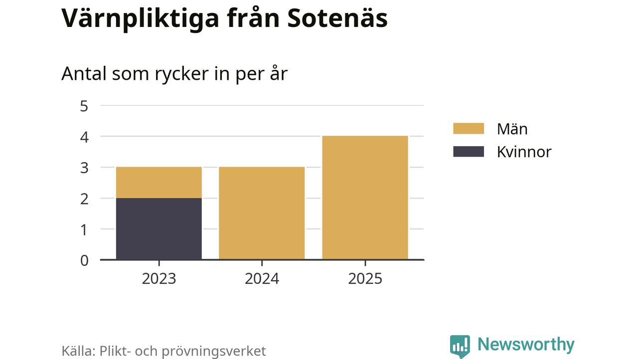 Sedan 2023 – som är det första året vi har jämförbara siffror för – har totalt tio ungdomar från Sotenäs påbörjat sin värnplikt. Av dem har två varit kvinnor.
