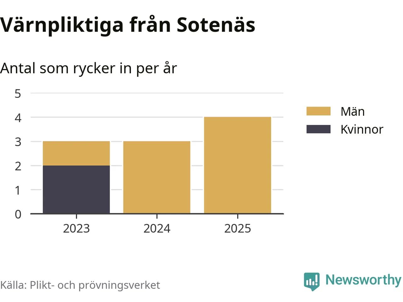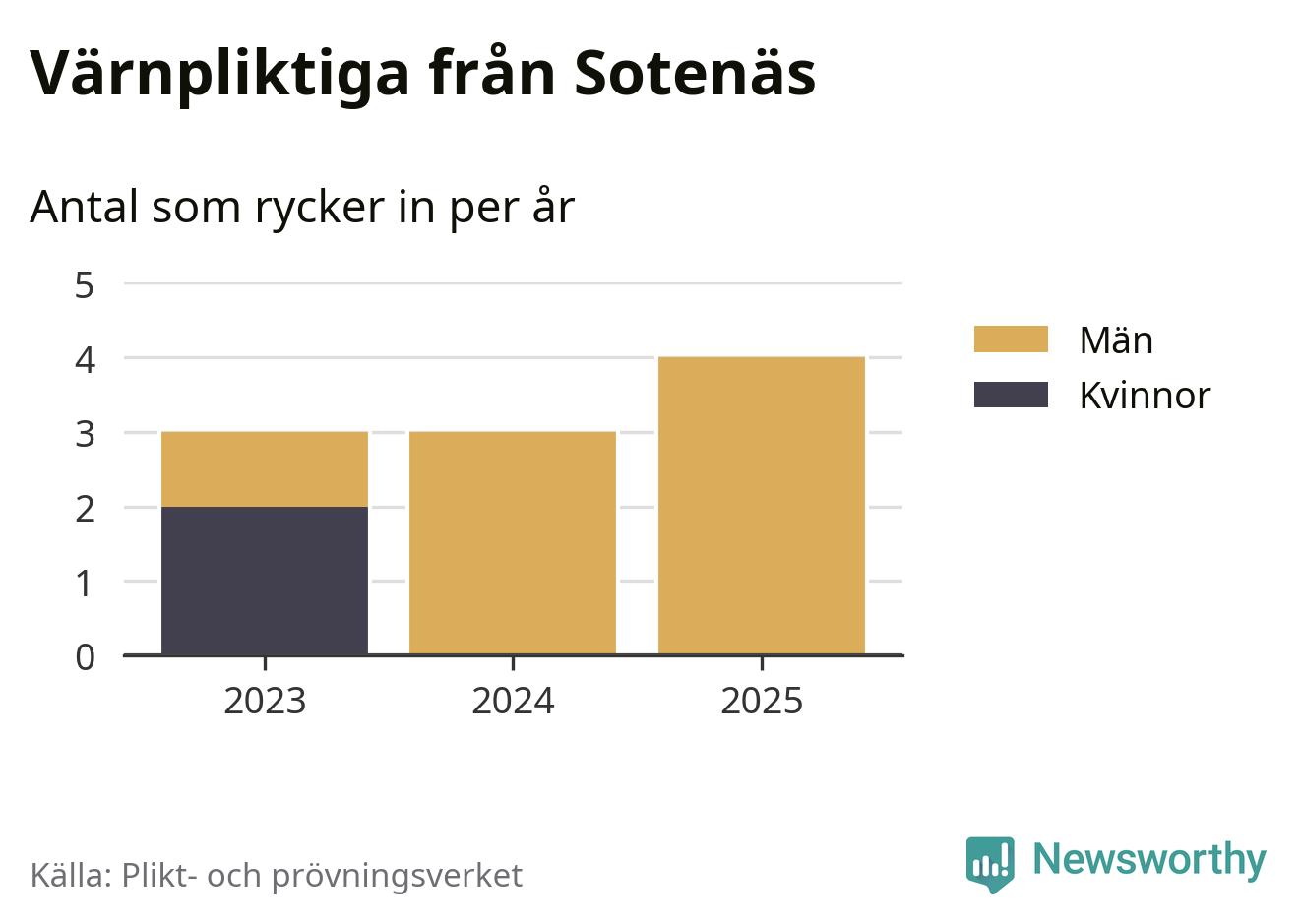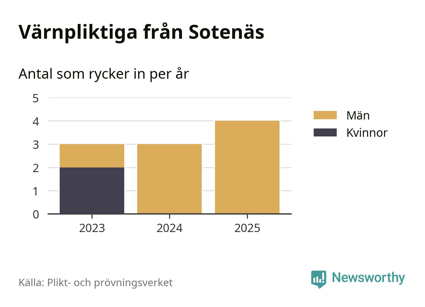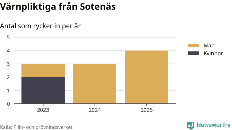 Sedan 2023 – som är det första året vi har jämförbara siffror för – har totalt tio ungdomar från Sotenäs påbörjat sin värnplikt. Av dem har två varit kvinnor.