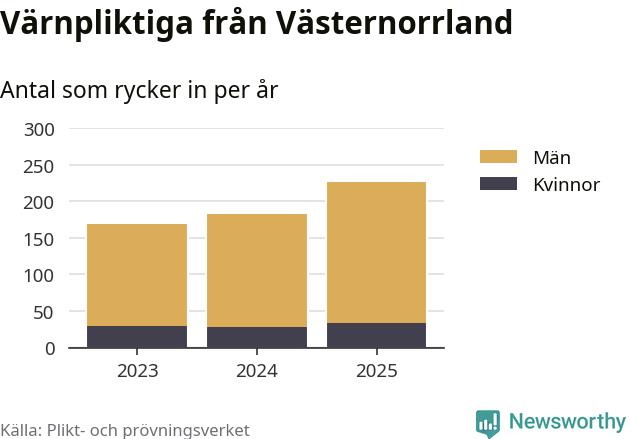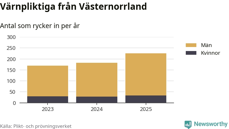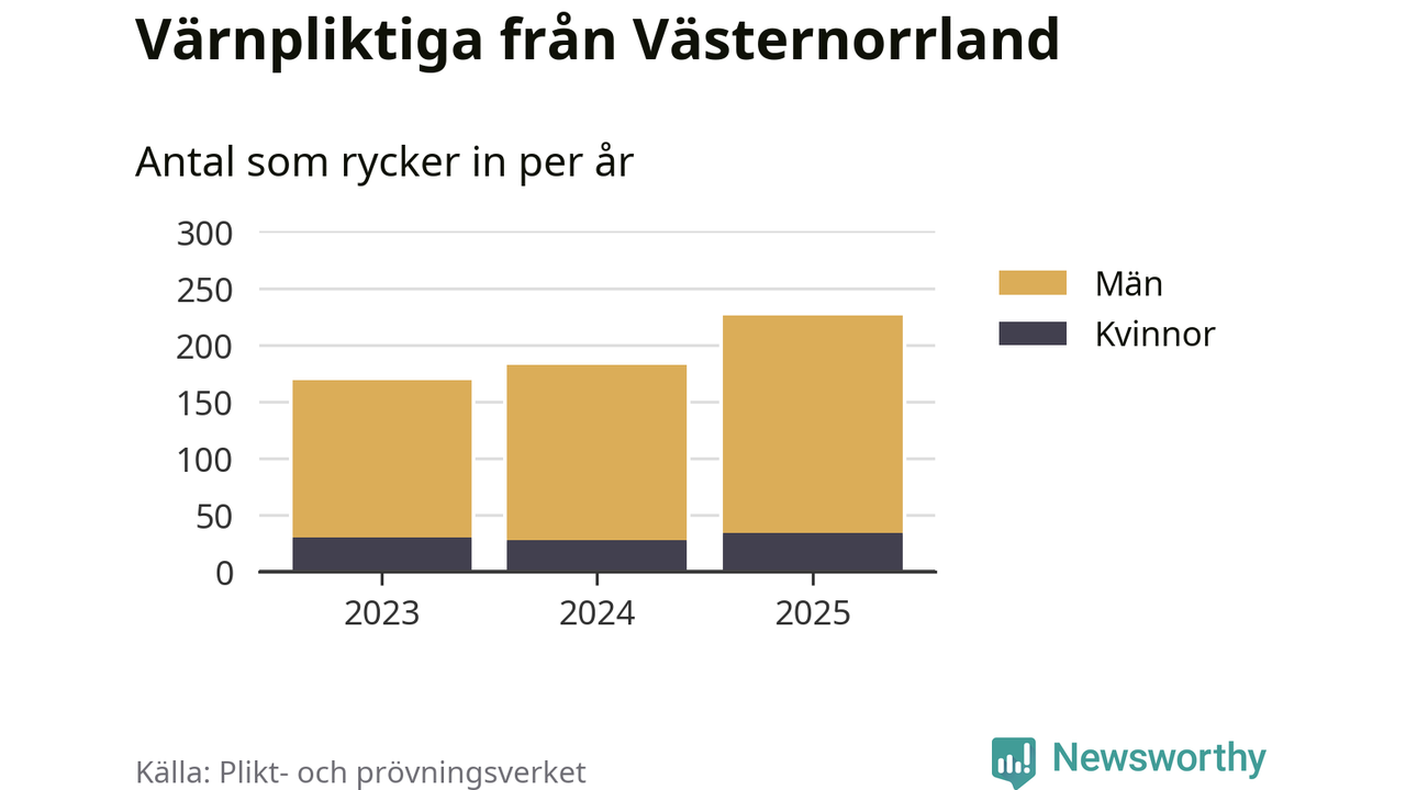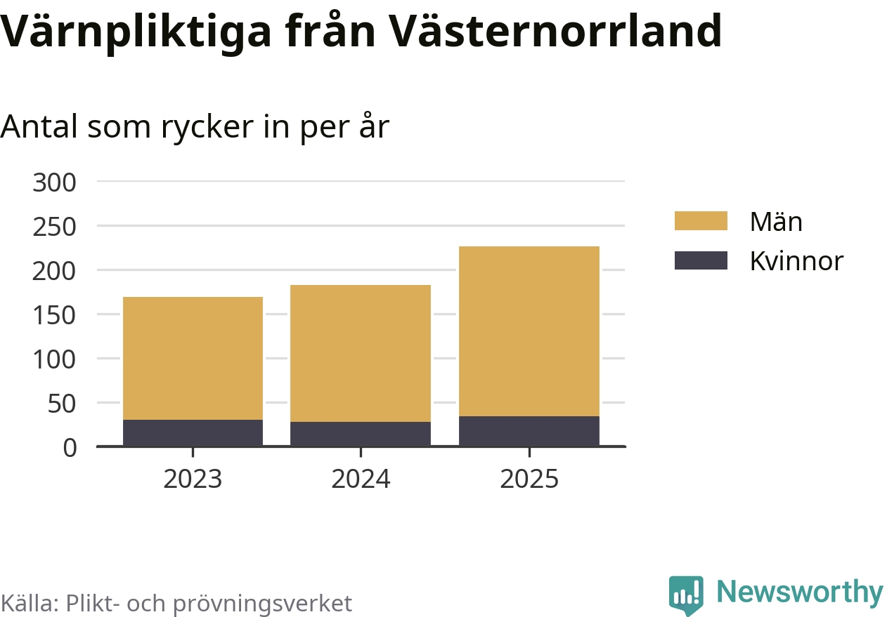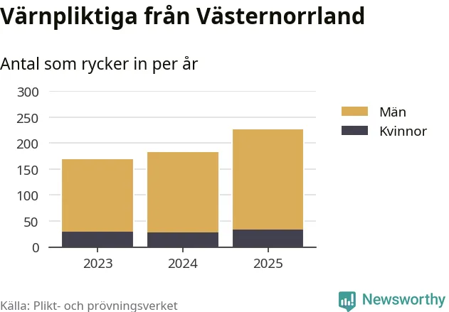 Sedan 2023 – som är det första året vi har jämförbara siffror för – har totalt 577 ungdomar från Västernorrland påbörjat sin värnplikt. Av dem har 92 varit kvinnor.