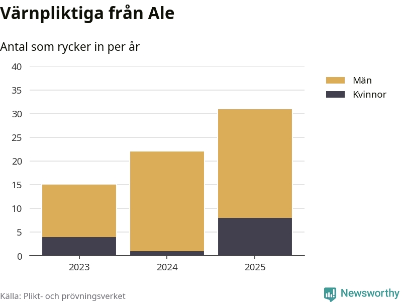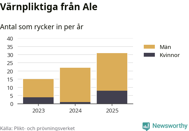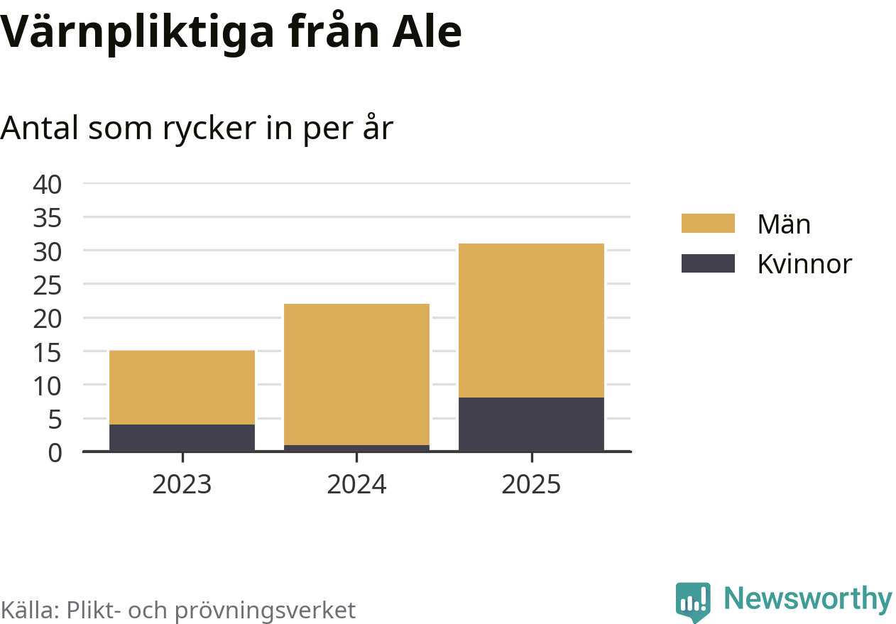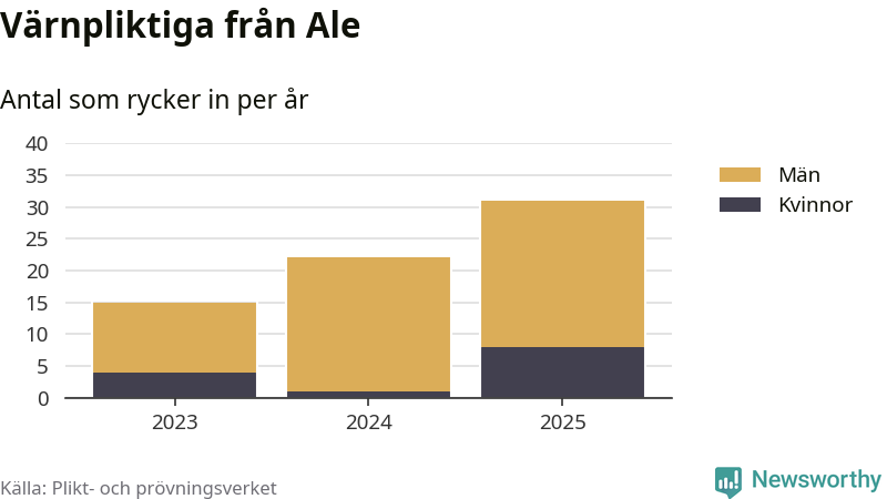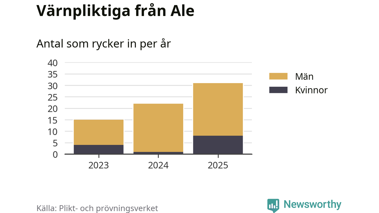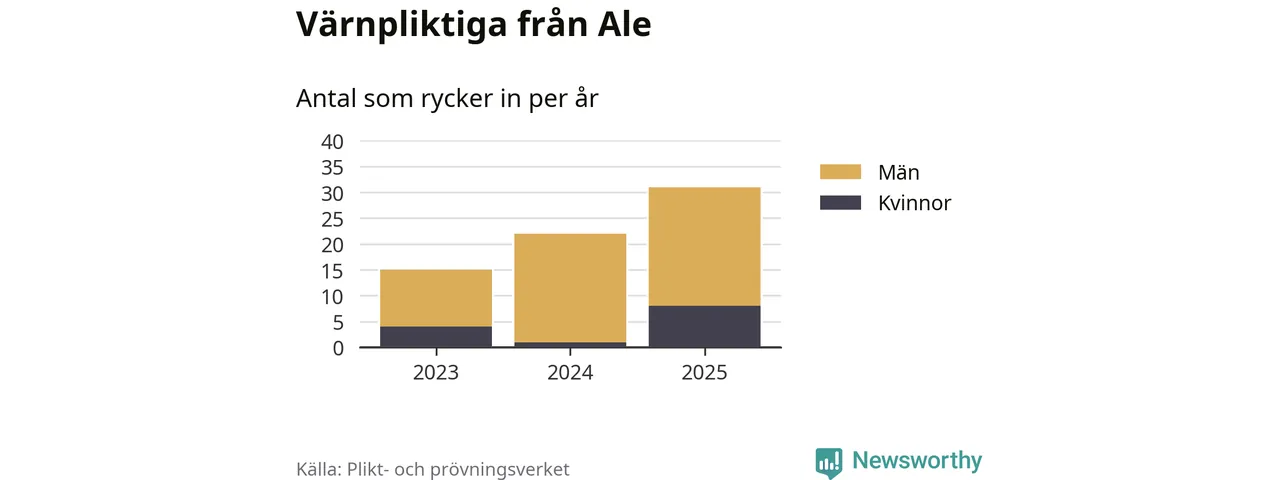 Sedan 2023 – som är det första året vi har jämförbara siffror för – har totalt 68 ungdomar från Ale påbörjat sin värnplikt. Av dem har 13 varit kvinnor.