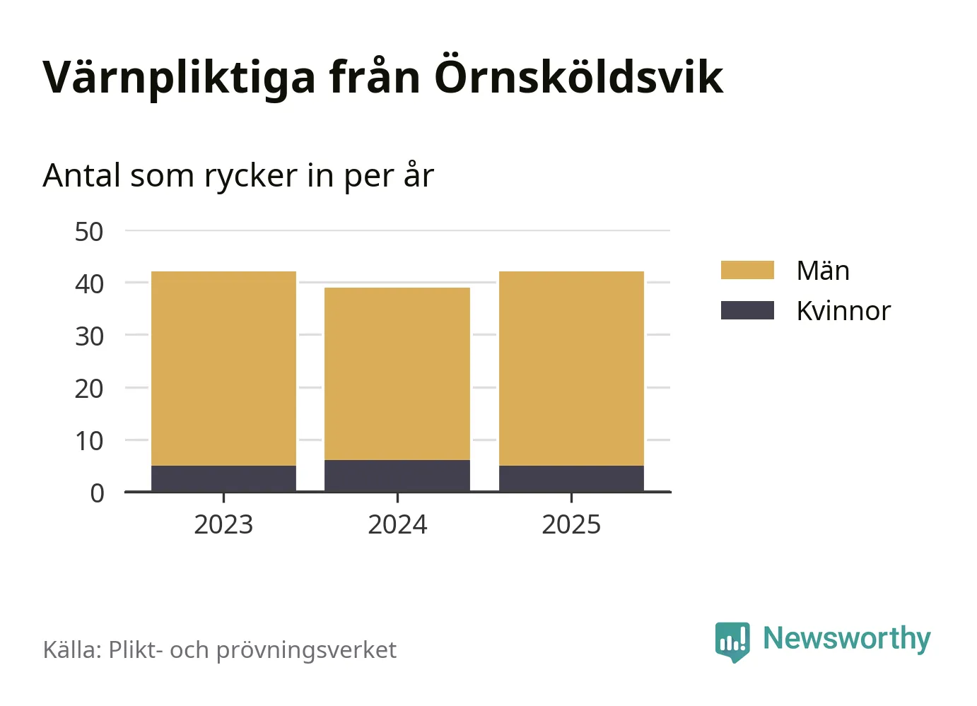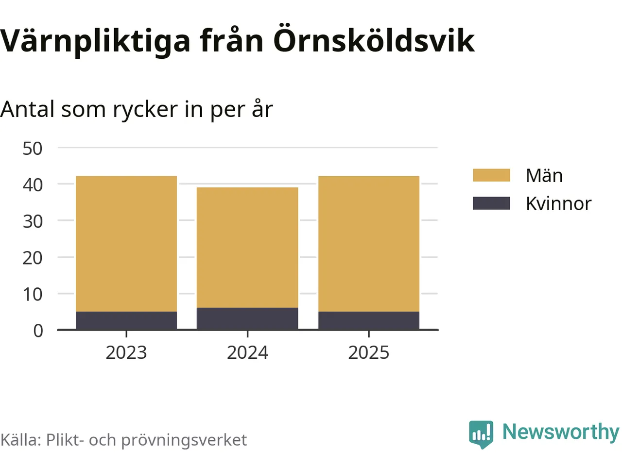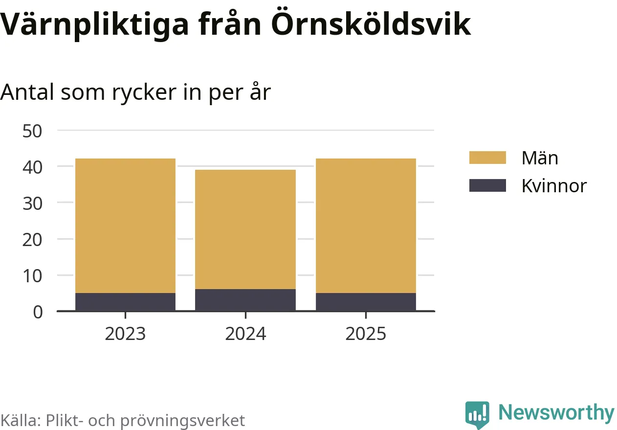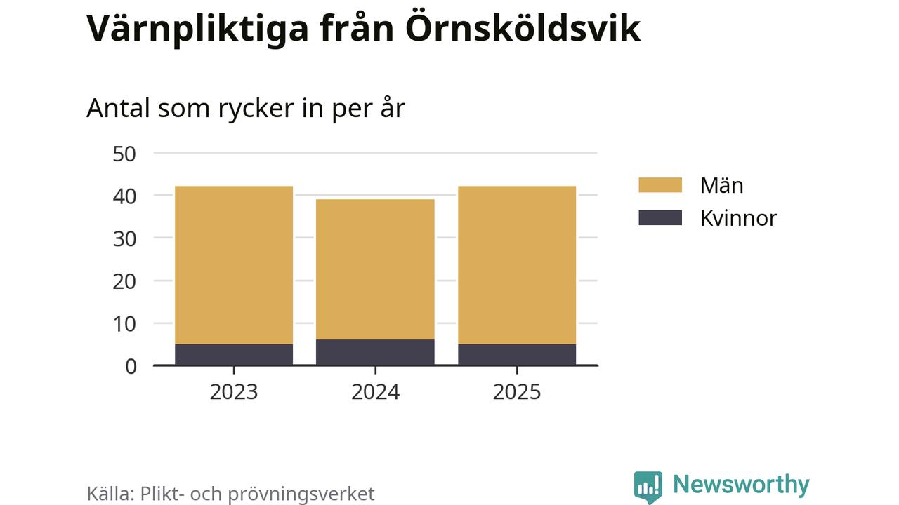 Sedan 2023 – som är det första året vi har jämförbara siffror för – har totalt 123 ungdomar från Örnsköldsvik påbörjat sin värnplikt. Av dem har 16 varit kvinnor.