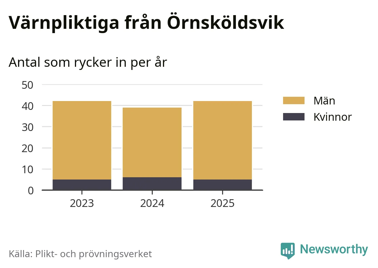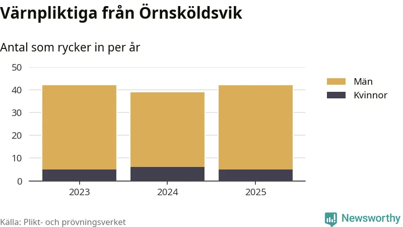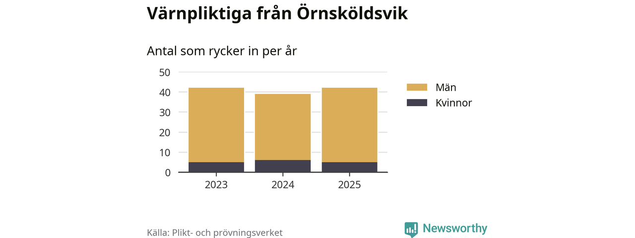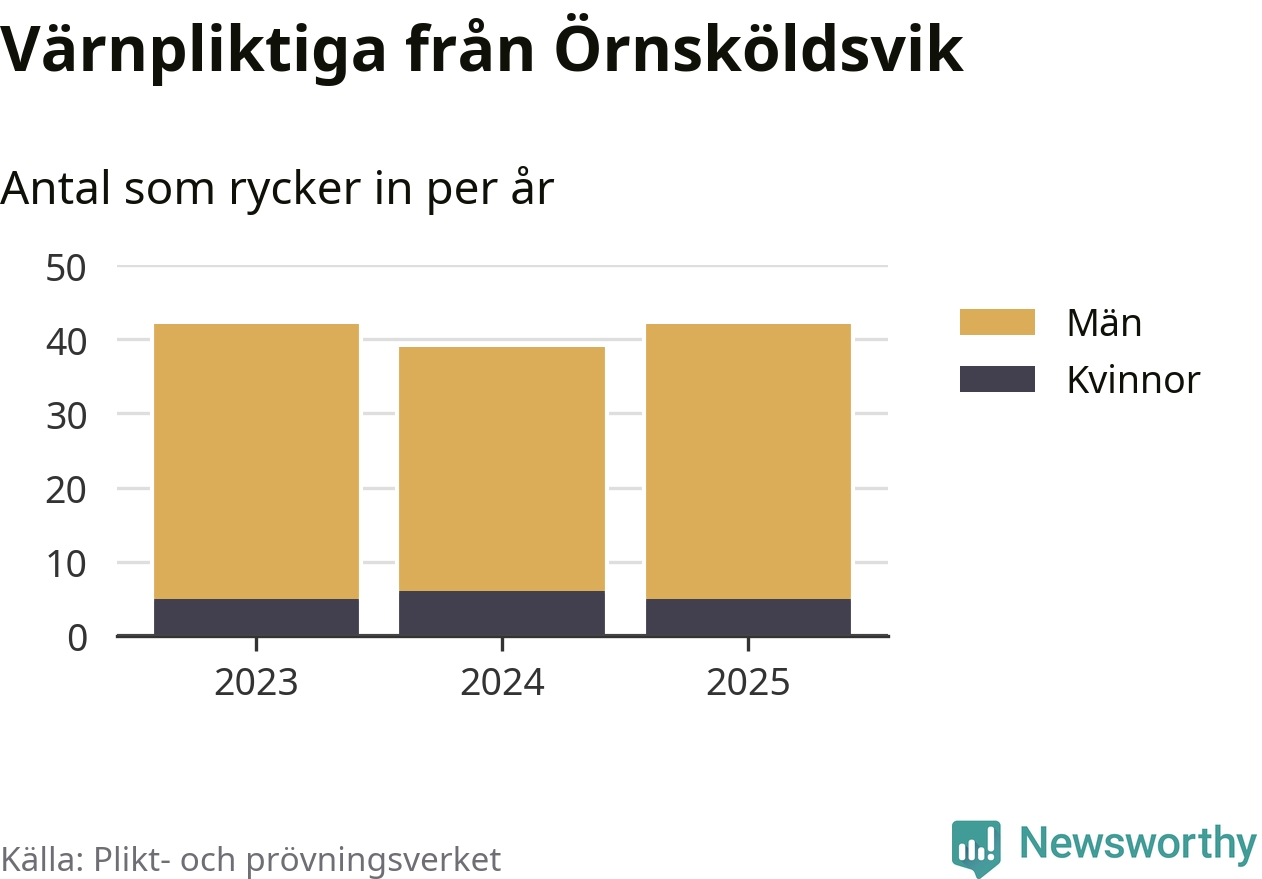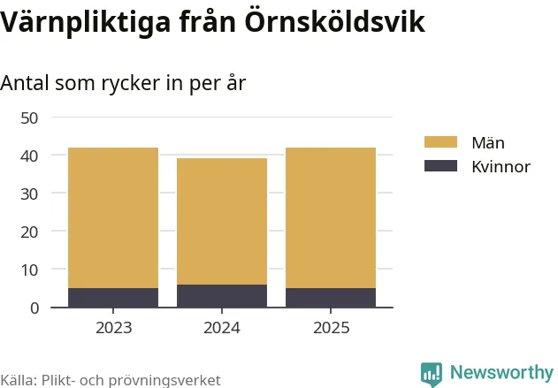 Sedan 2023 – som är det första året vi har jämförbara siffror för – har totalt 123 ungdomar från Örnsköldsvik påbörjat sin värnplikt. Av dem har 16 varit kvinnor.