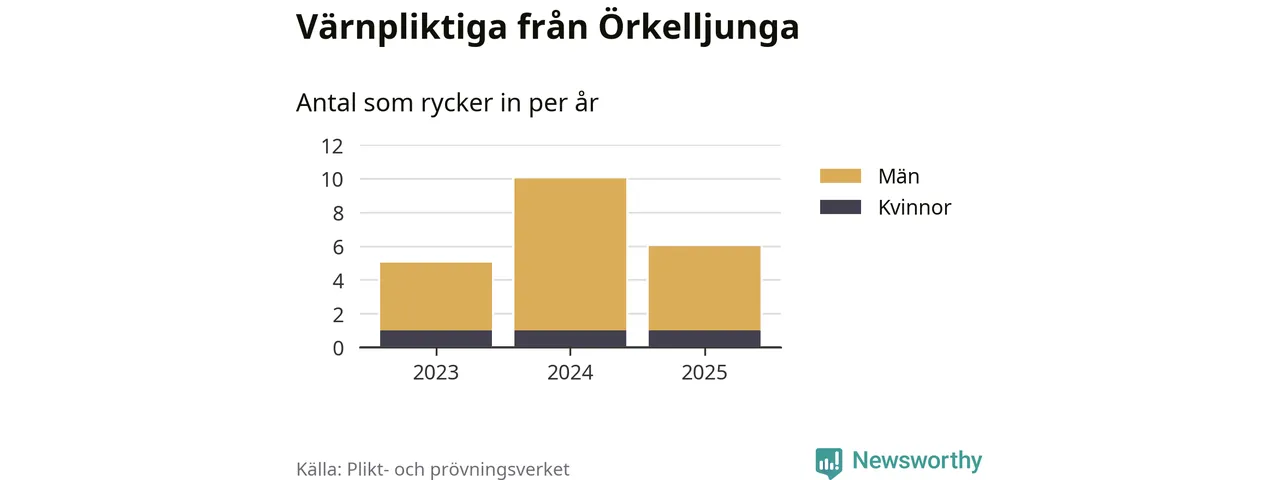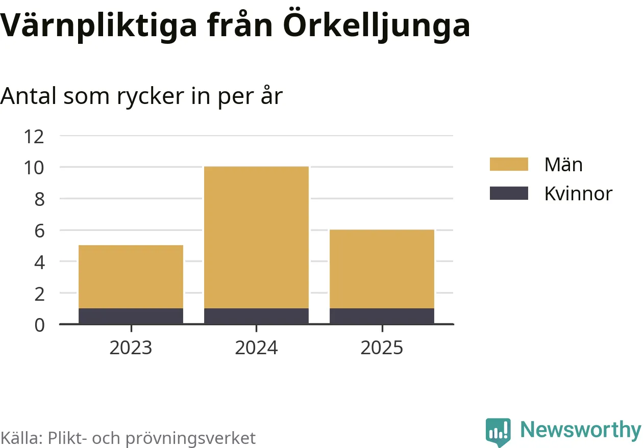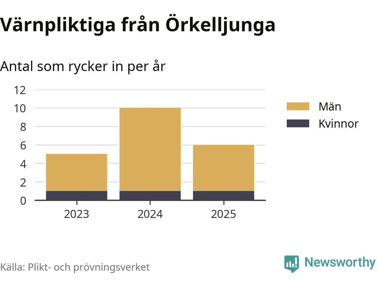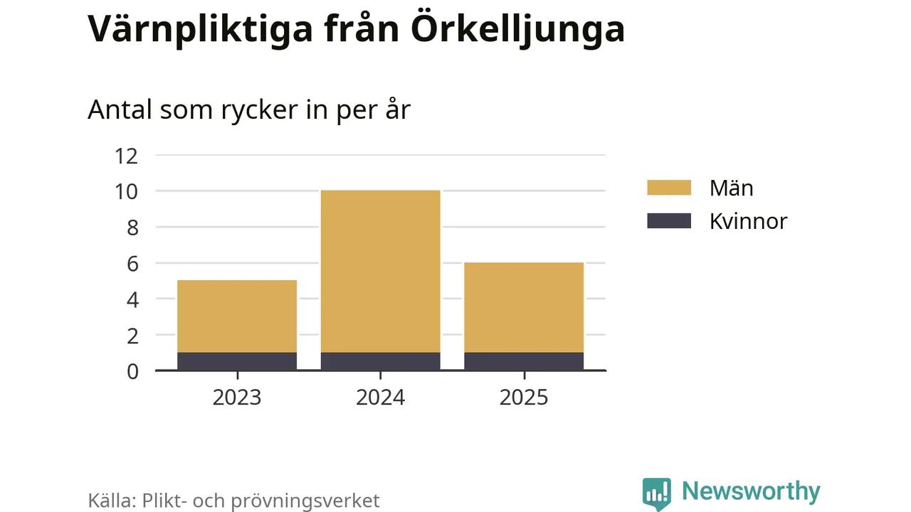 Sedan 2023 – som är det första året vi har jämförbara siffror för – har totalt 21 ungdomar från Örkelljunga påbörjat sin värnplikt. Av dem har tre varit kvinnor.