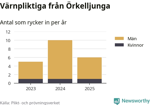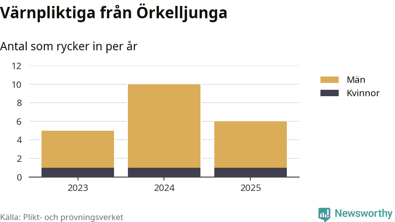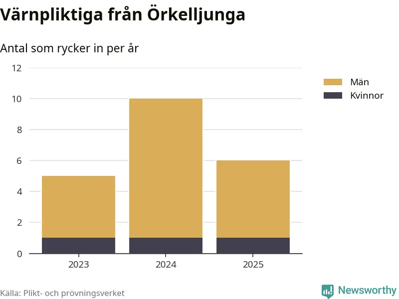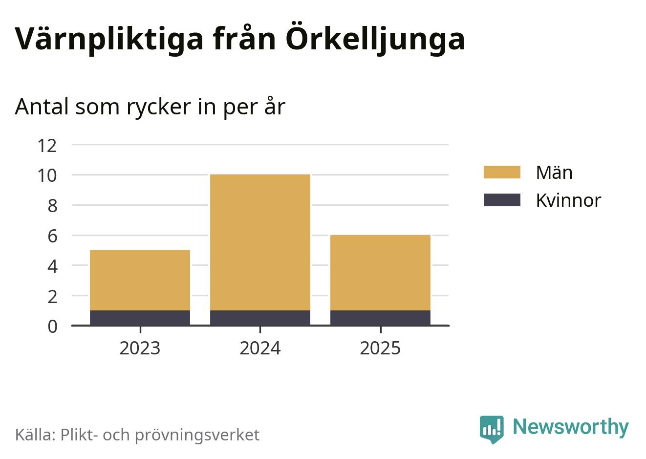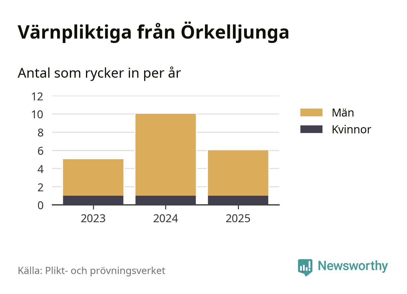 Sedan 2023 – som är det första året vi har jämförbara siffror för – har totalt 21 ungdomar från Örkelljunga påbörjat sin värnplikt. Av dem har tre varit kvinnor.