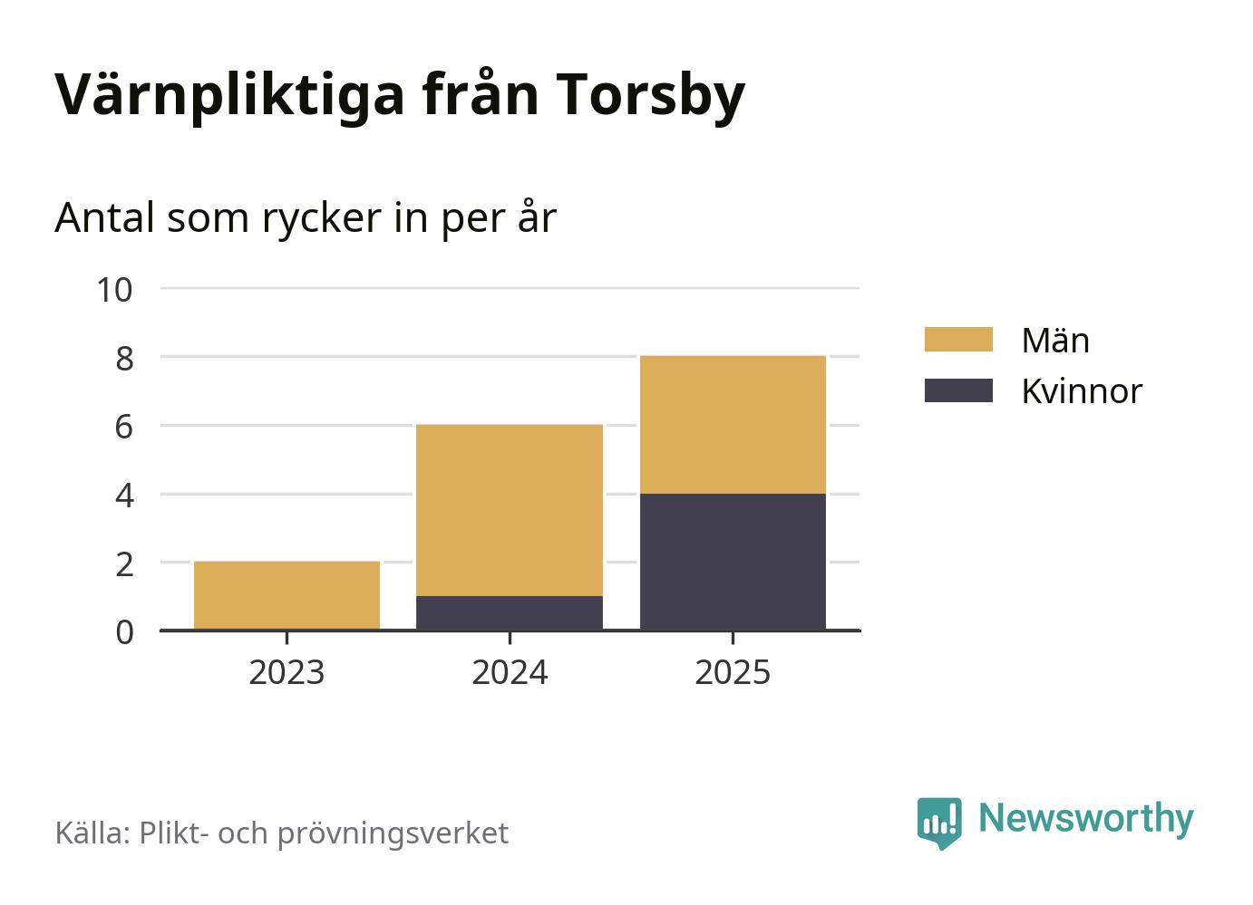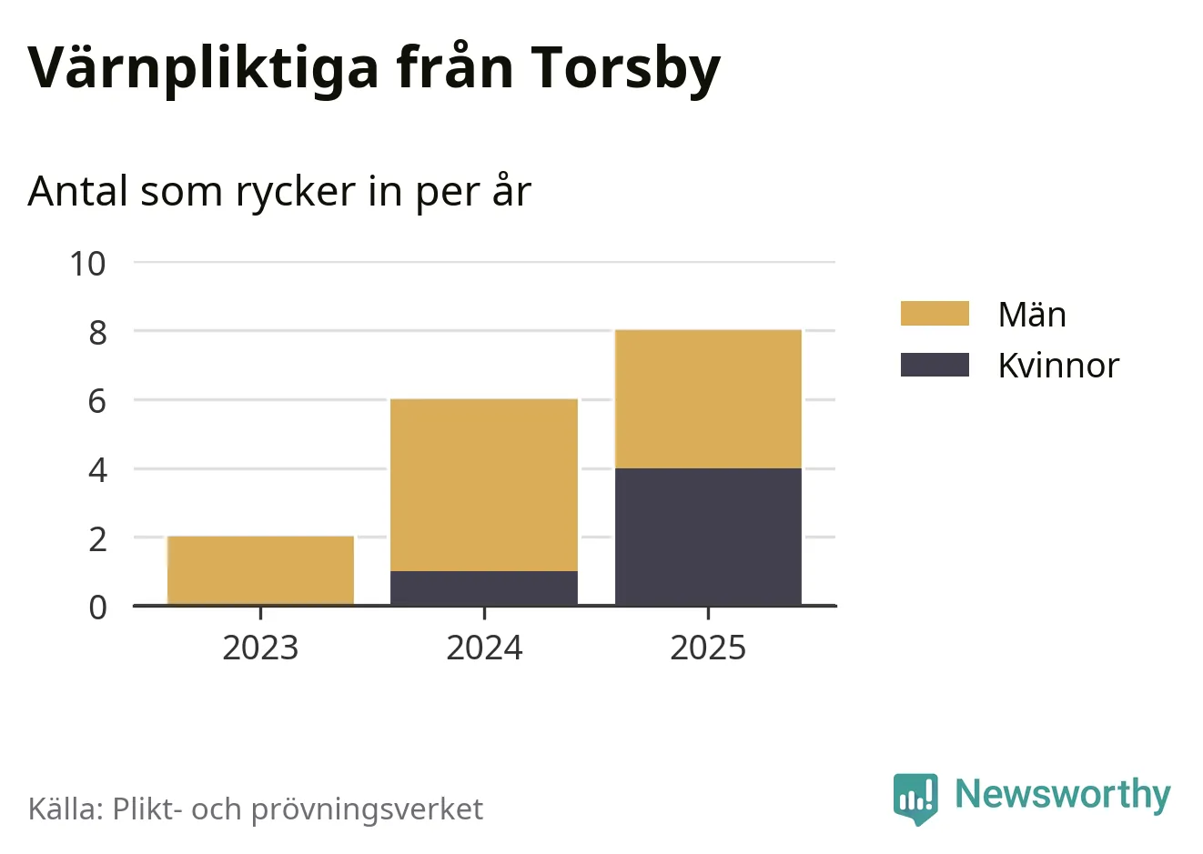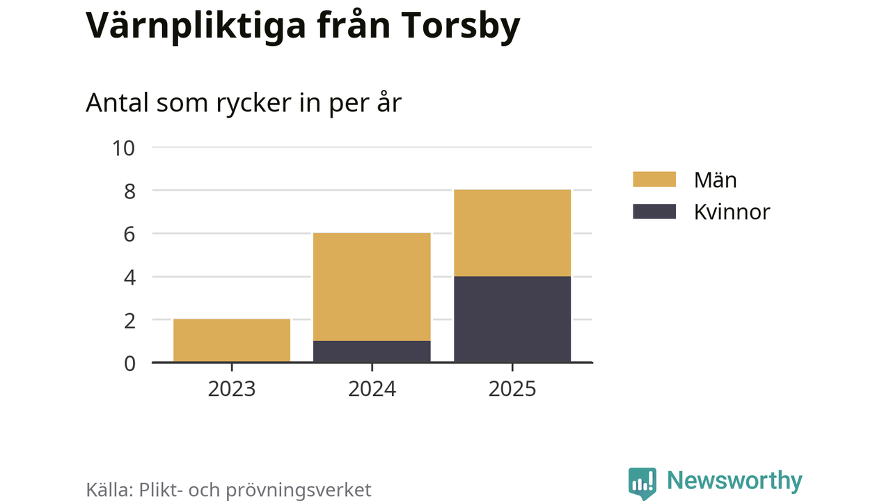 Sedan 2023 – som är det första året vi har jämförbara siffror för – har totalt 16 ungdomar från Torsby påbörjat sin värnplikt. Av dem har fem varit kvinnor.