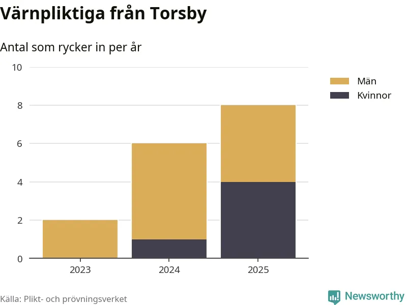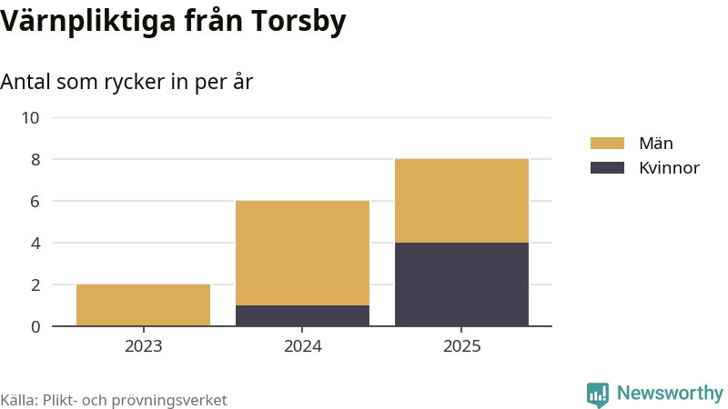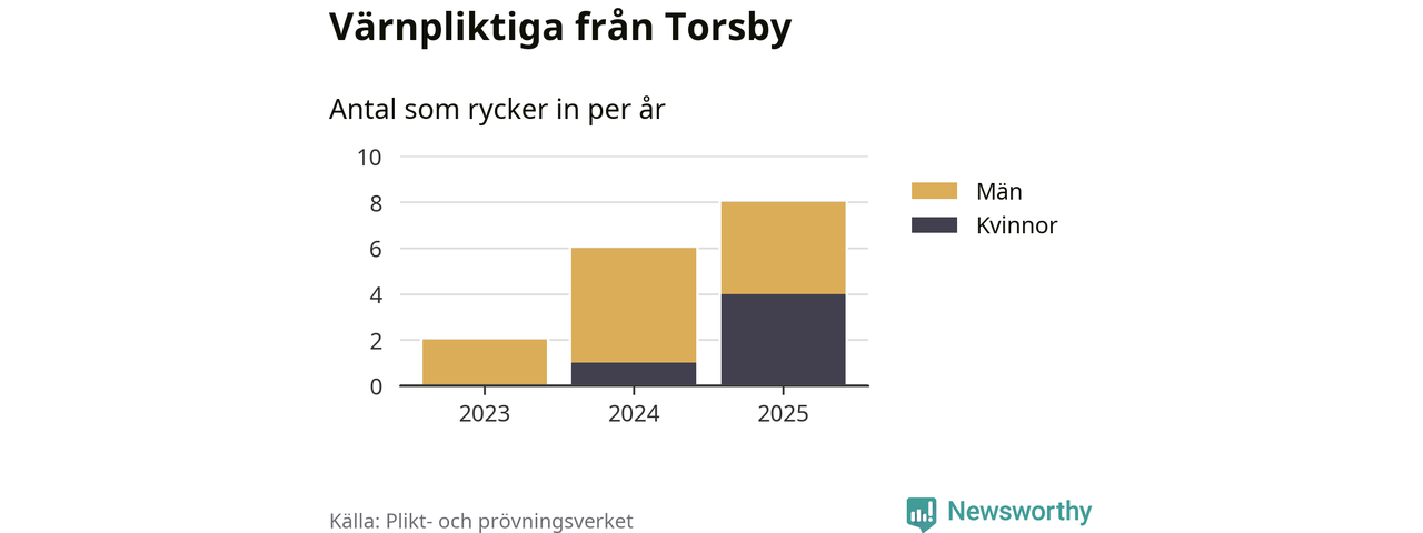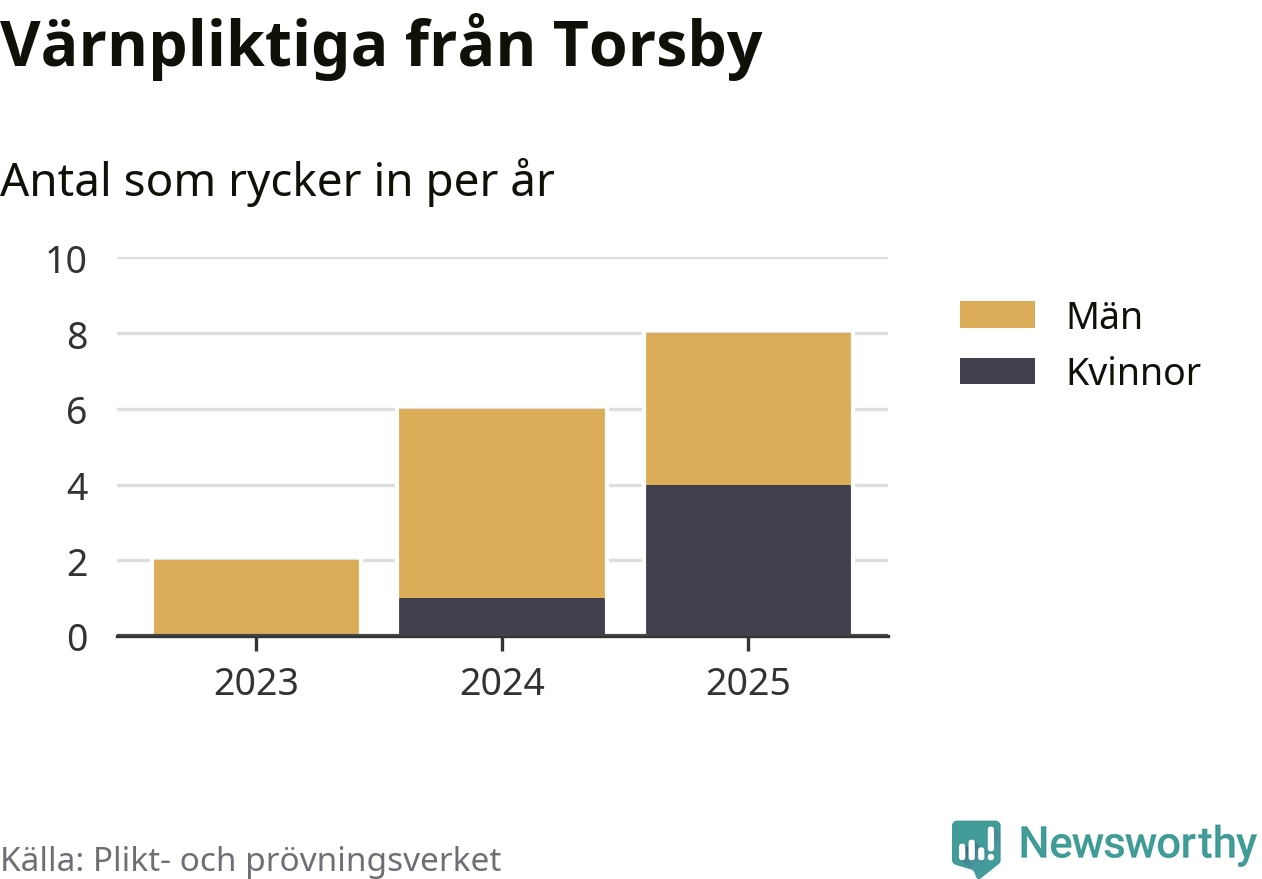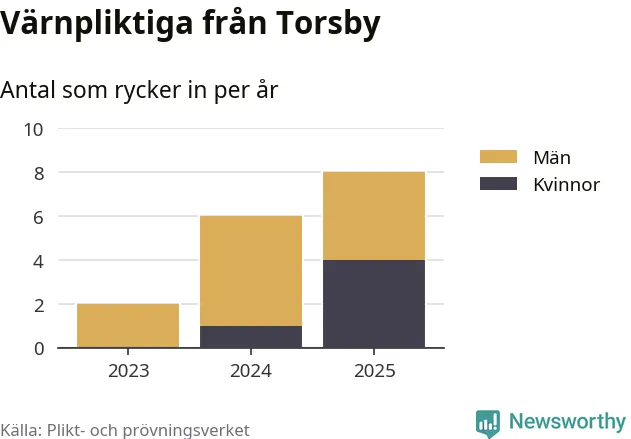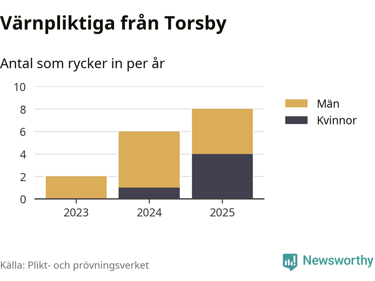 Sedan 2023 – som är det första året vi har jämförbara siffror för – har totalt 16 ungdomar från Torsby påbörjat sin värnplikt. Av dem har fem varit kvinnor.