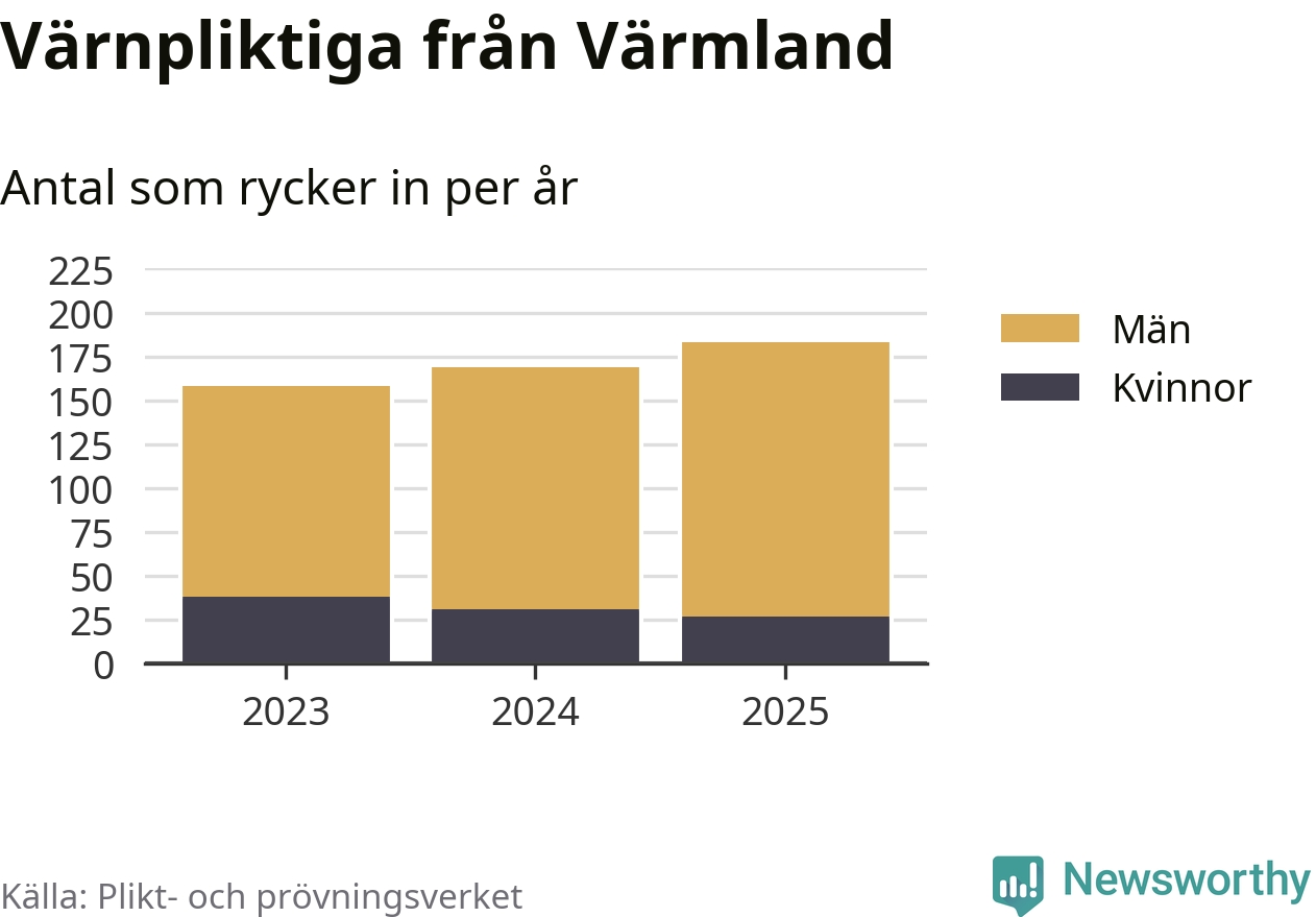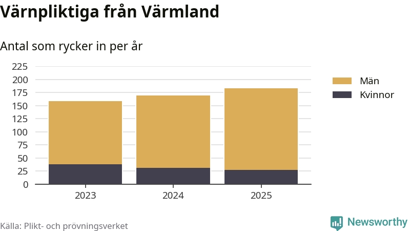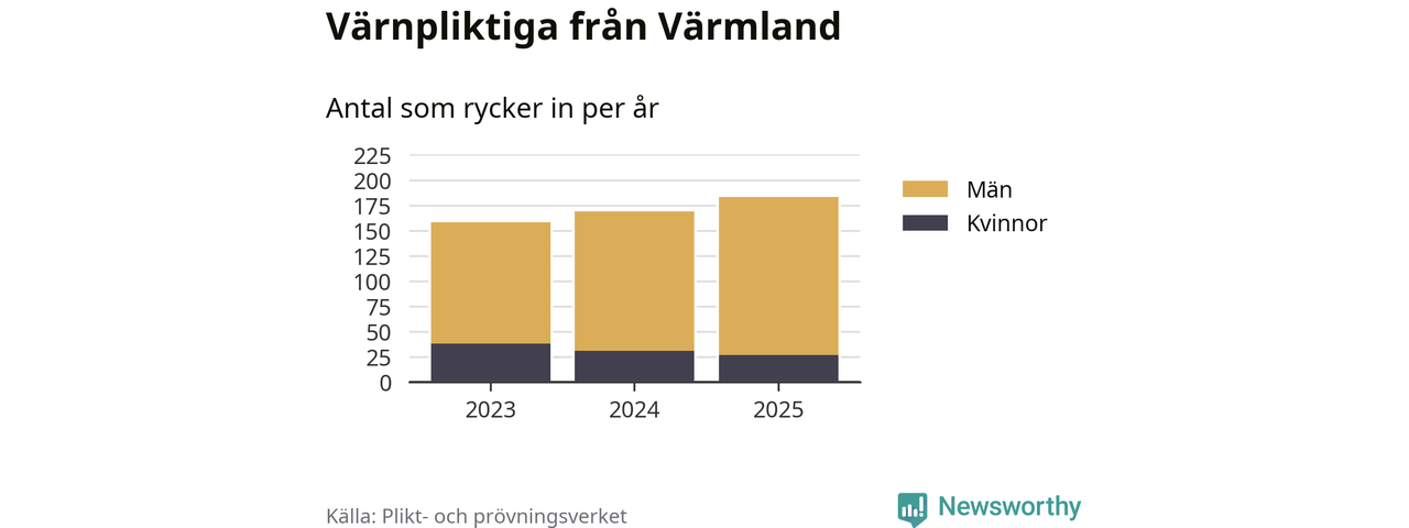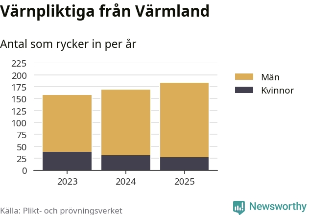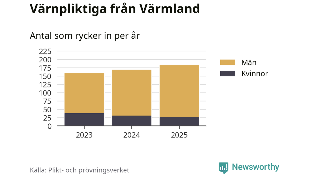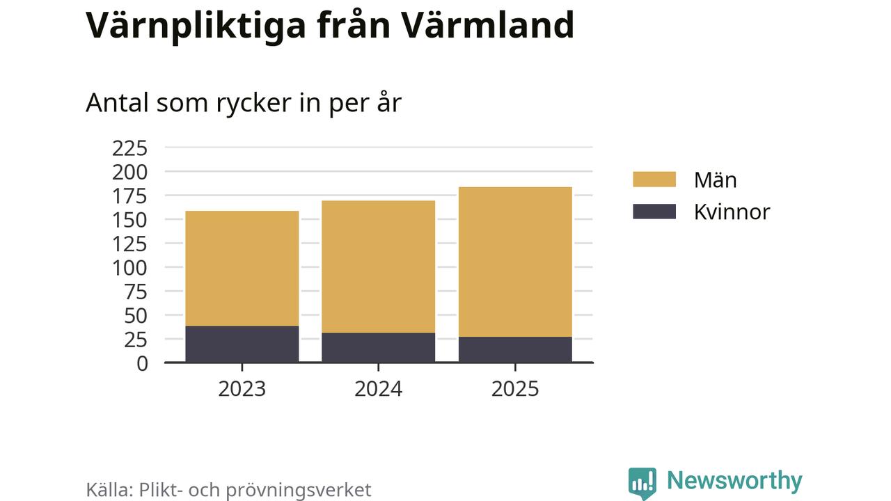 Sedan 2023 – som är det första året vi har jämförbara siffror för – har totalt 510 ungdomar från Värmland påbörjat sin värnplikt. Av dem har 96 varit kvinnor.