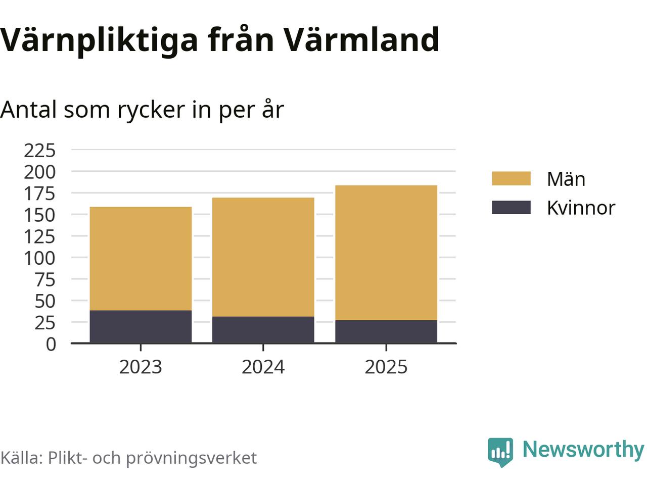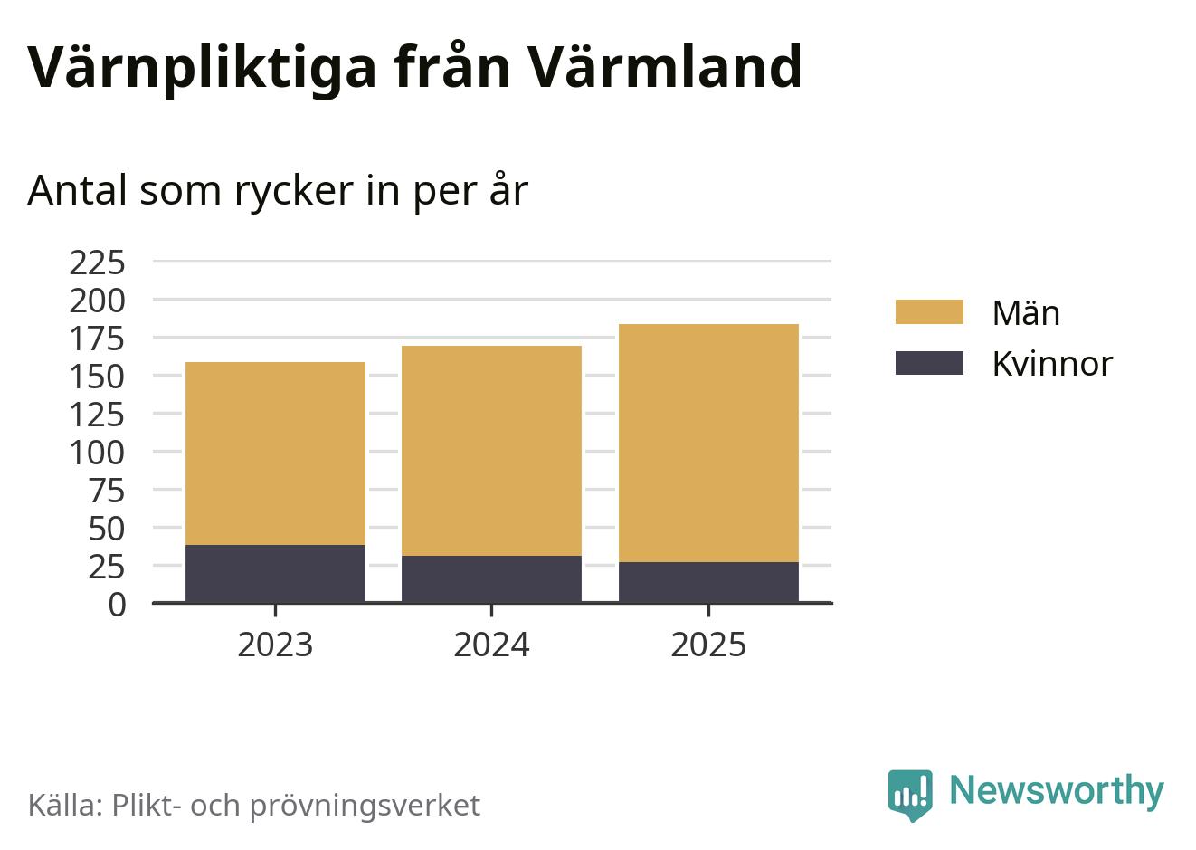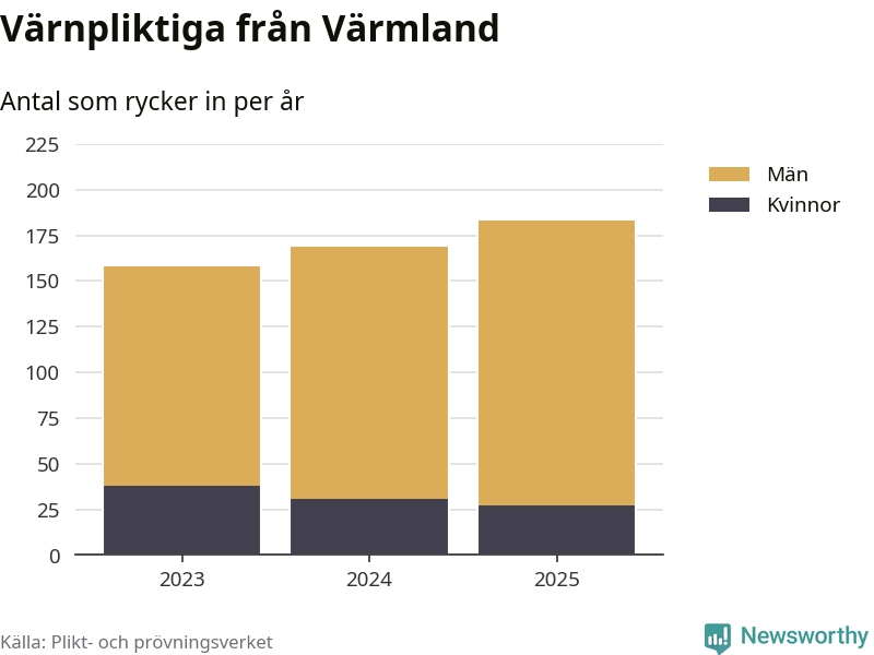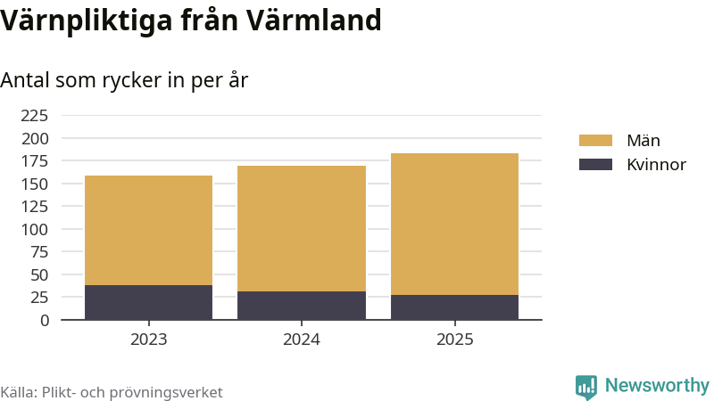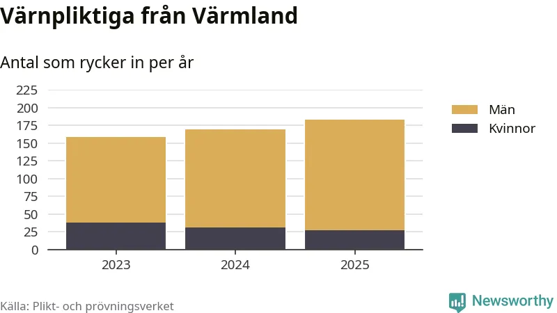 Sedan 2023 – som är det första året vi har jämförbara siffror för – har totalt 510 ungdomar från Värmland påbörjat sin värnplikt. Av dem har 96 varit kvinnor.