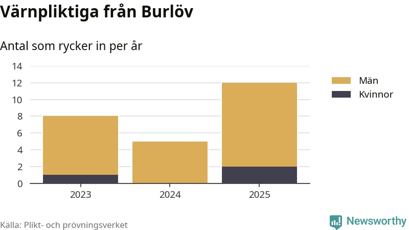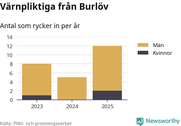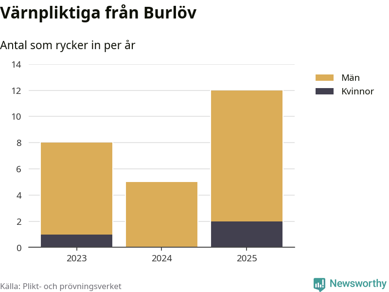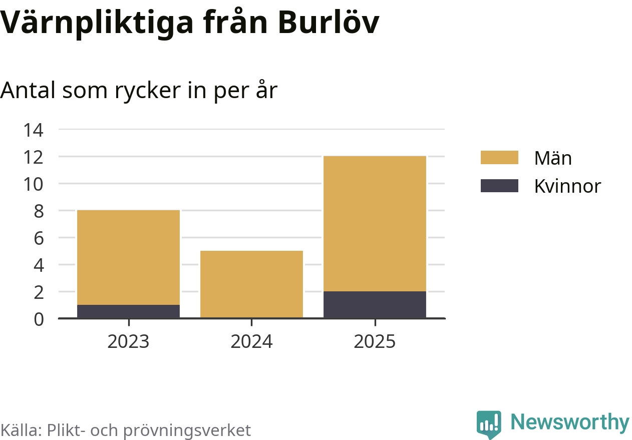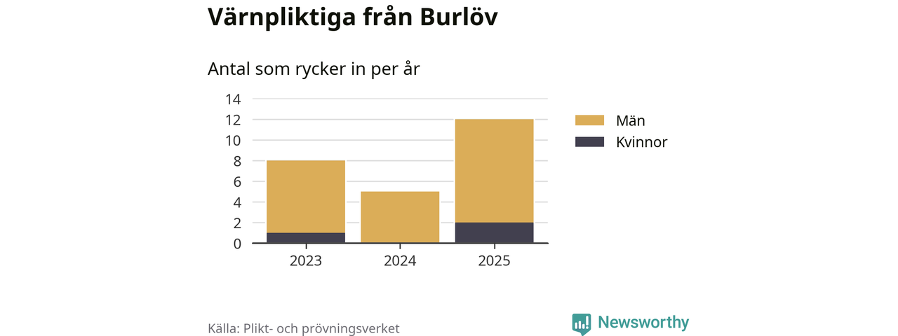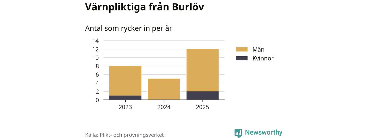 Sedan 2023 – som är det första året vi har jämförbara siffror för – har totalt 25 ungdomar från Burlöv påbörjat sin värnplikt. Av dem har tre varit kvinnor.