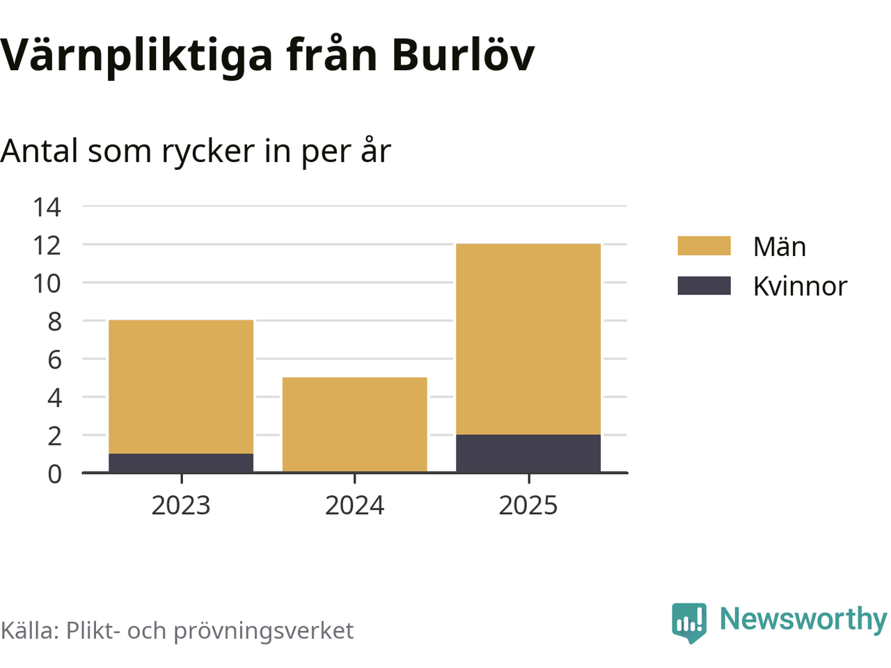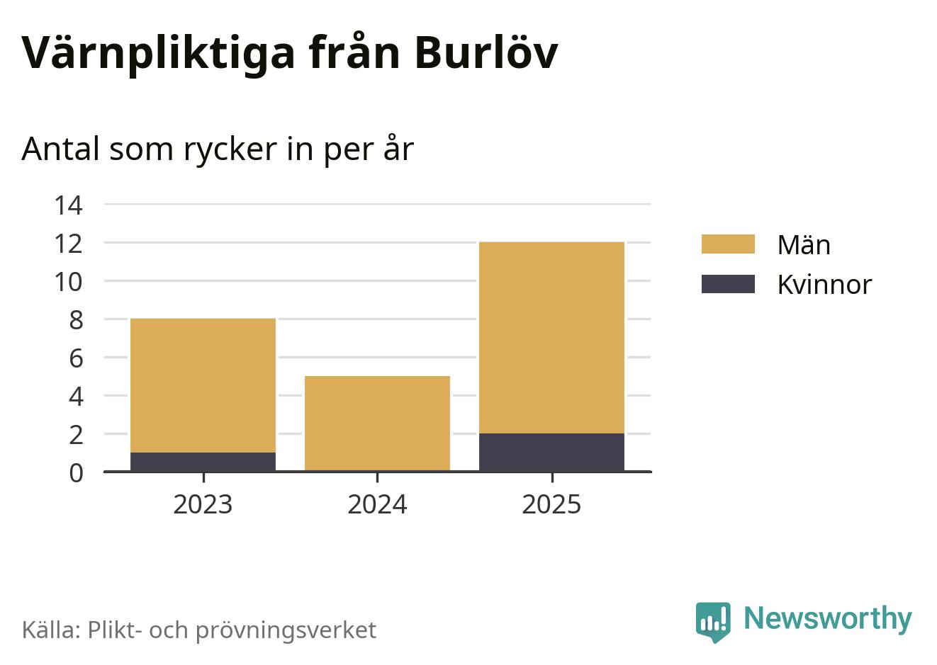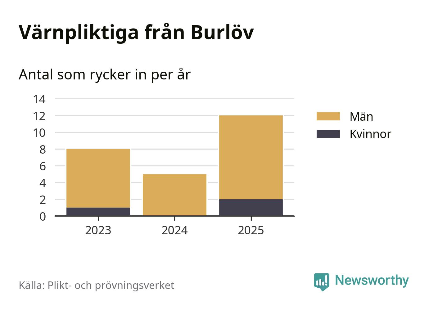 Sedan 2023 – som är det första året vi har jämförbara siffror för – har totalt 25 ungdomar från Burlöv påbörjat sin värnplikt. Av dem har tre varit kvinnor.