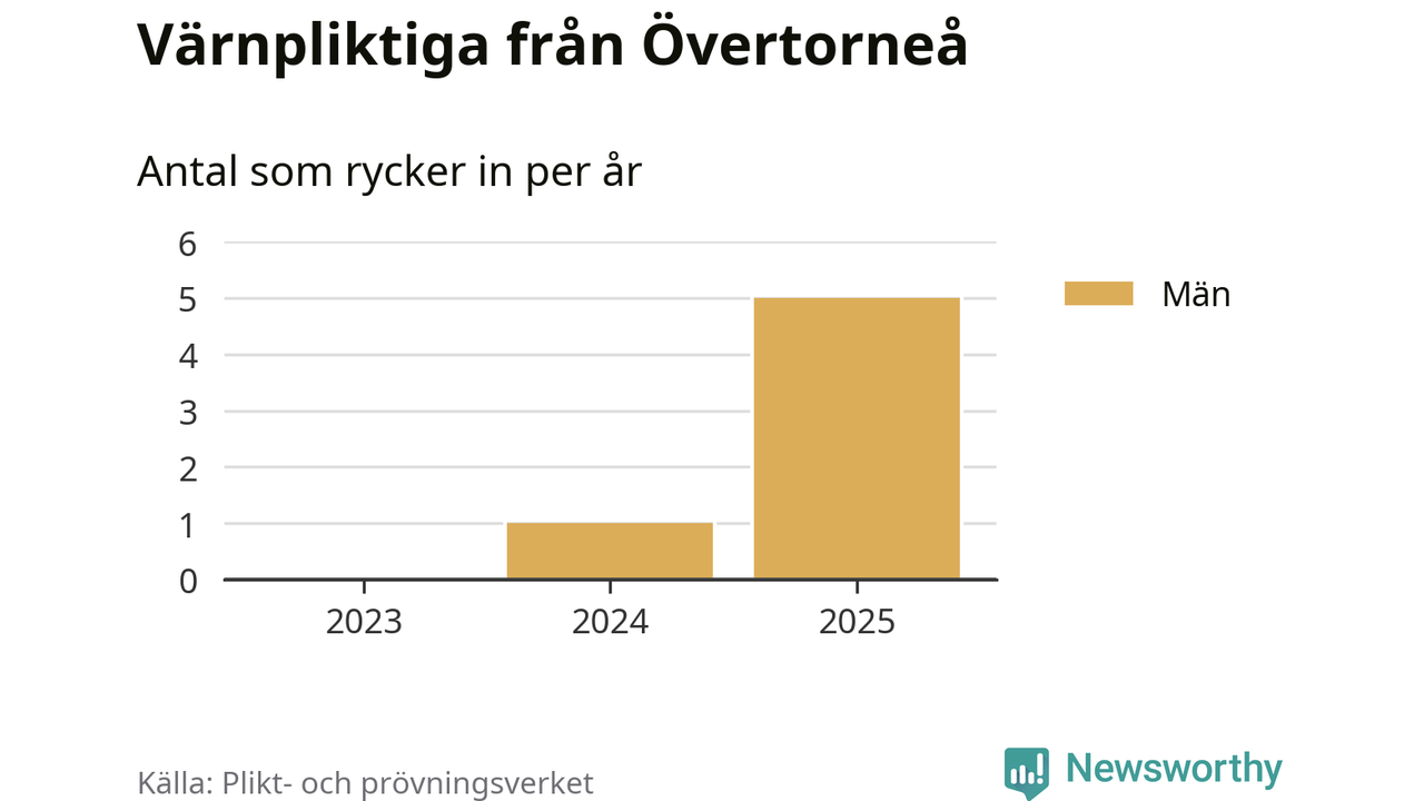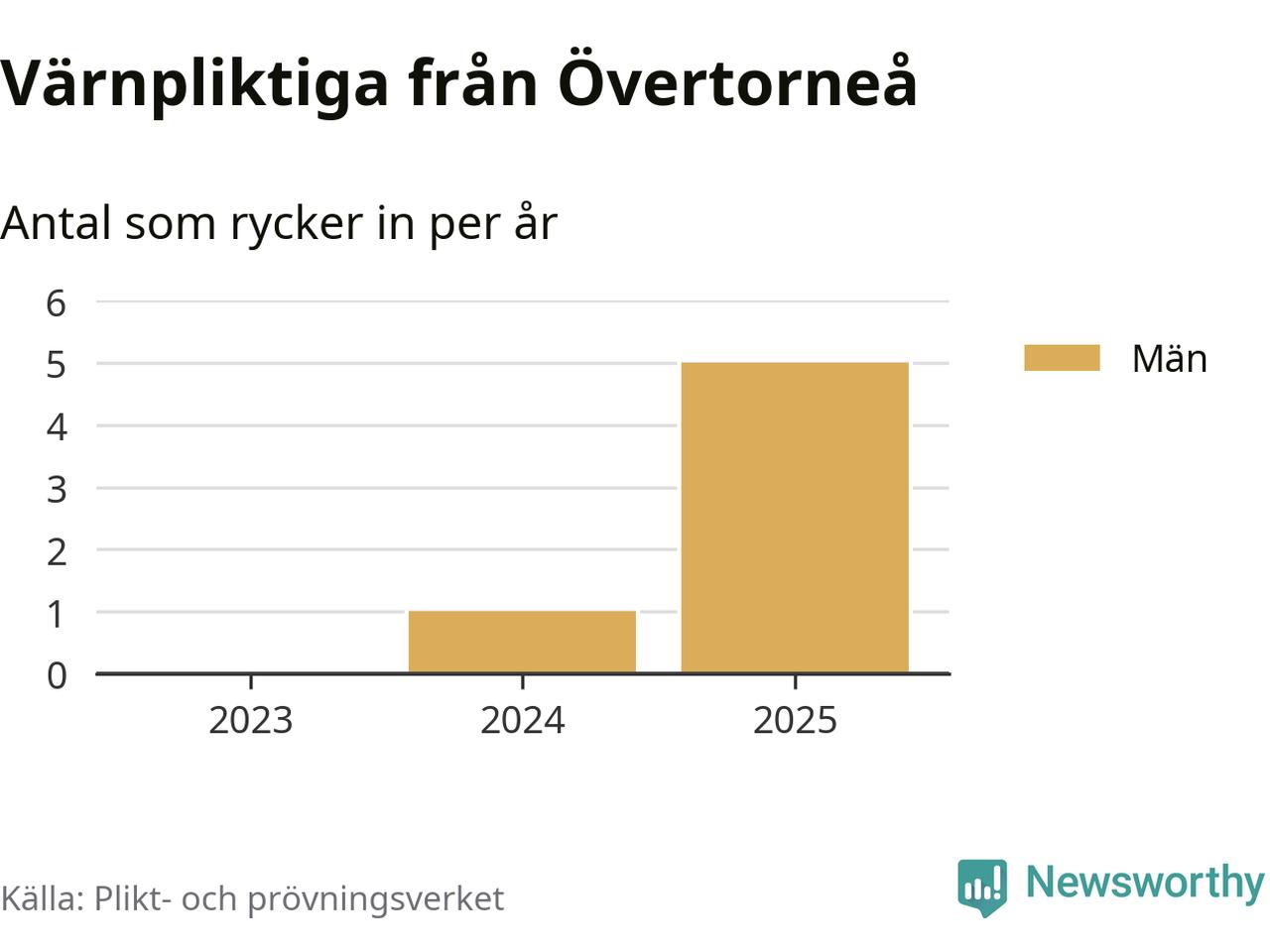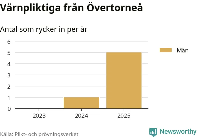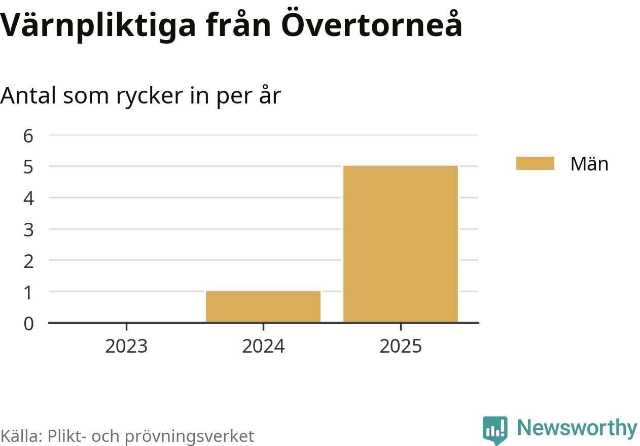 Sedan 2023 – som är det första året vi har jämförbara siffror för – har totalt sex ungdomar från Övertorneå påbörjat sin värnplikt. Ingen av dem har varit kvinnor.