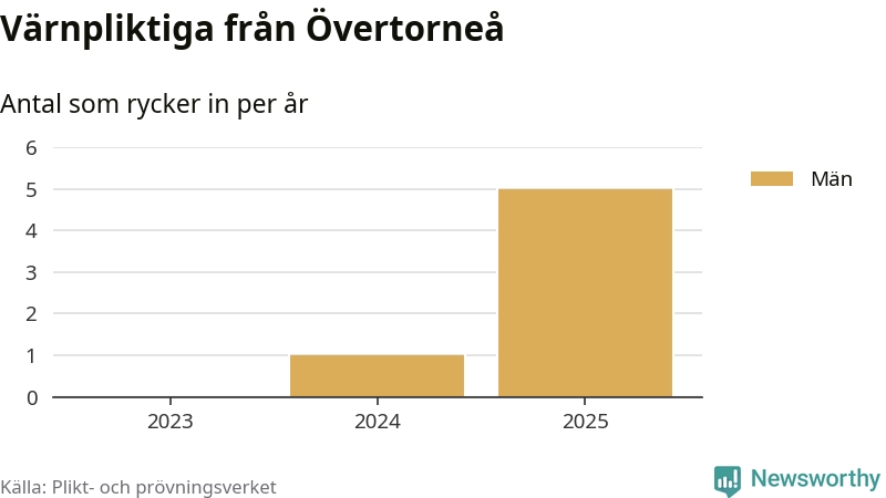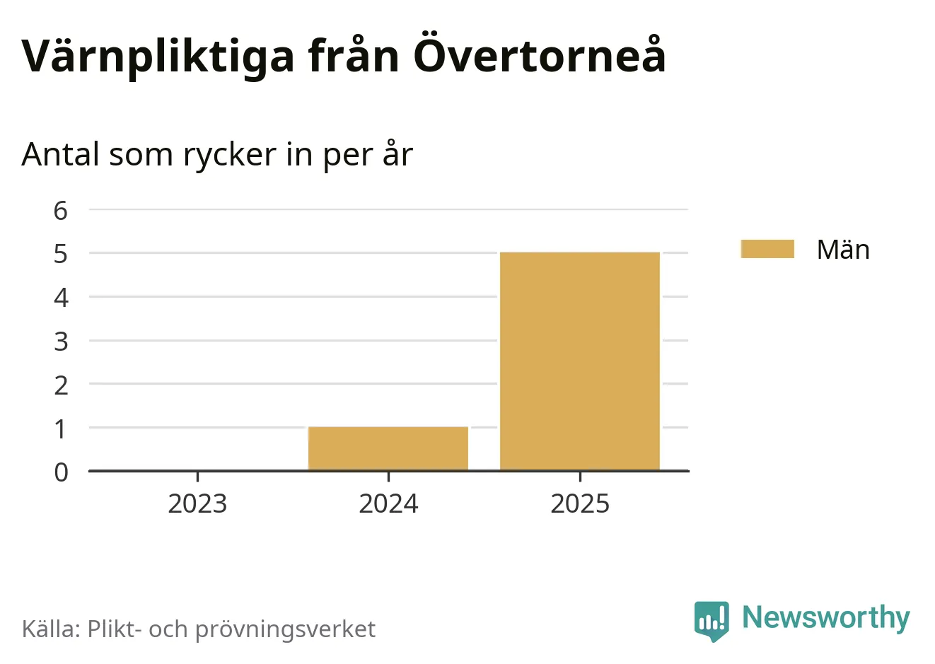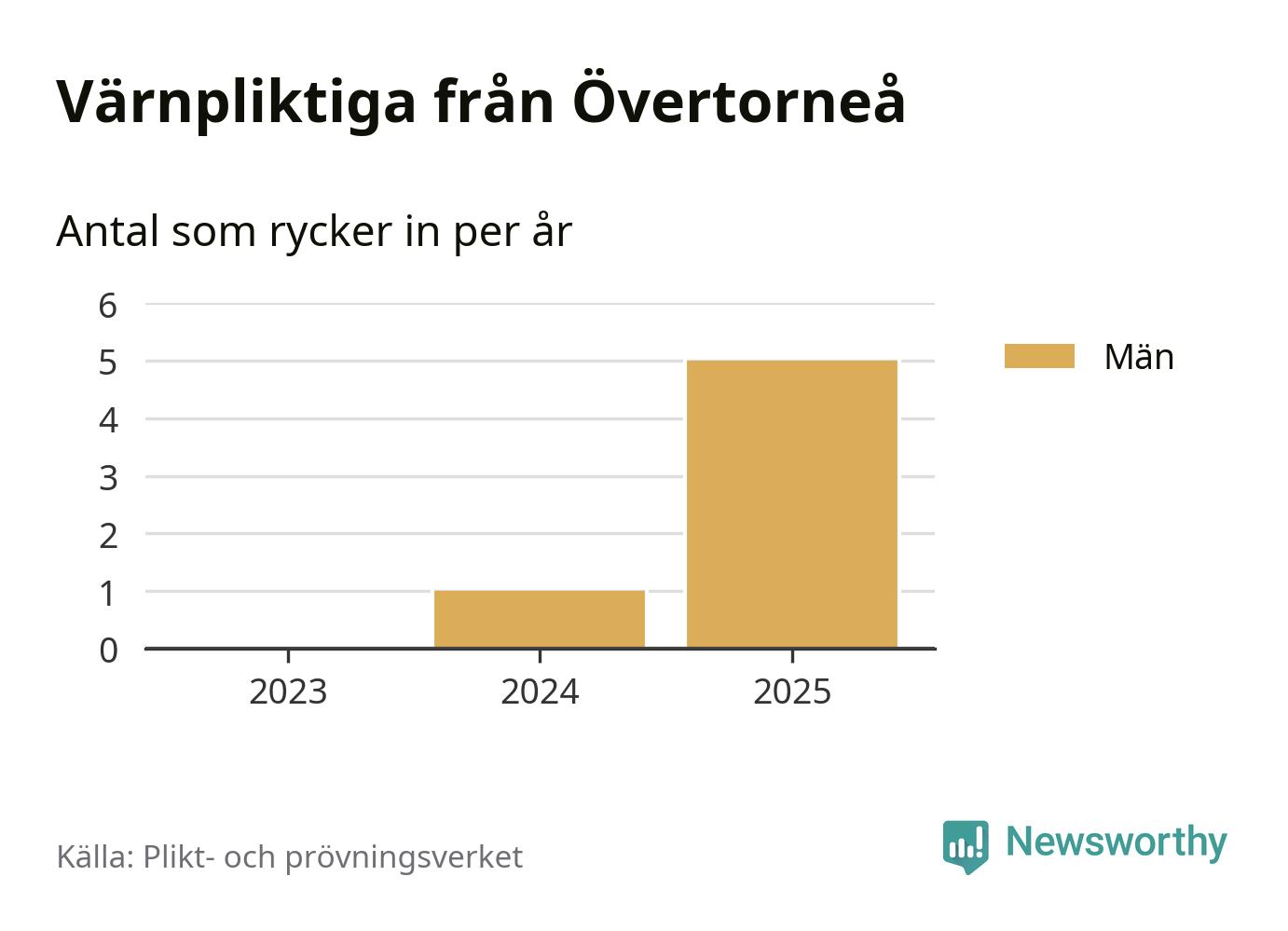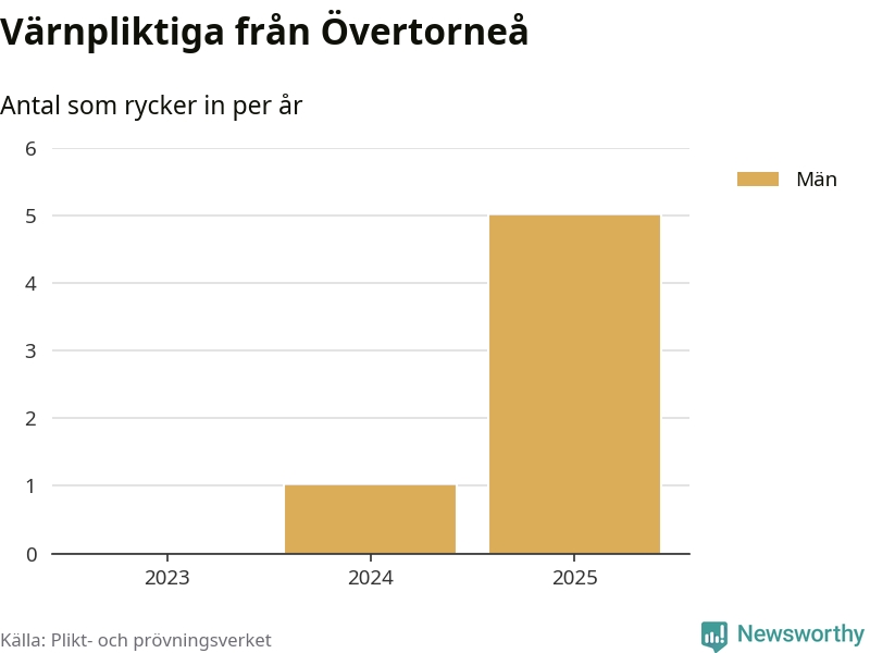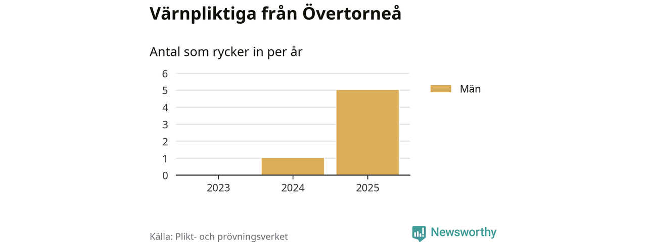 Sedan 2023 – som är det första året vi har jämförbara siffror för – har totalt sex ungdomar från Övertorneå påbörjat sin värnplikt. Ingen av dem har varit kvinnor.