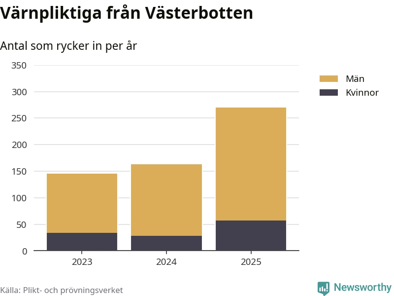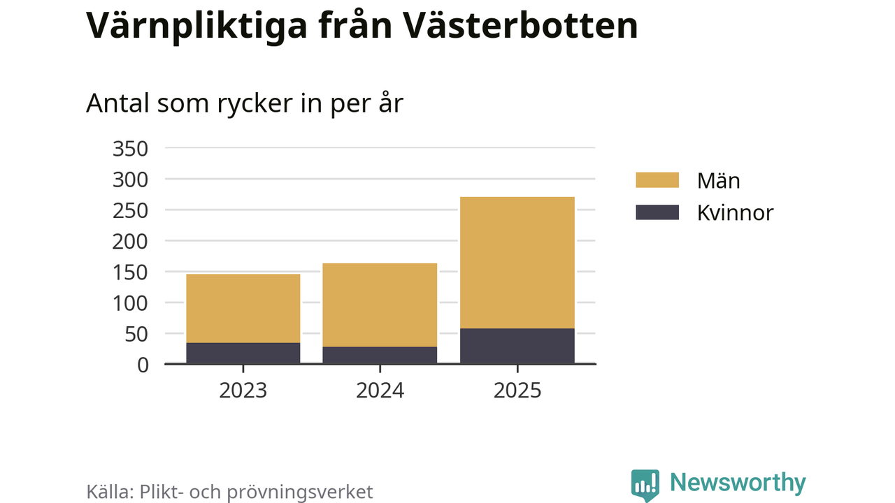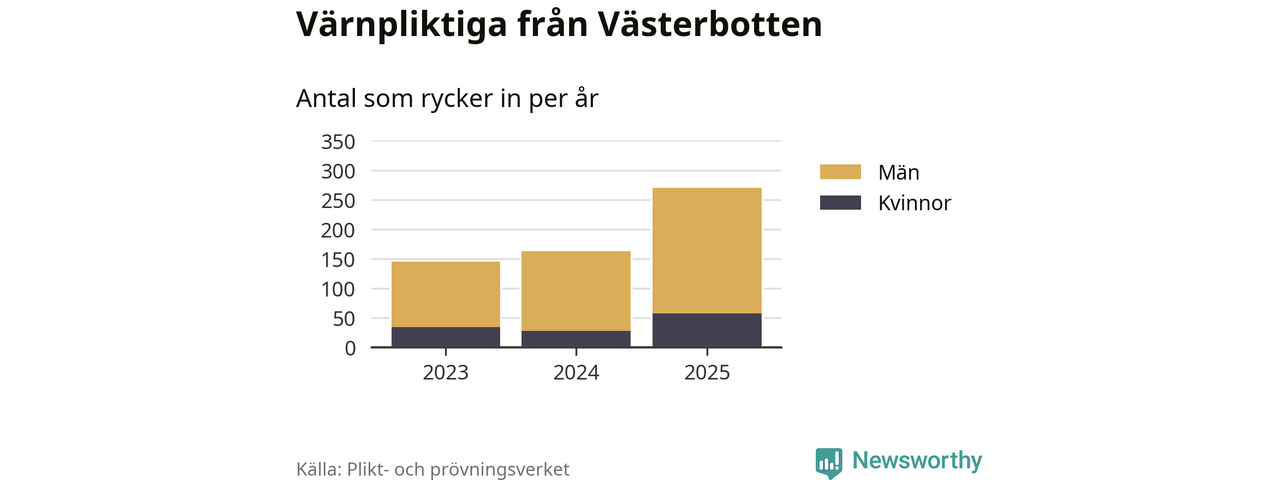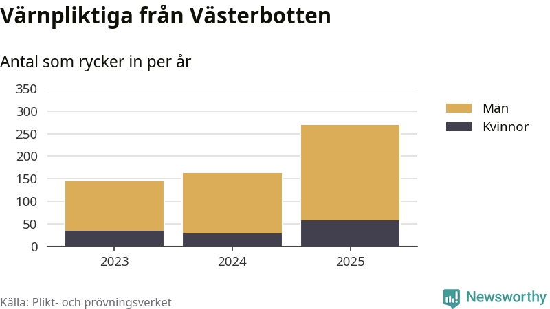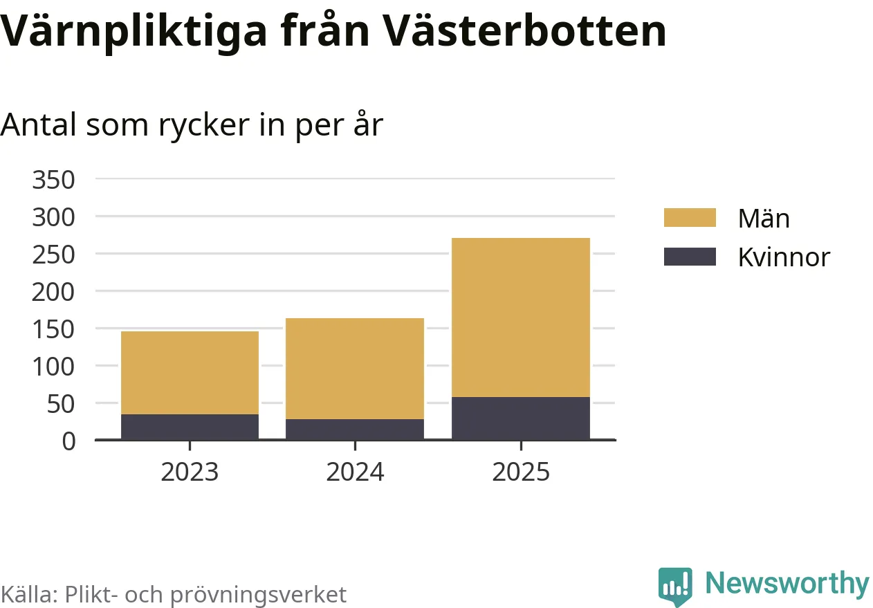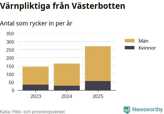 Sedan 2023 – som är det första året vi har jämförbara siffror för – har totalt 578 ungdomar från Västerbotten påbörjat sin värnplikt. Av dem har 119 varit kvinnor.