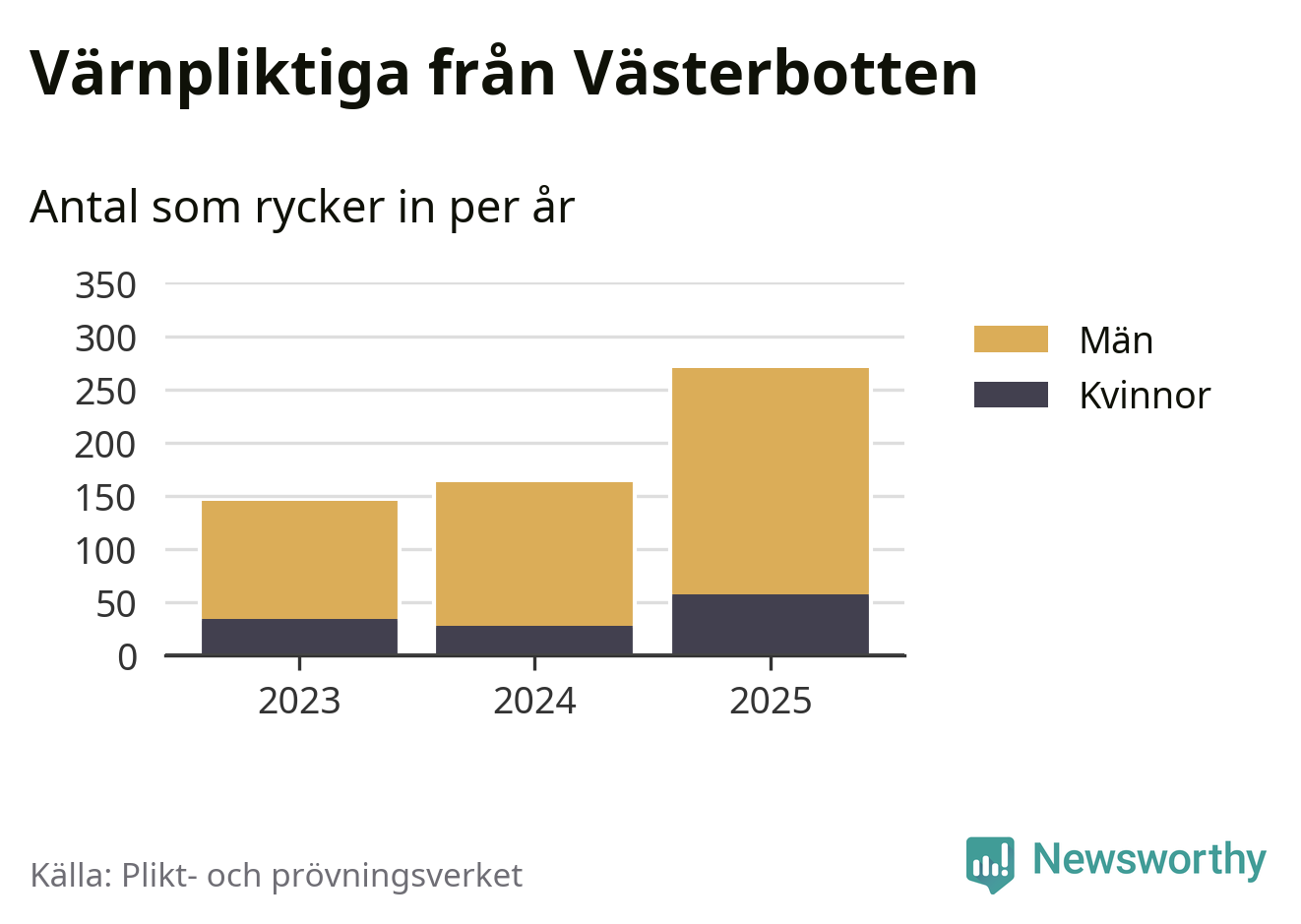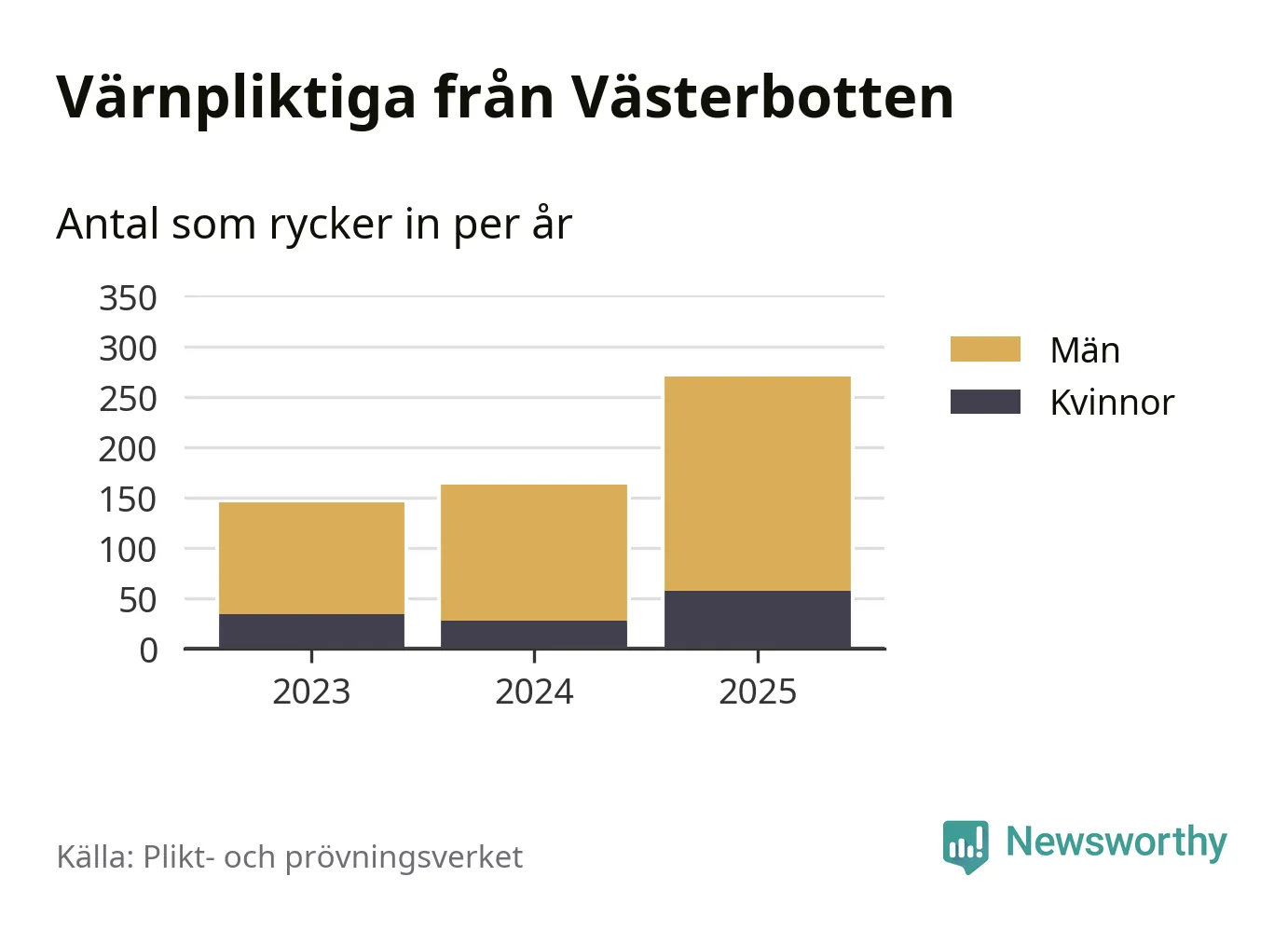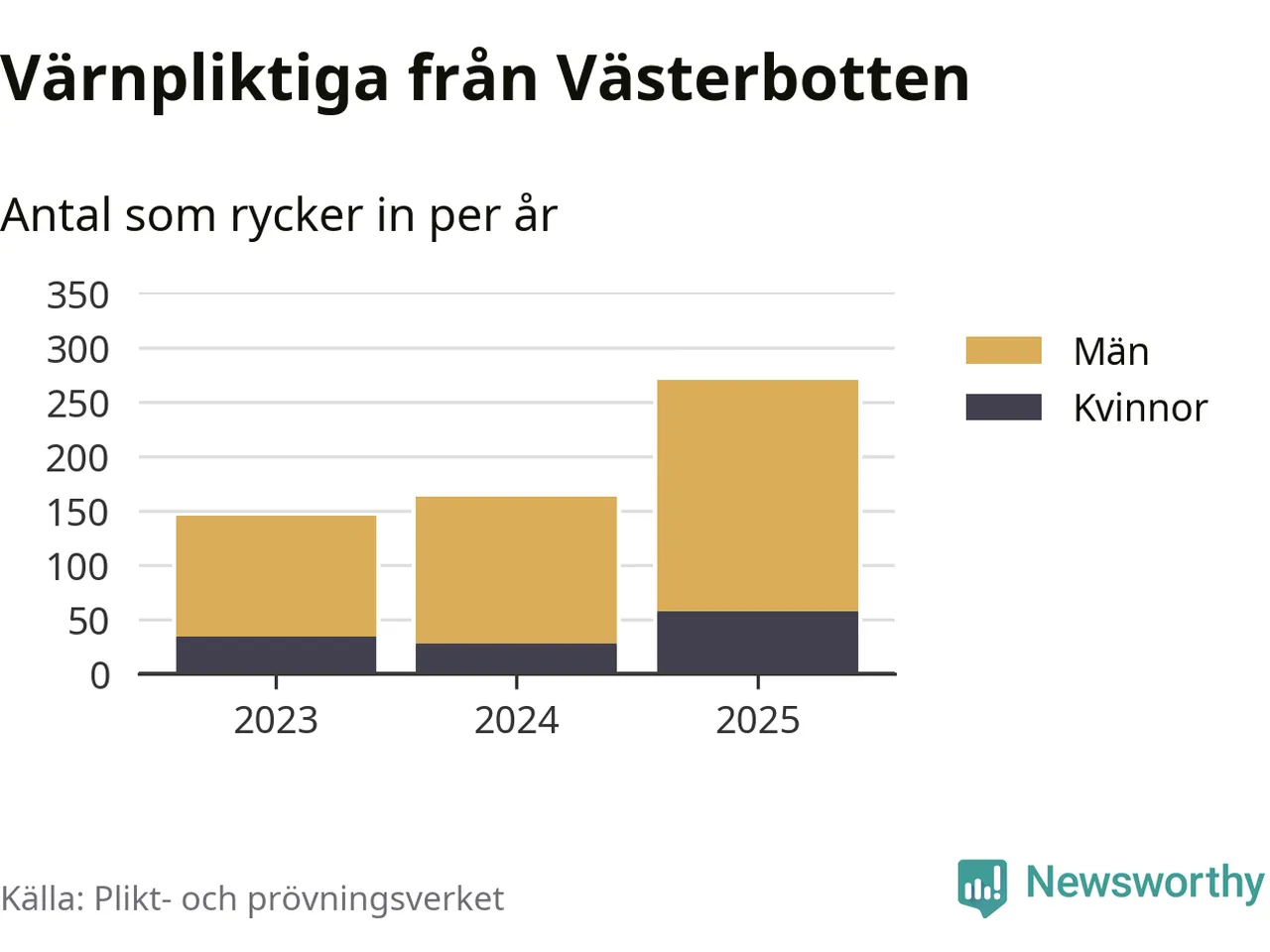 Sedan 2023 – som är det första året vi har jämförbara siffror för – har totalt 578 ungdomar från Västerbotten påbörjat sin värnplikt. Av dem har 119 varit kvinnor.