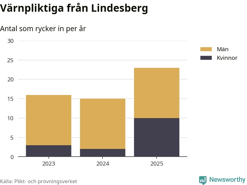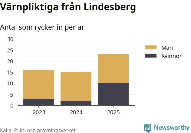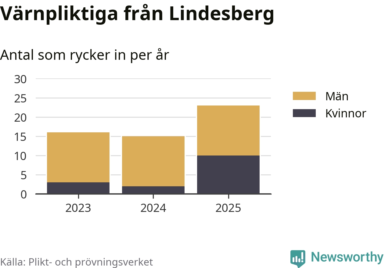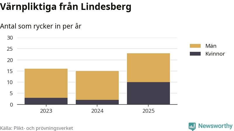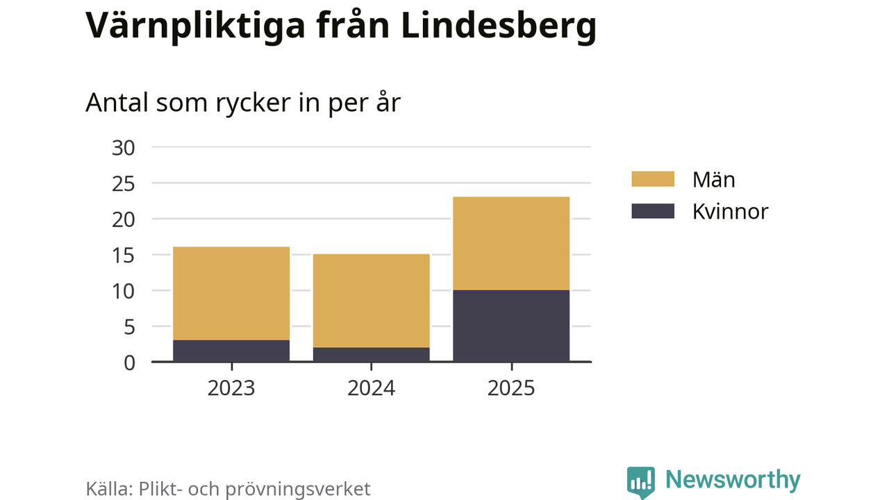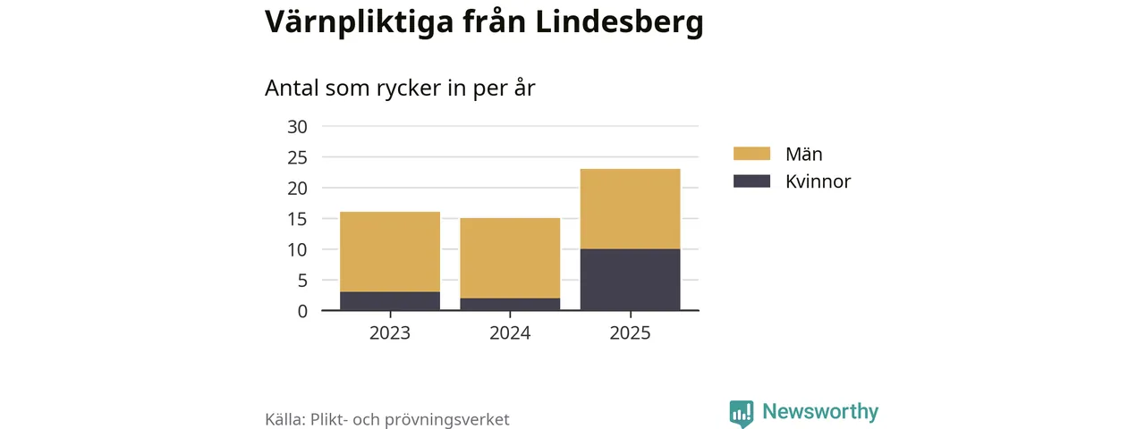 Sedan 2023 – som är det första året vi har jämförbara siffror för – har totalt 54 ungdomar från Lindesberg påbörjat sin värnplikt. Av dem har 15 varit kvinnor.