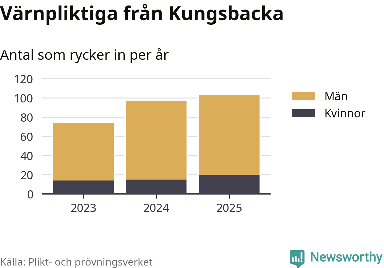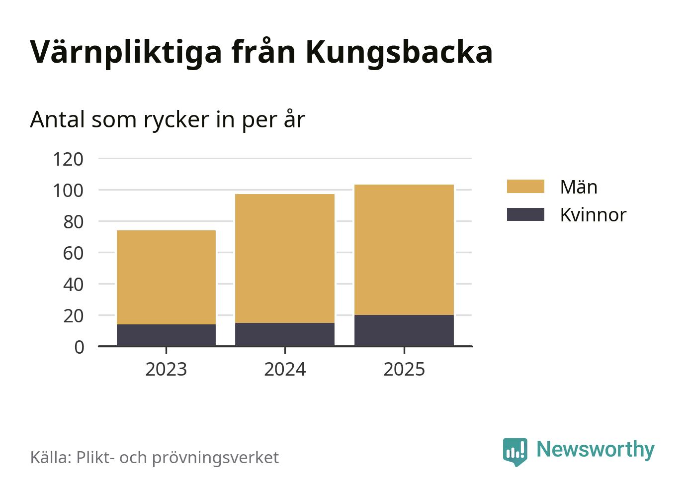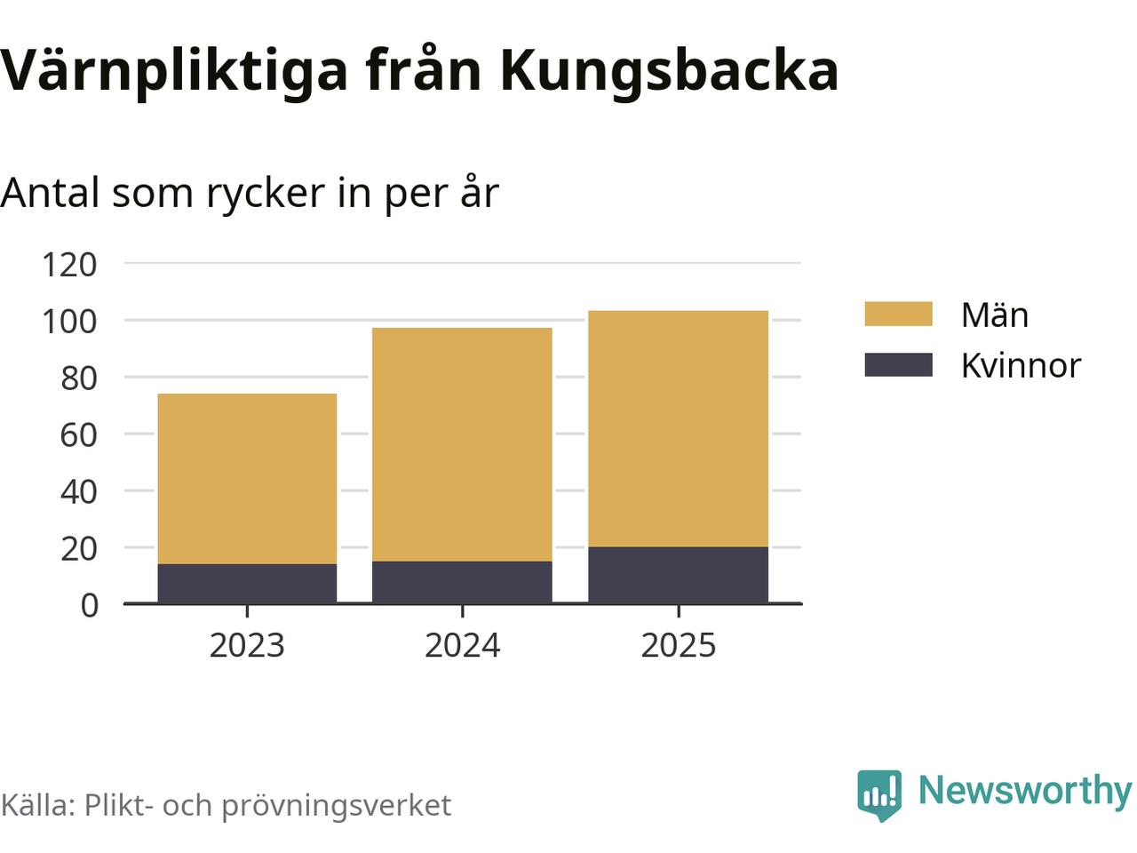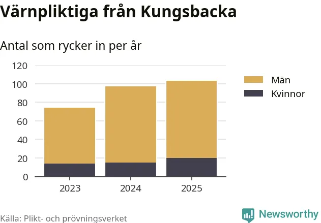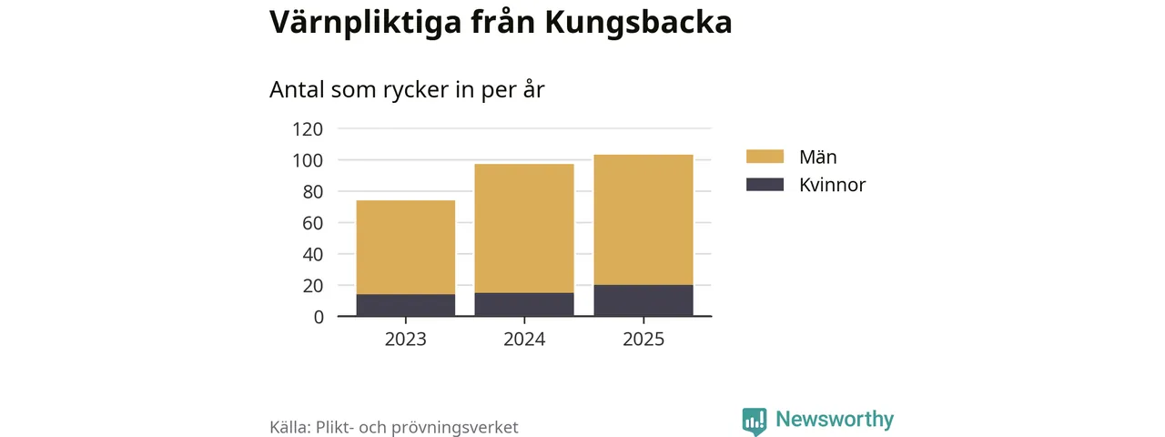 Sedan 2023 – som är det första året vi har jämförbara siffror för – har totalt 274 ungdomar från Kungsbacka påbörjat sin värnplikt. Av dem har 49 varit kvinnor.