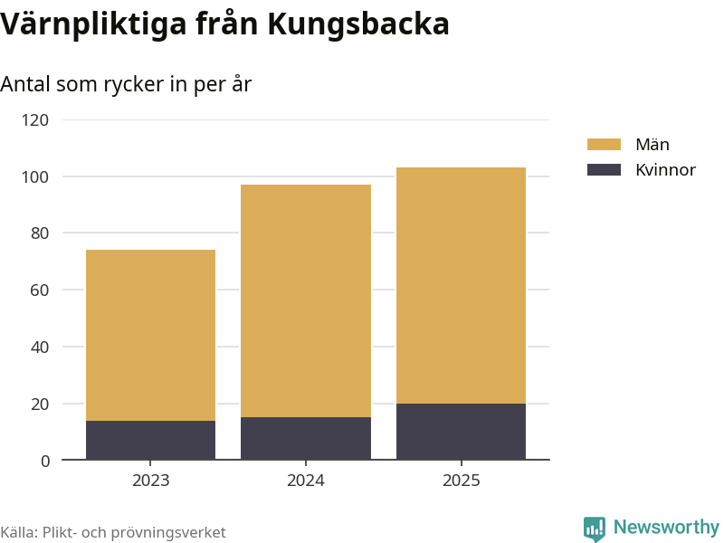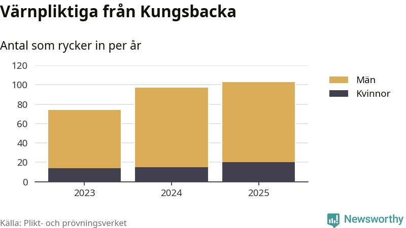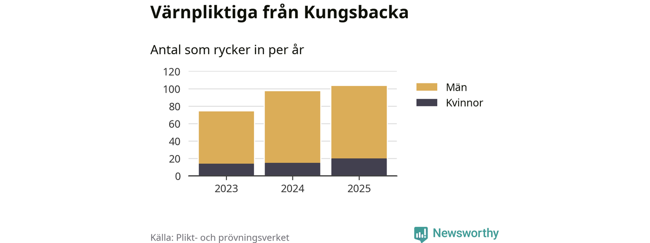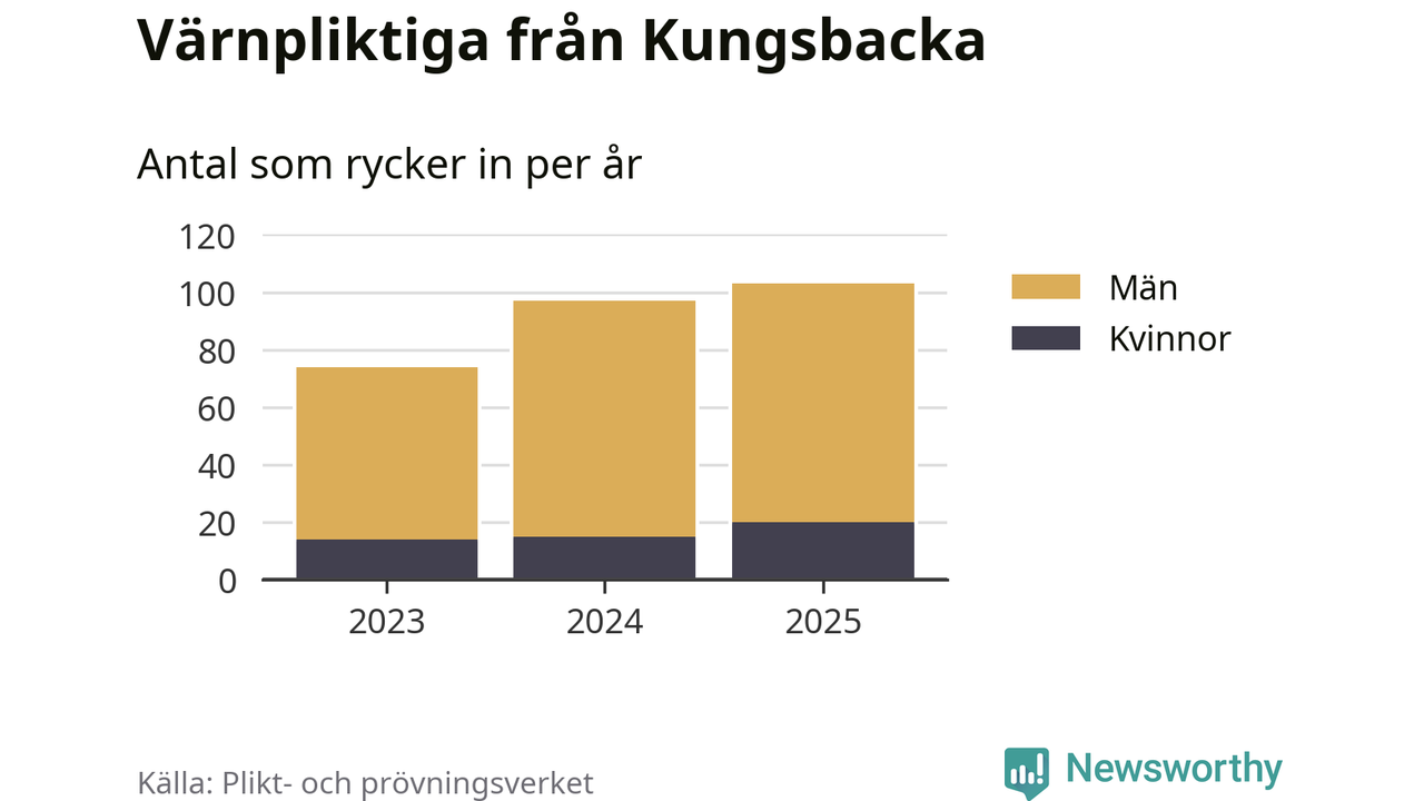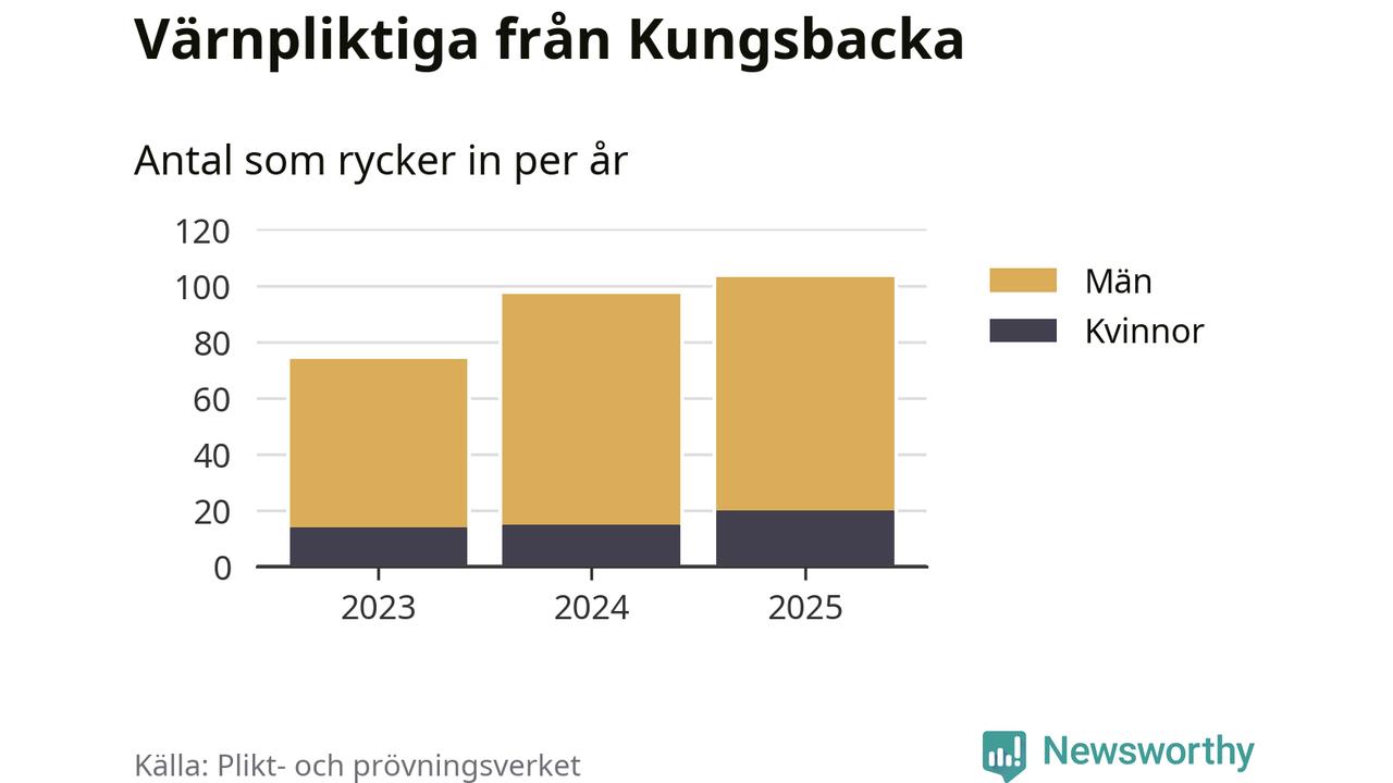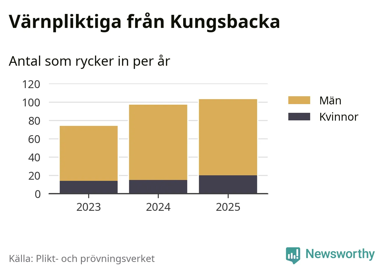 Sedan 2023 – som är det första året vi har jämförbara siffror för – har totalt 274 ungdomar från Kungsbacka påbörjat sin värnplikt. Av dem har 49 varit kvinnor.