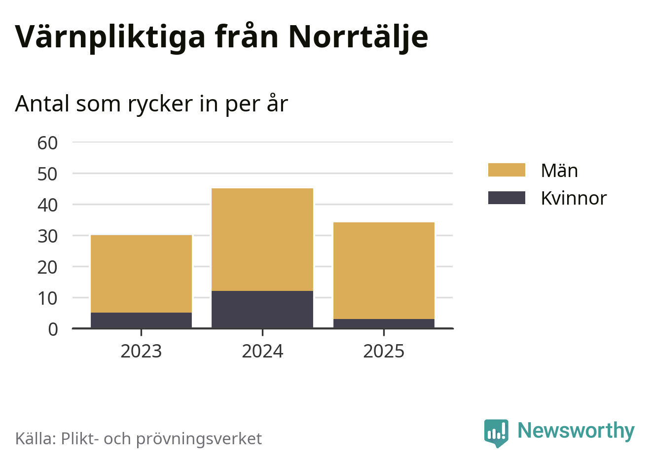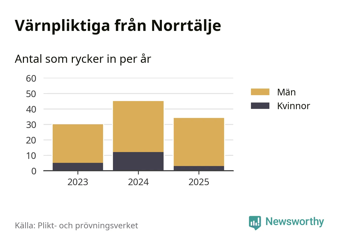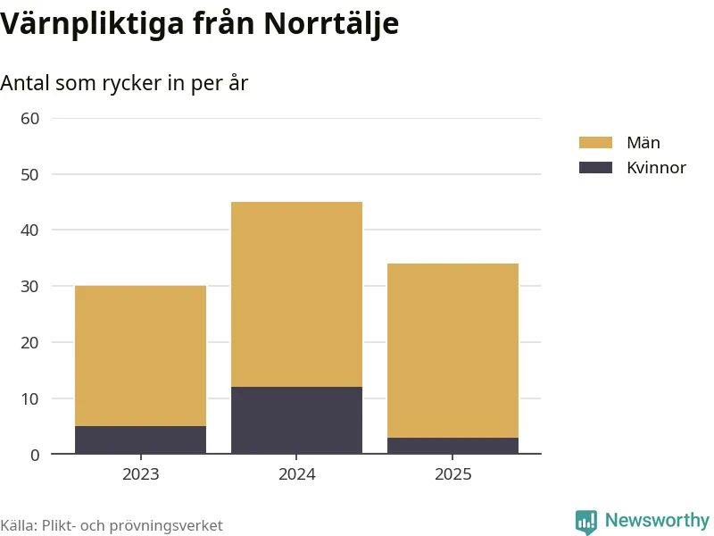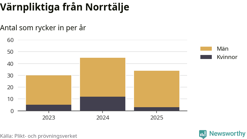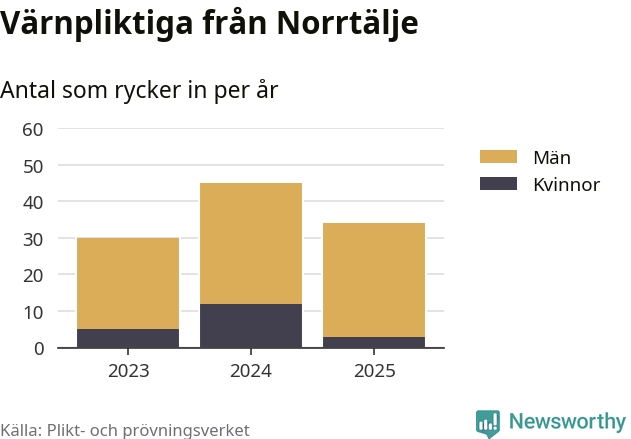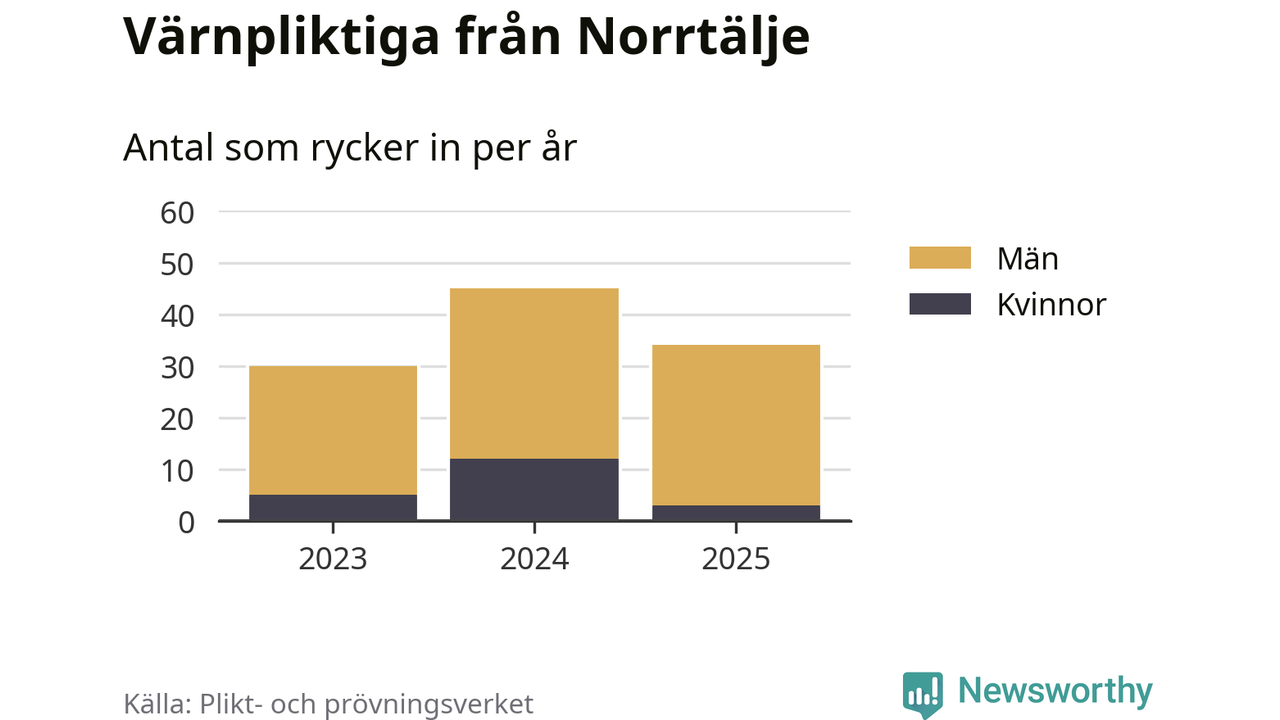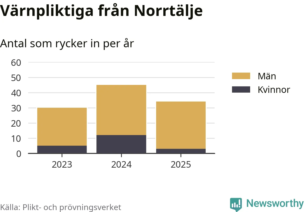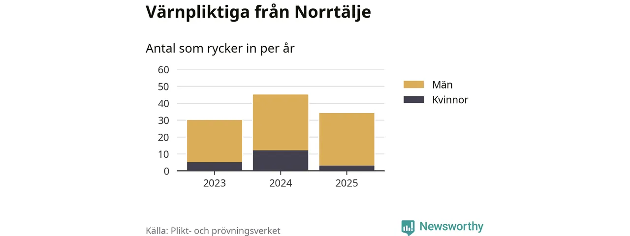 Sedan 2023 – som är det första året vi har jämförbara siffror för – har totalt 109 ungdomar från Norrtälje påbörjat sin värnplikt. Av dem har 20 varit kvinnor.