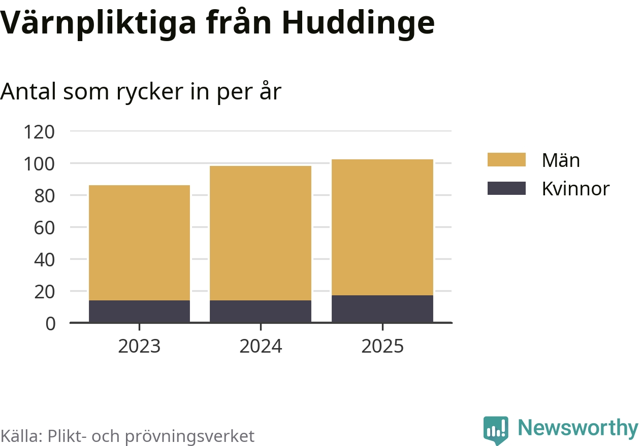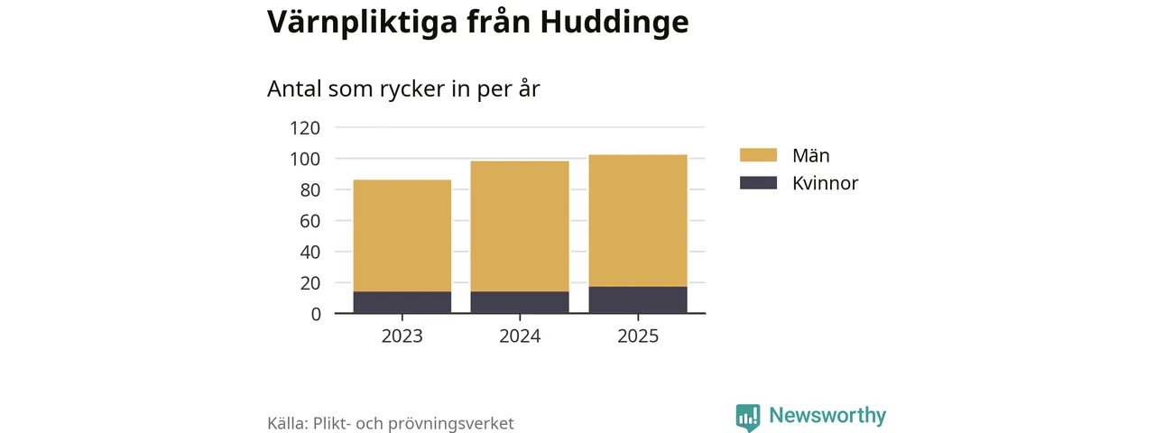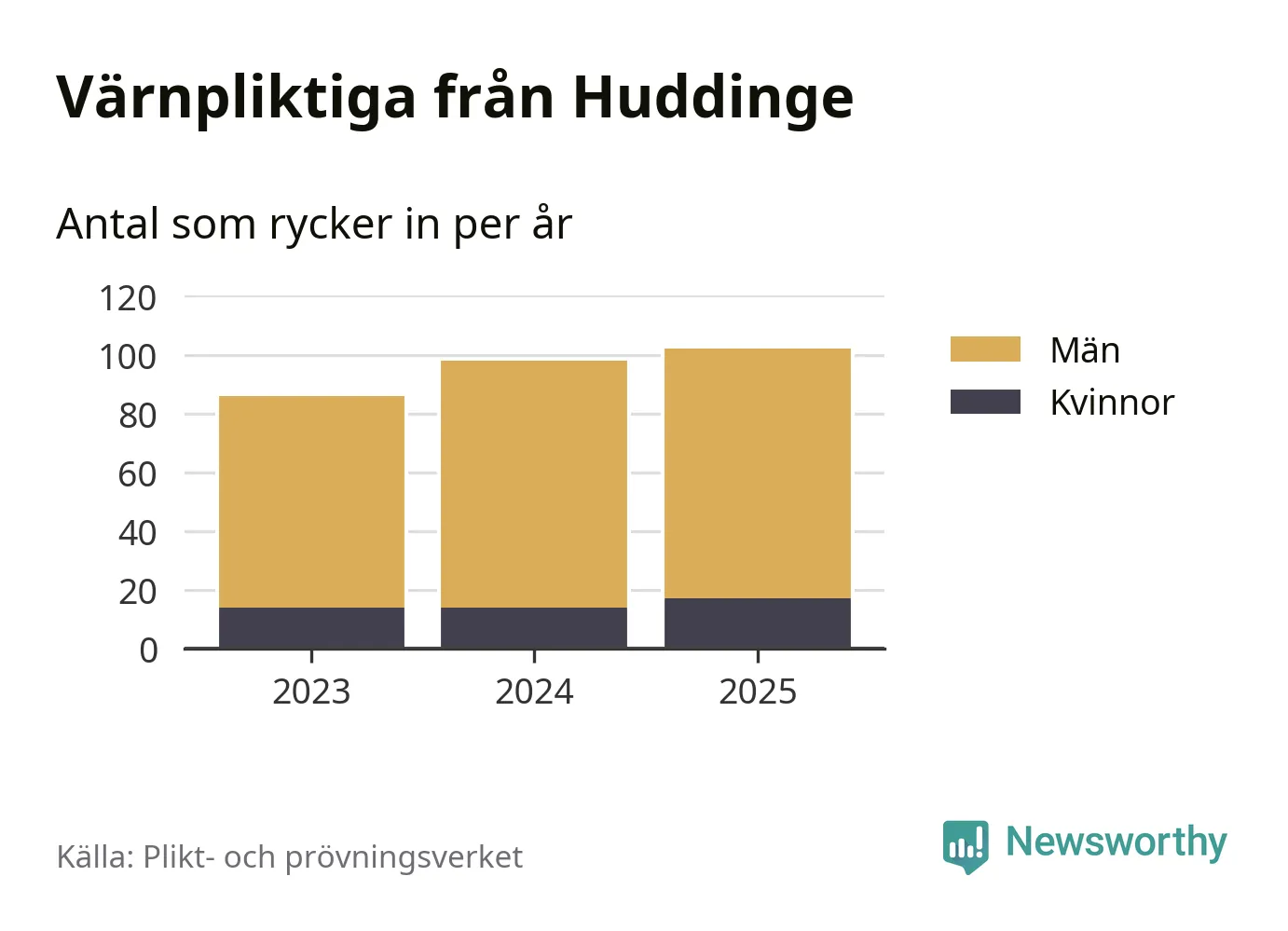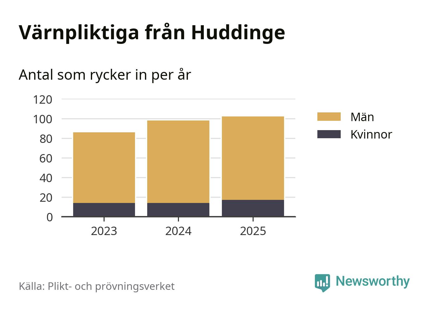 Sedan 2023 – som är det första året vi har jämförbara siffror för – har totalt 286 ungdomar från Huddinge påbörjat sin värnplikt. Av dem har 45 varit kvinnor.