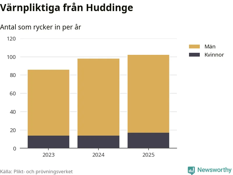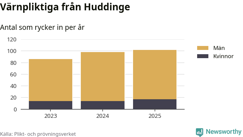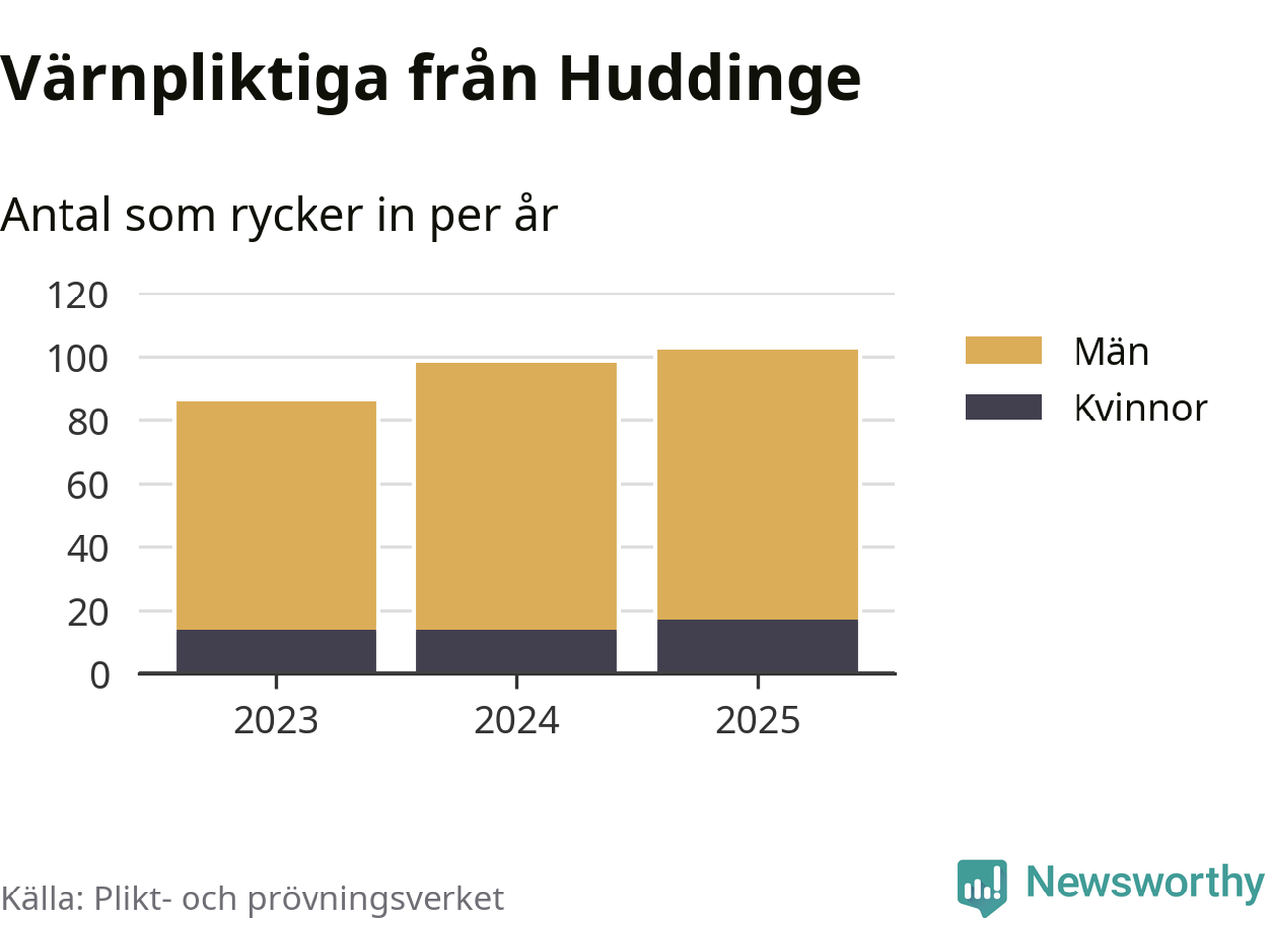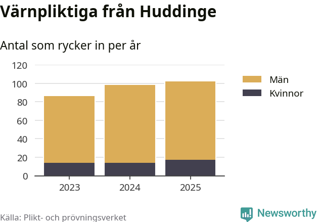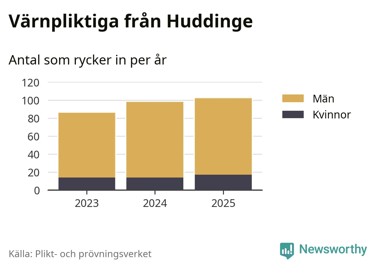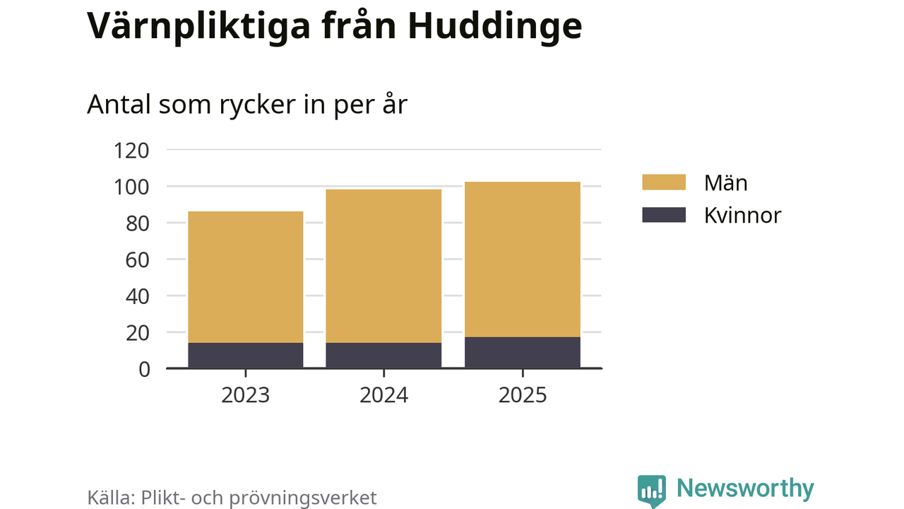 Sedan 2023 – som är det första året vi har jämförbara siffror för – har totalt 286 ungdomar från Huddinge påbörjat sin värnplikt. Av dem har 45 varit kvinnor.