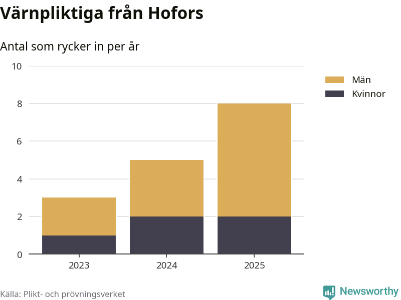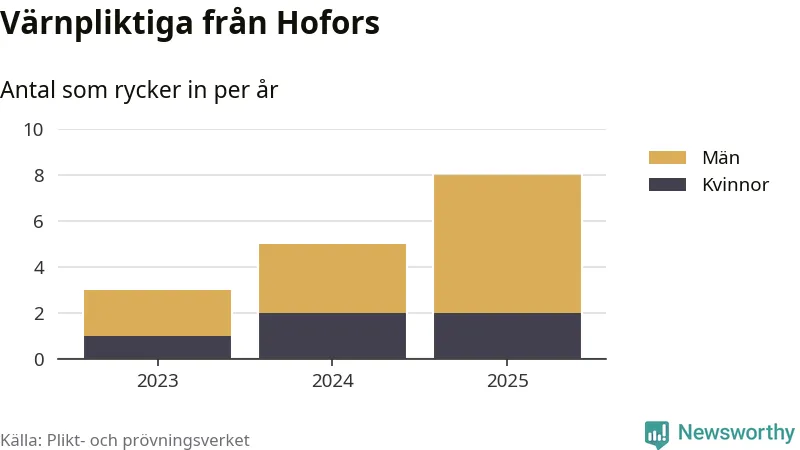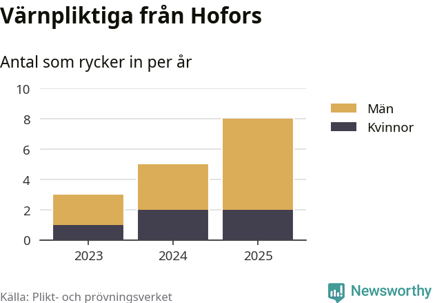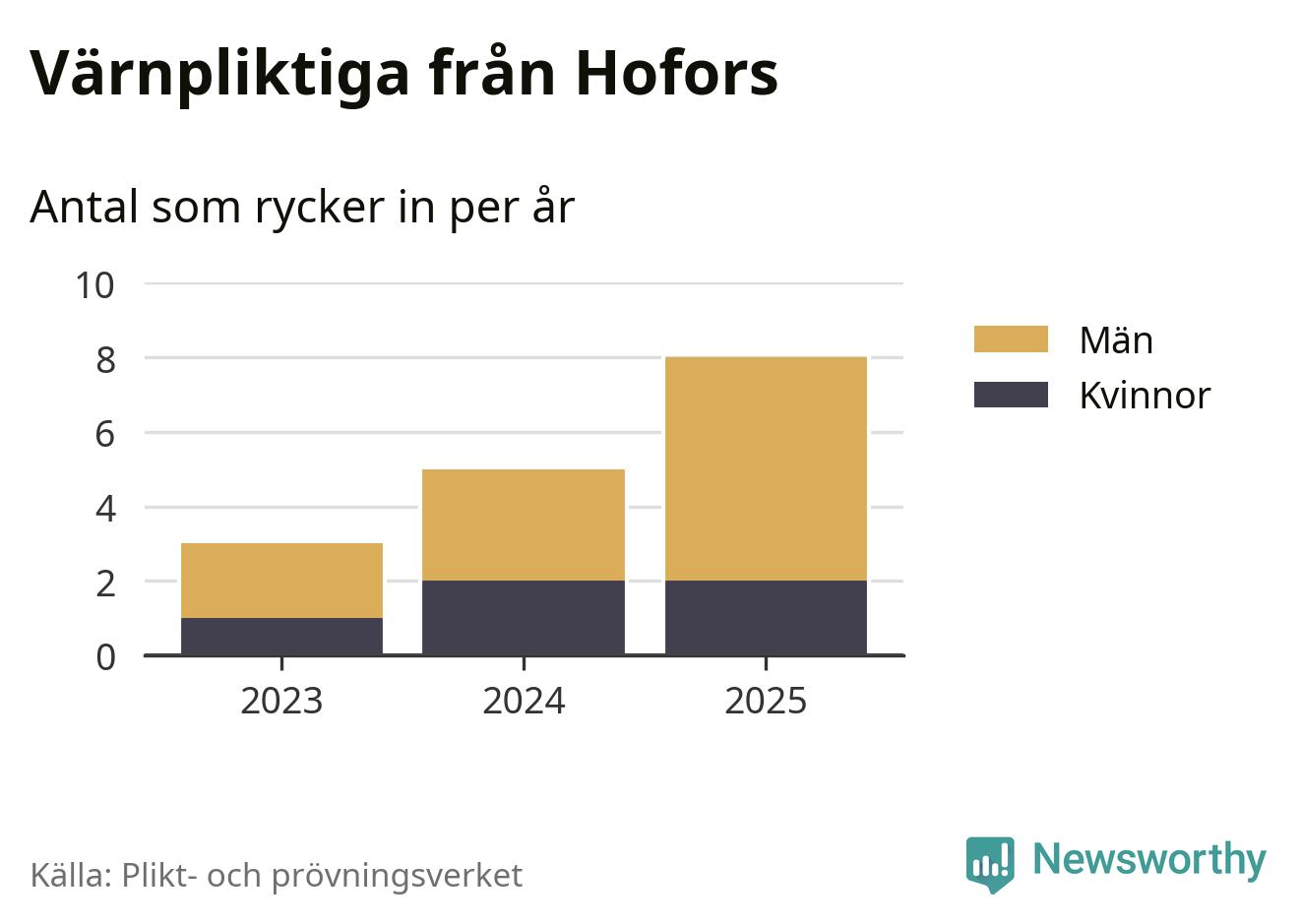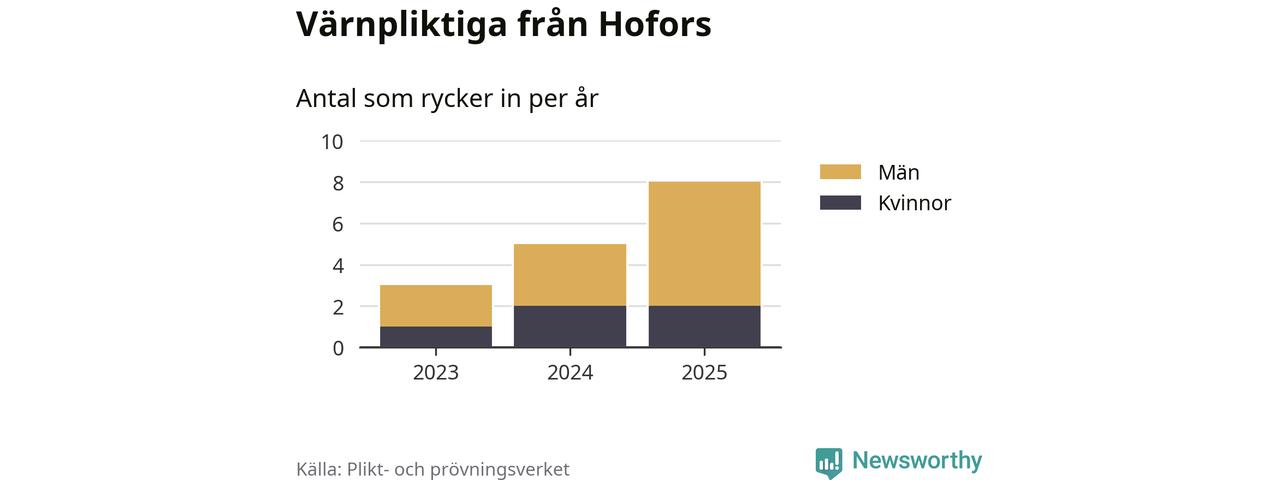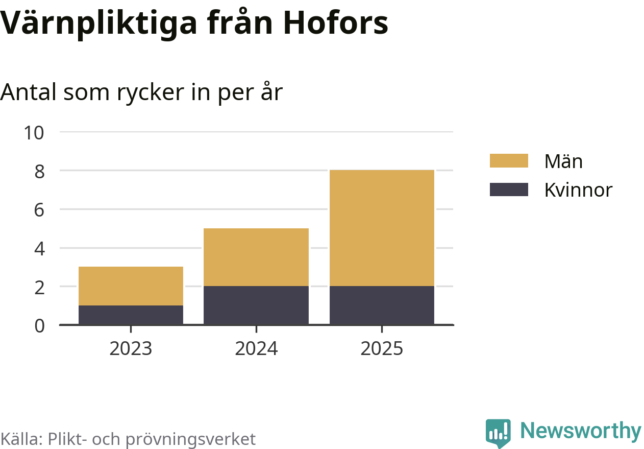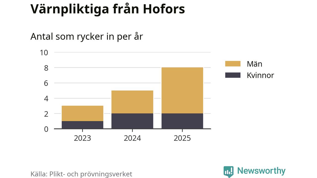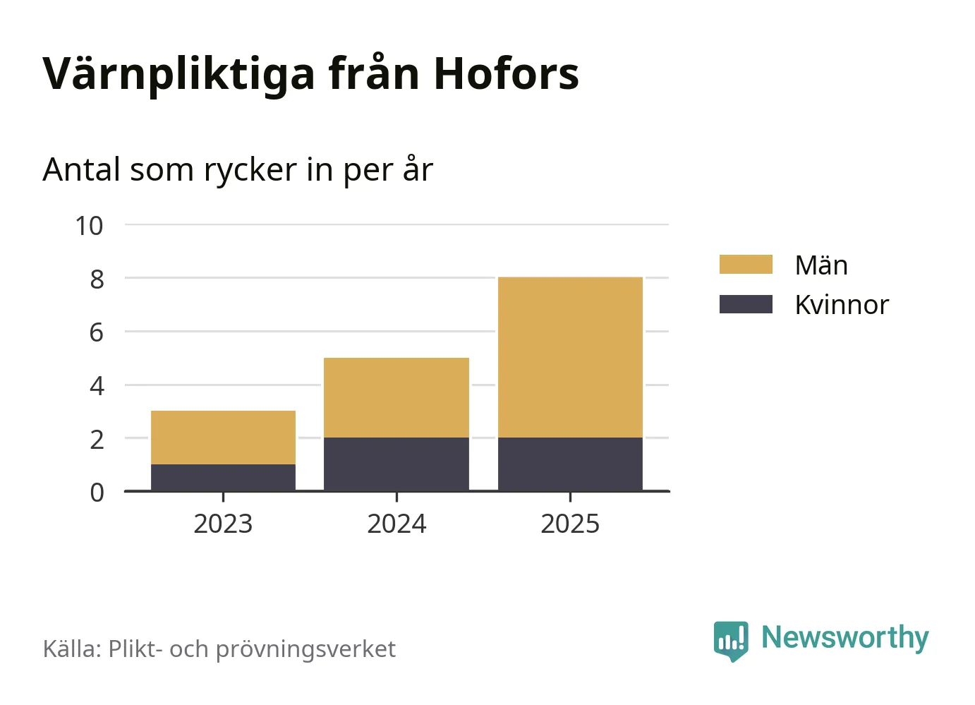Sedan 2023 – som är det första året vi har jämförbara siffror för – har totalt 16 ungdomar från Hofors påbörjat sin värnplikt. Av dem har fem varit kvinnor.