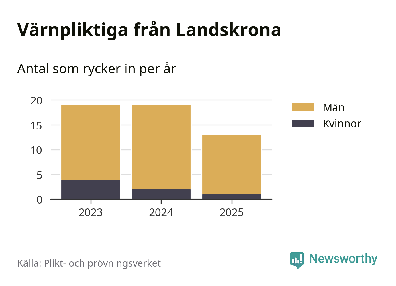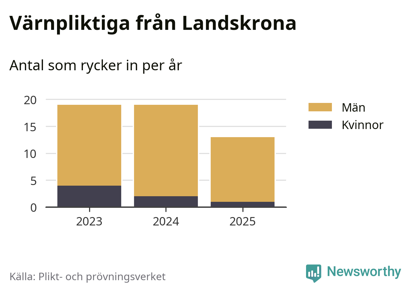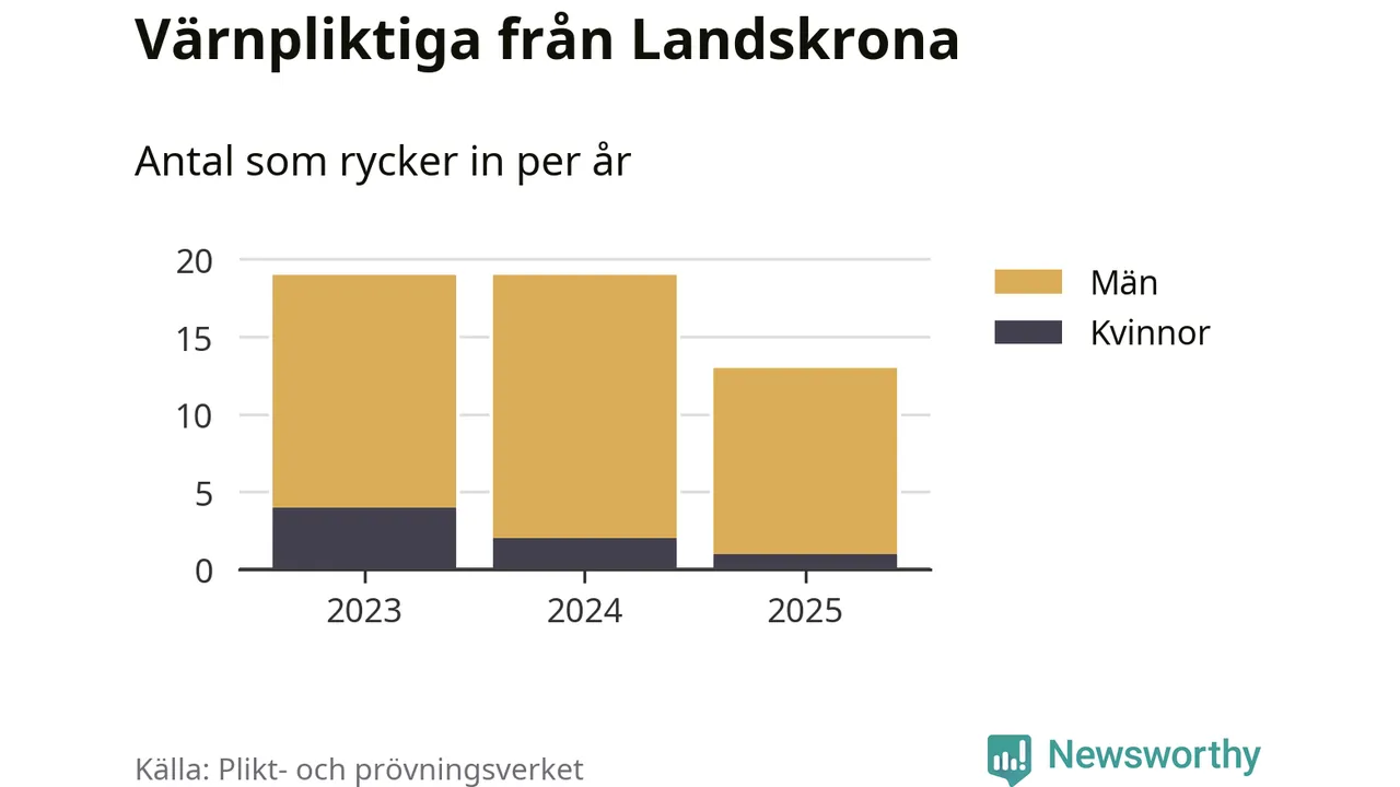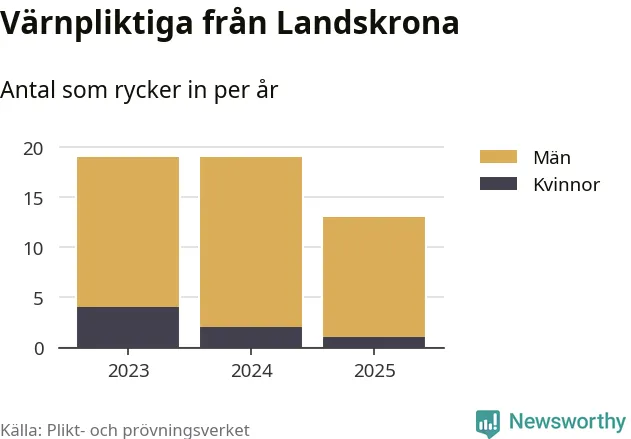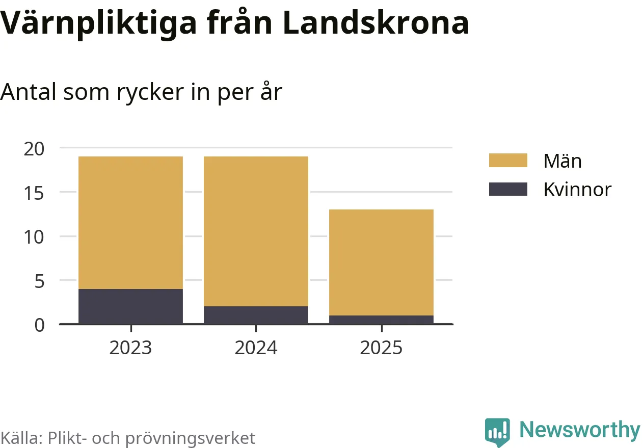 Sedan 2023 – som är det första året vi har jämförbara siffror för – har totalt 51 ungdomar från Landskrona påbörjat sin värnplikt. Av dem har sju varit kvinnor.