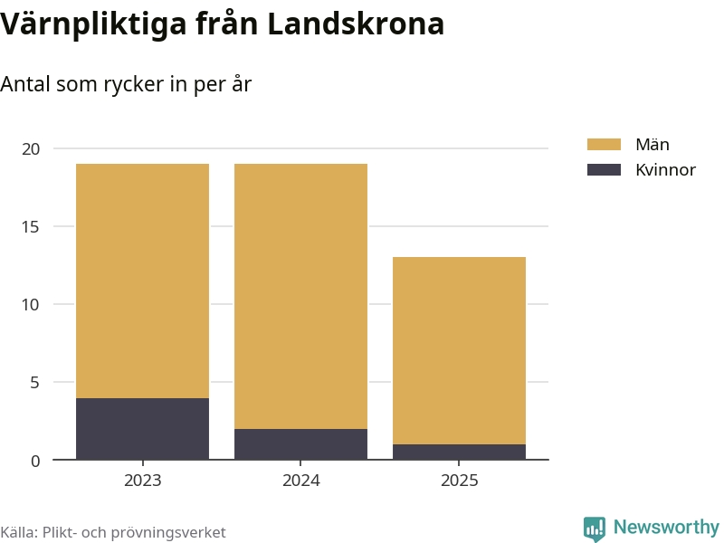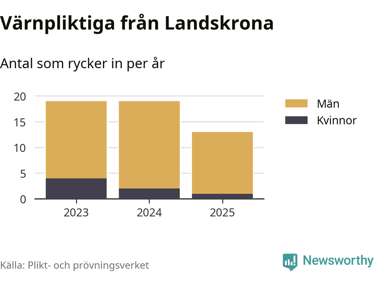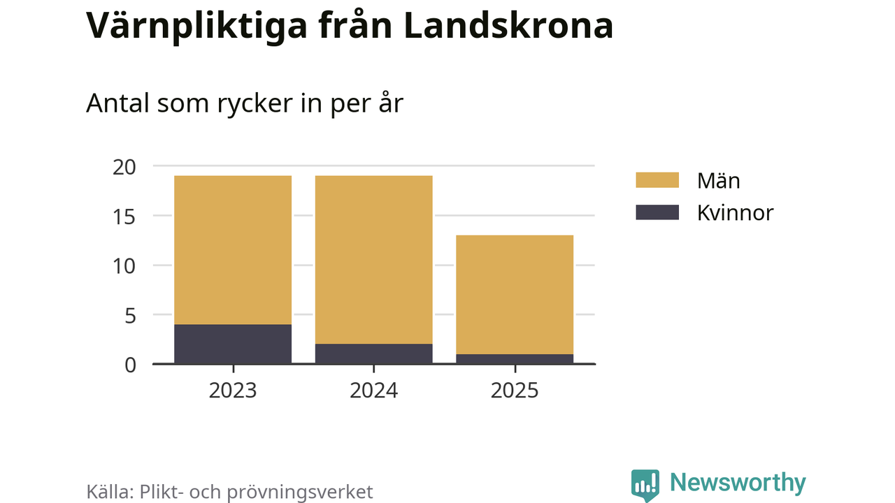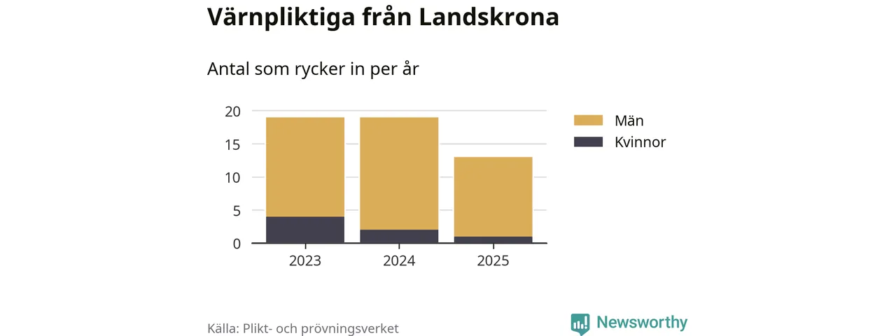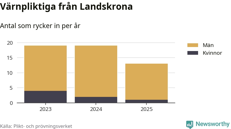 Sedan 2023 – som är det första året vi har jämförbara siffror för – har totalt 51 ungdomar från Landskrona påbörjat sin värnplikt. Av dem har sju varit kvinnor.