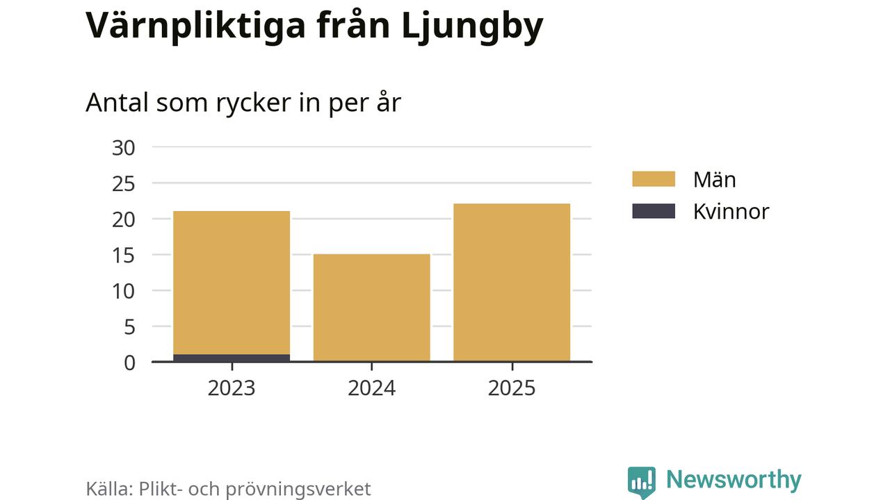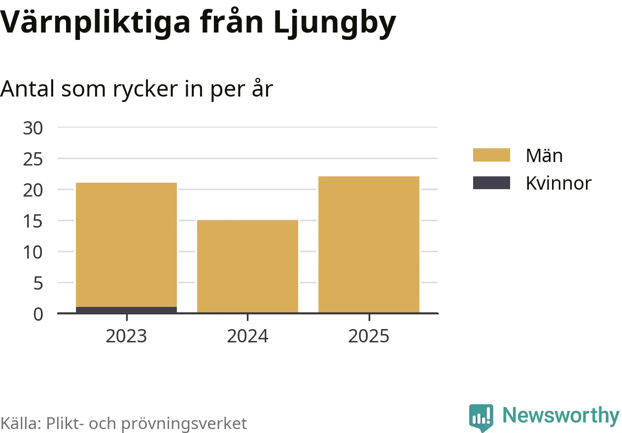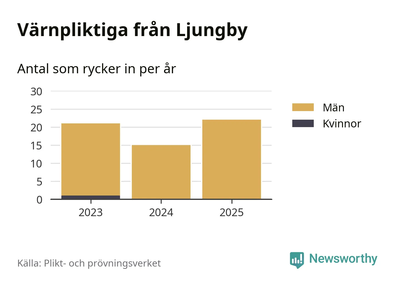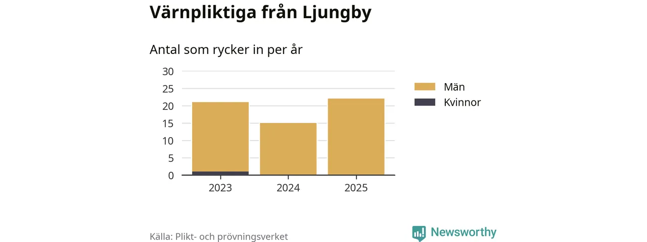 Sedan 2023 – som är det första året vi har jämförbara siffror för – har totalt 58 ungdomar från Ljungby påbörjat sin värnplikt. Av dem har en varit kvinna.