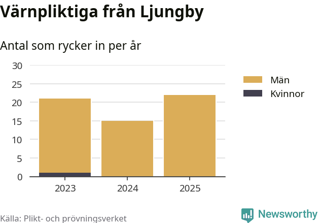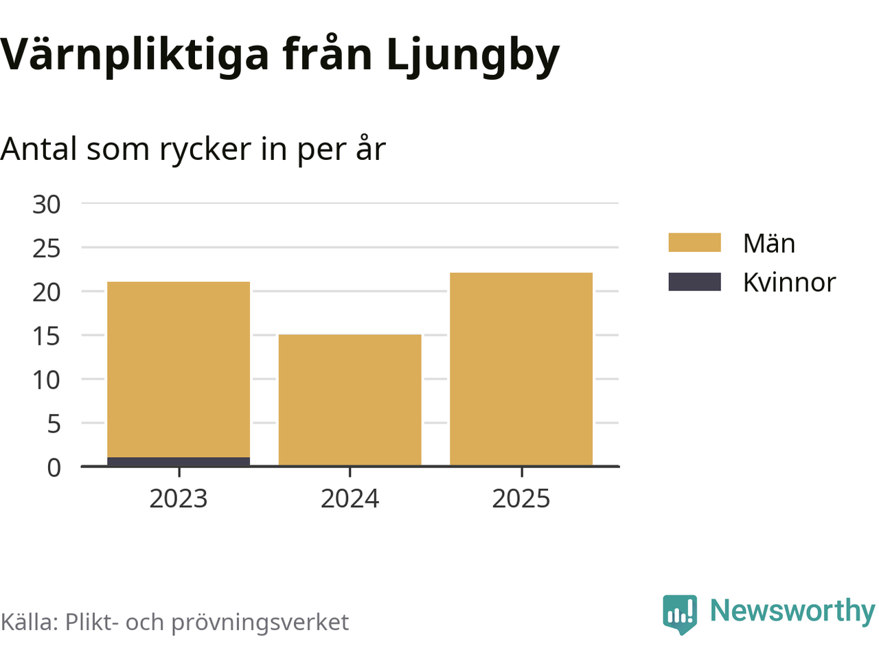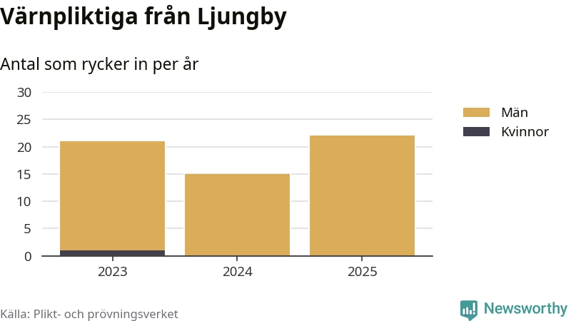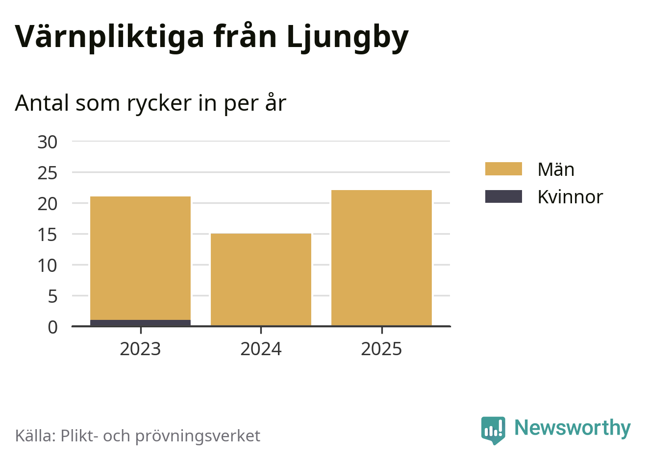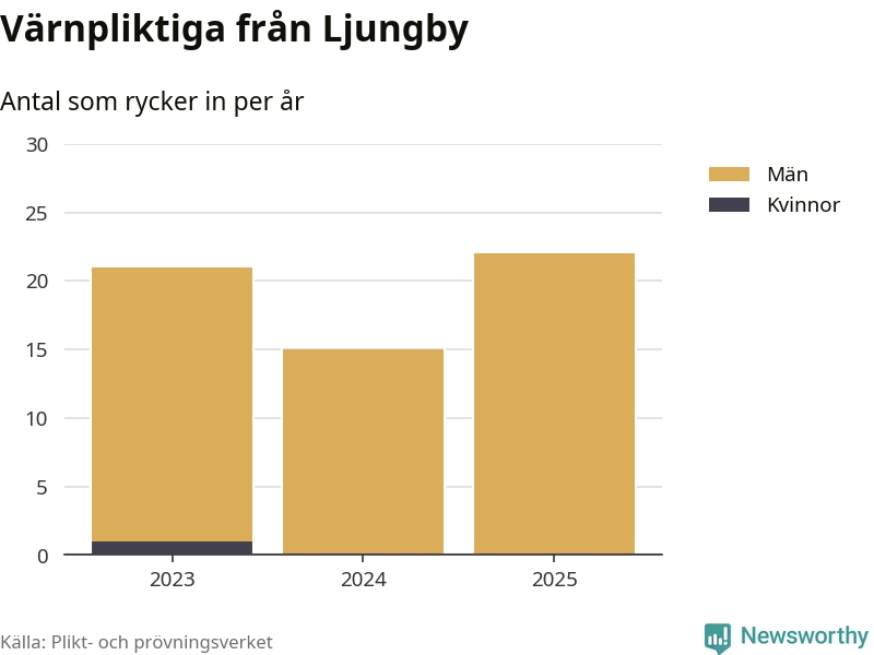 Sedan 2023 – som är det första året vi har jämförbara siffror för – har totalt 58 ungdomar från Ljungby påbörjat sin värnplikt. Av dem har en varit kvinna.