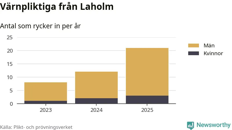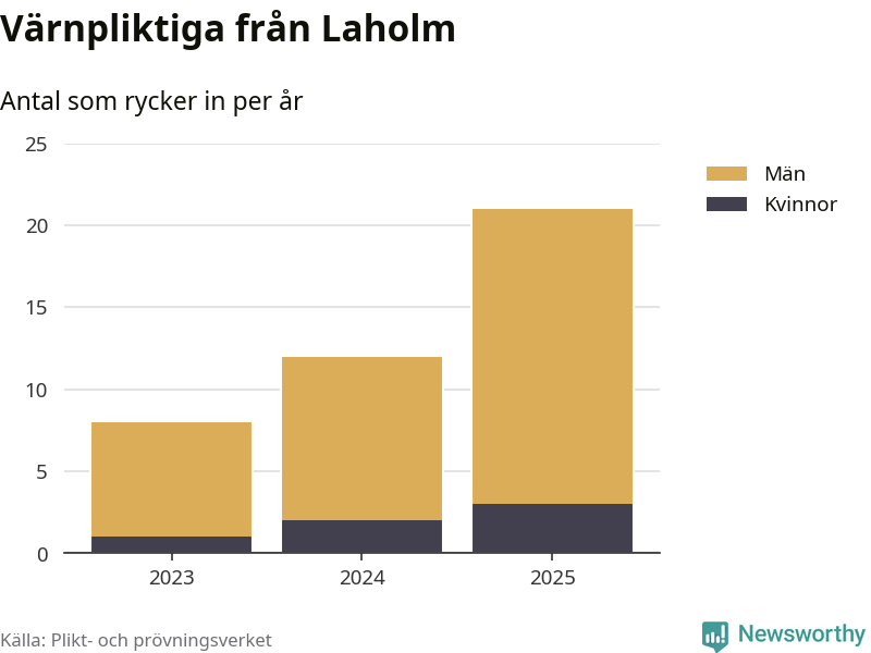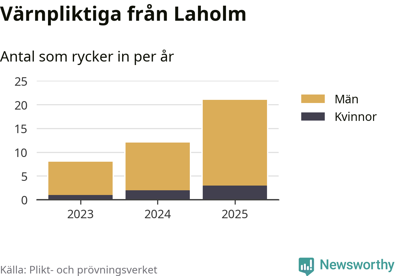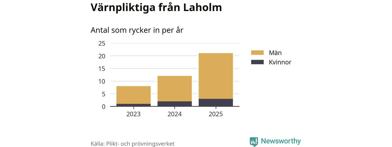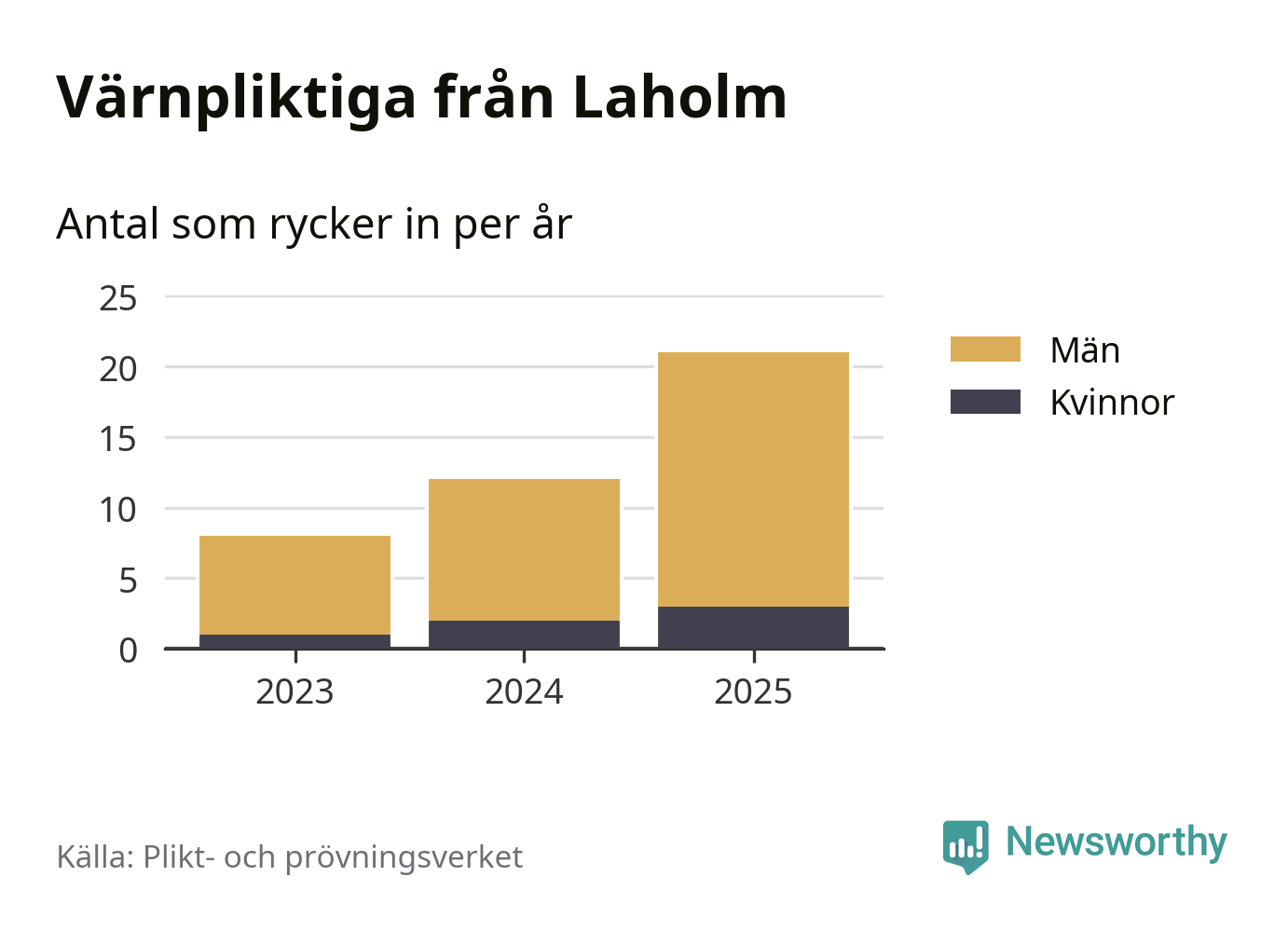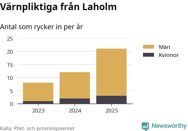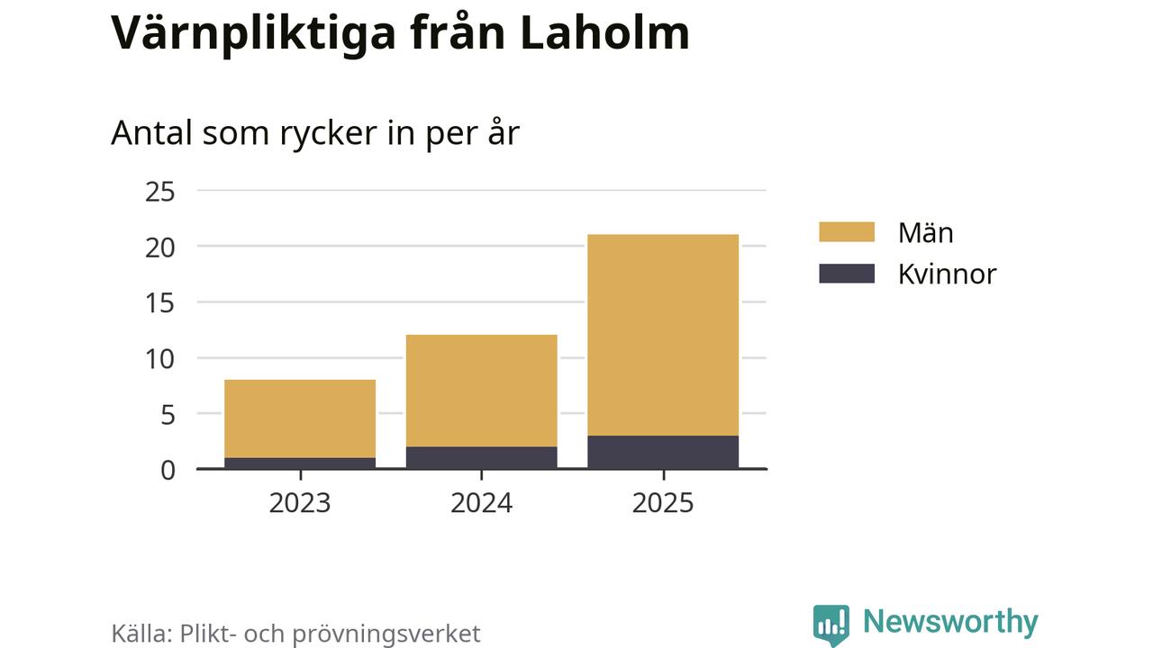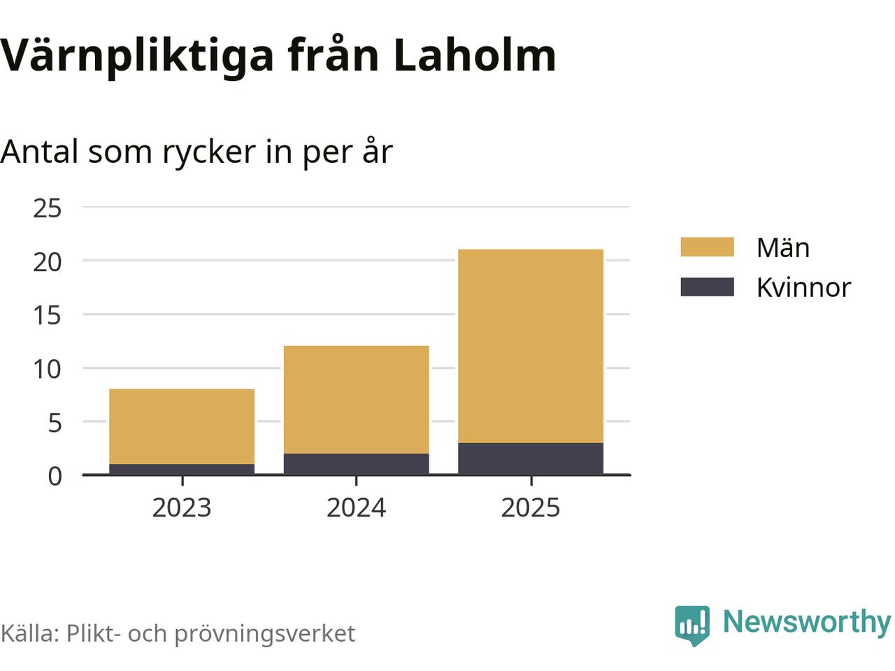 Sedan 2023 – som är det första året vi har jämförbara siffror för – har totalt 41 ungdomar från Laholm påbörjat sin värnplikt. Av dem har sex varit kvinnor.