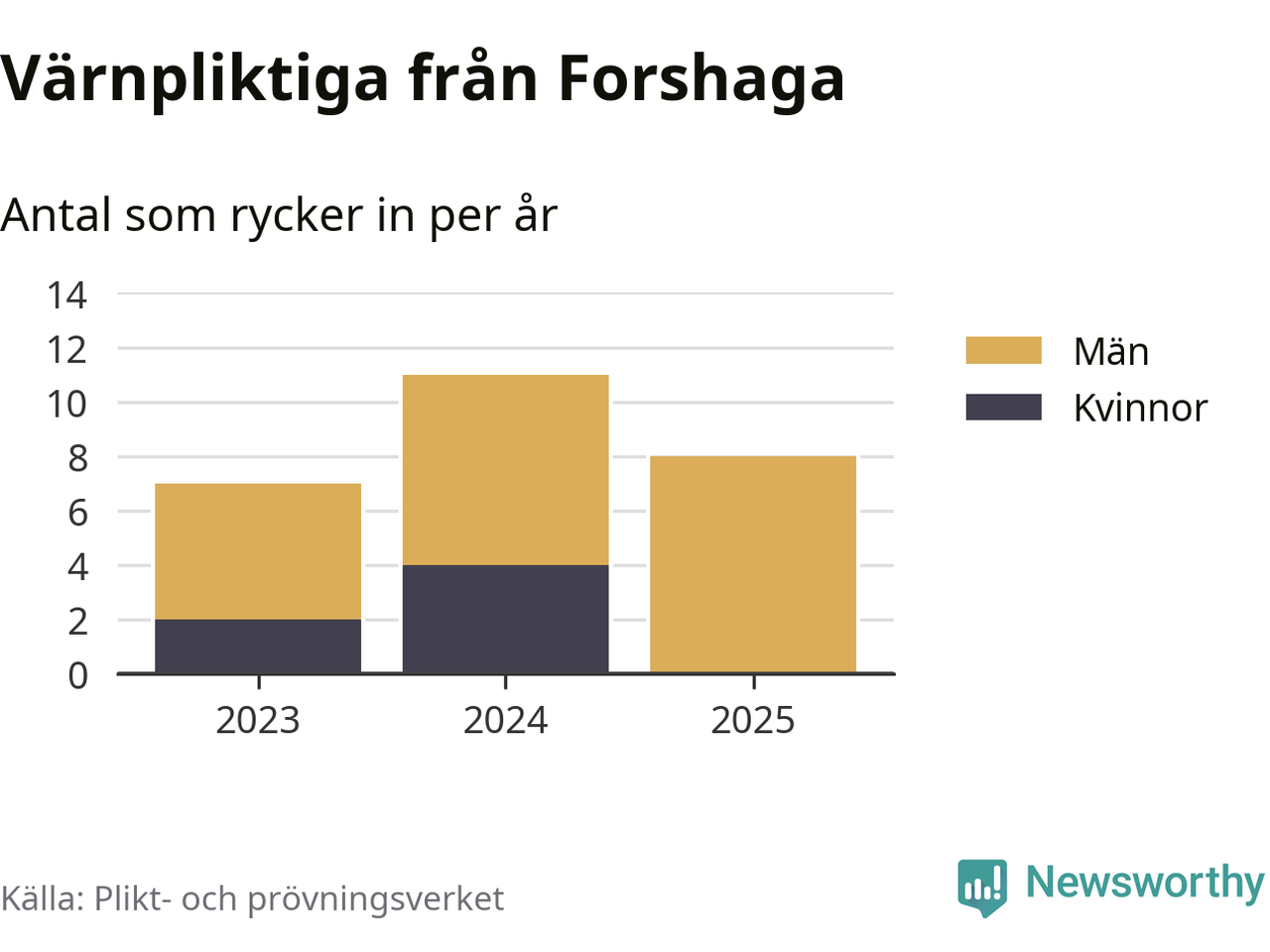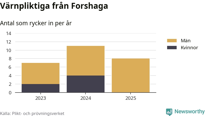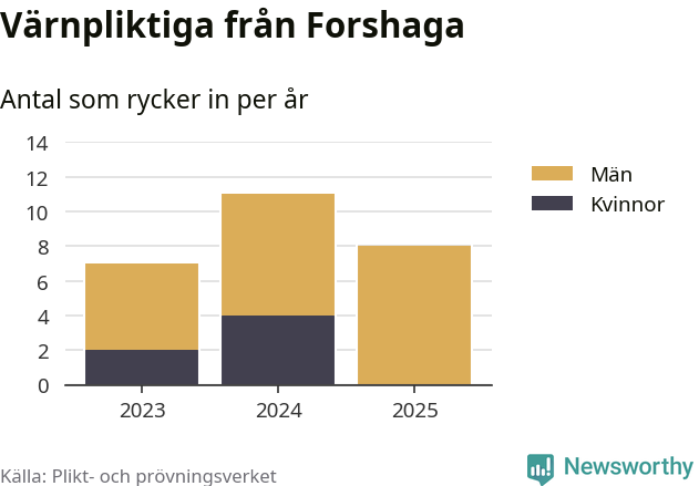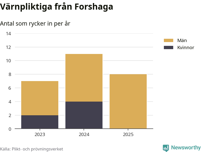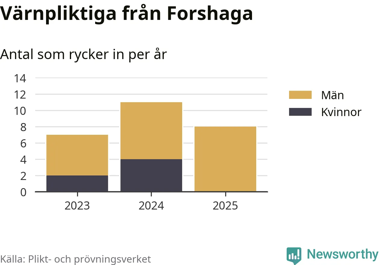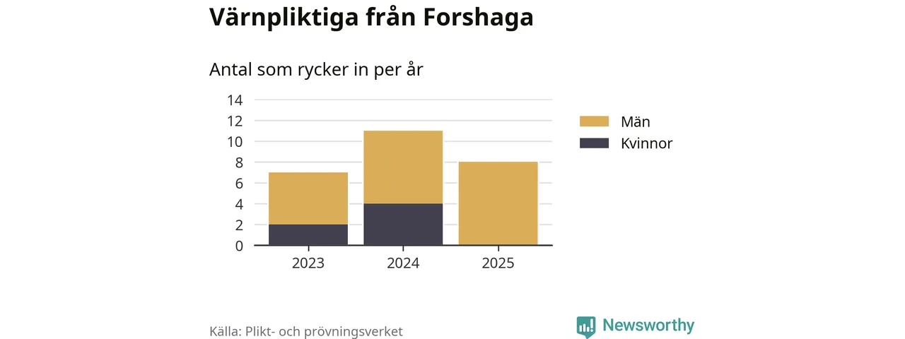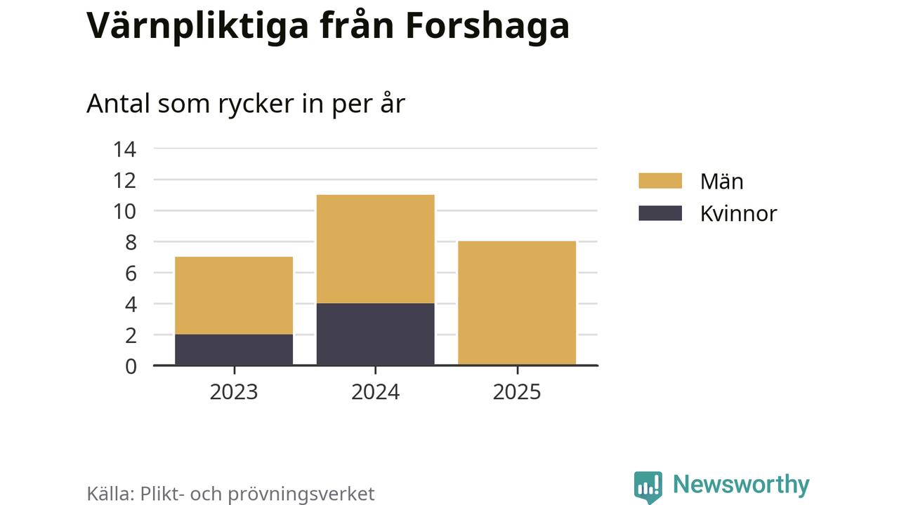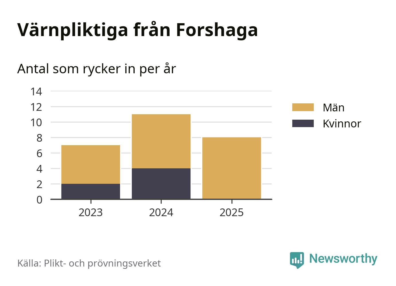 Sedan 2023 – som är det första året vi har jämförbara siffror för – har totalt 26 ungdomar från Forshaga påbörjat sin värnplikt. Av dem har sex varit kvinnor.