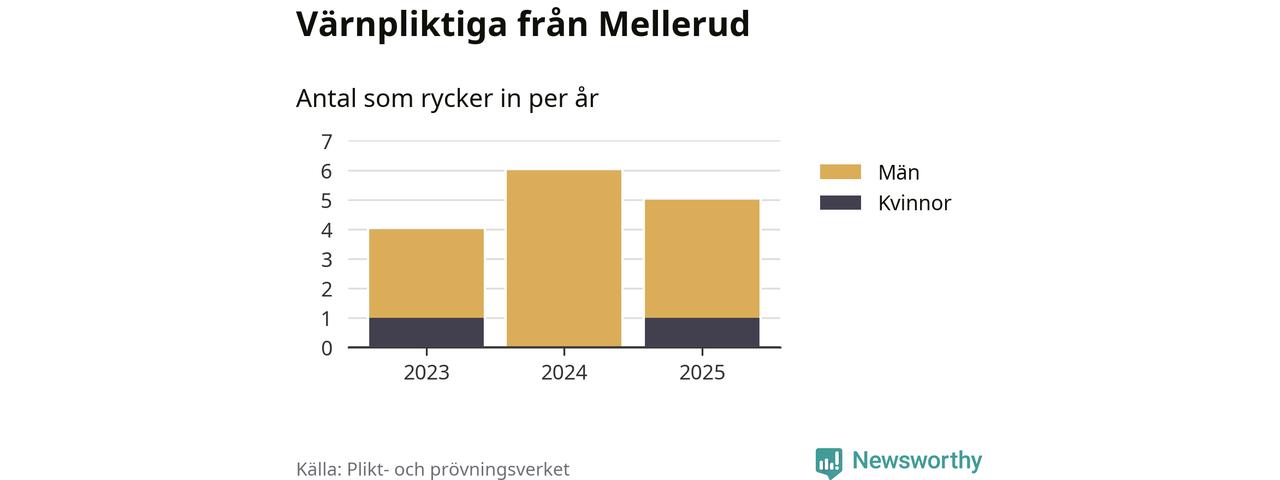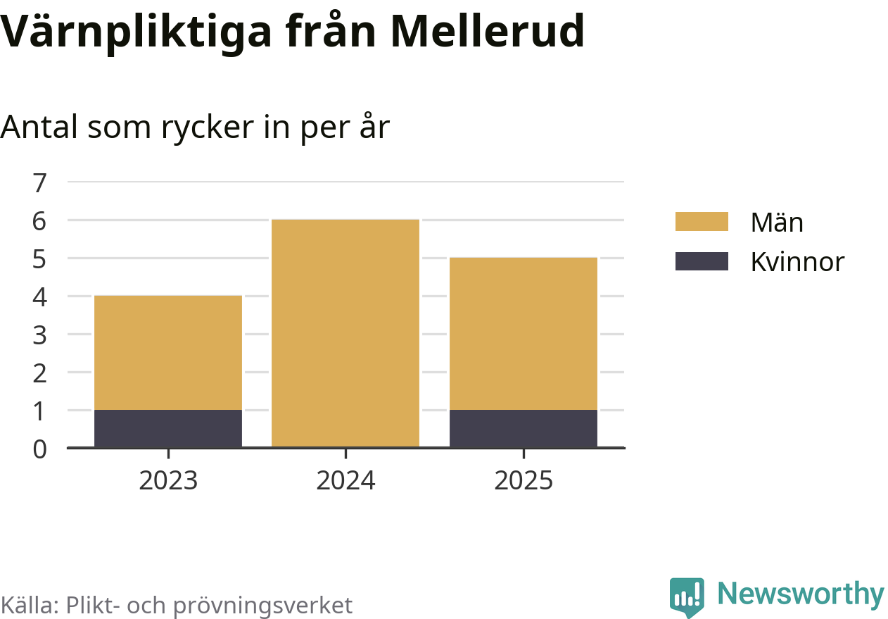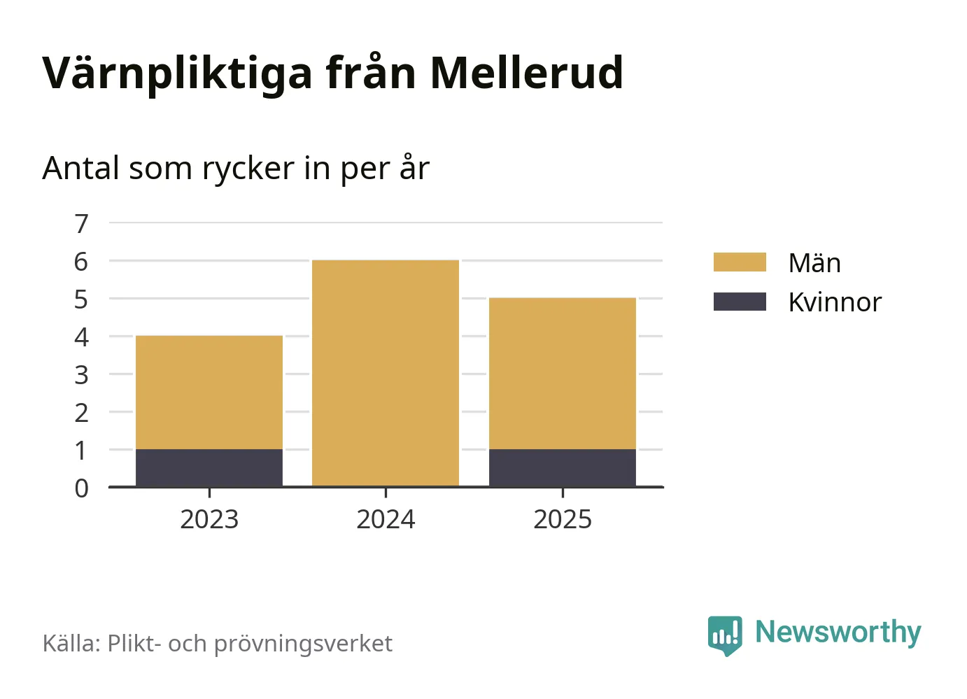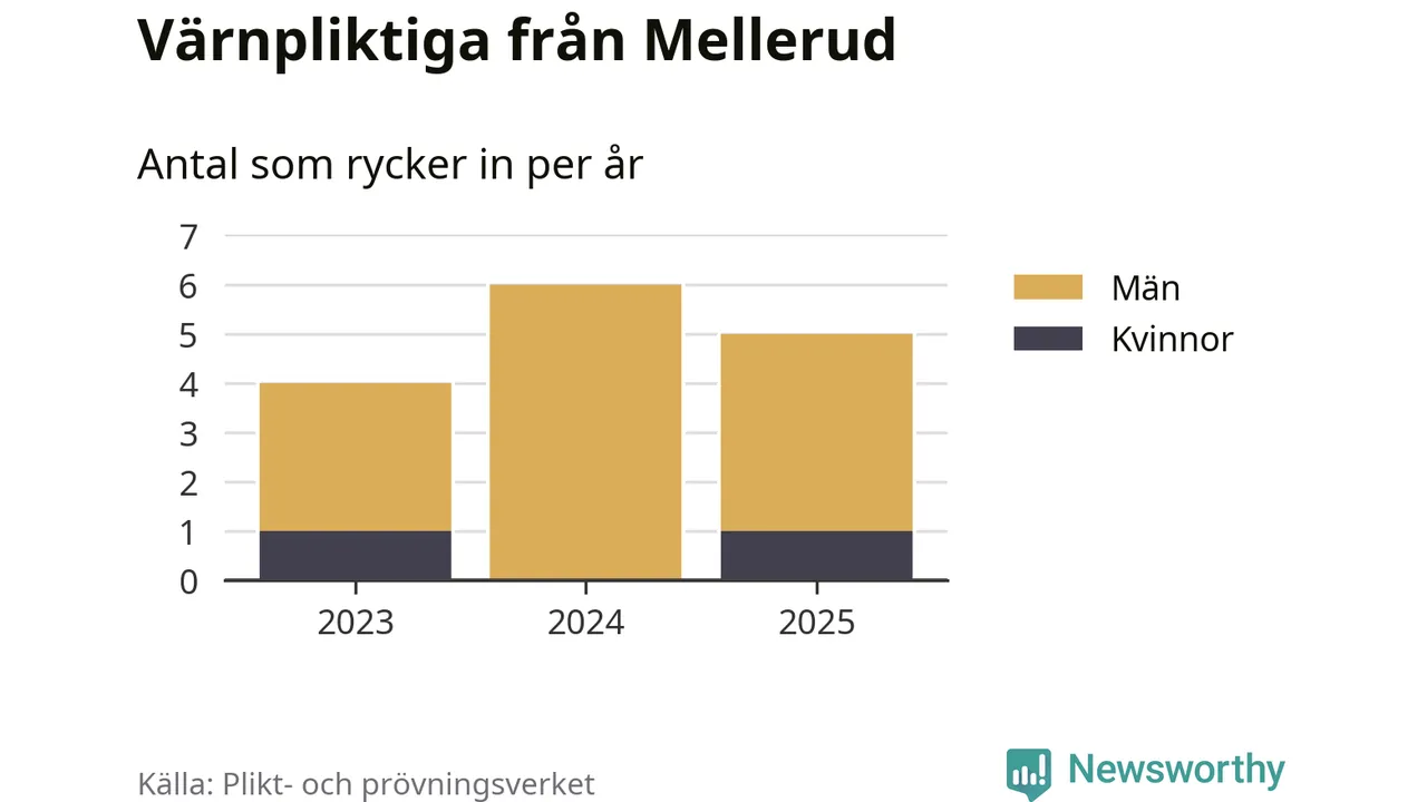 Sedan 2023 – som är det första året vi har jämförbara siffror för – har totalt 15 ungdomar från Mellerud påbörjat sin värnplikt. Av dem har två varit kvinnor.