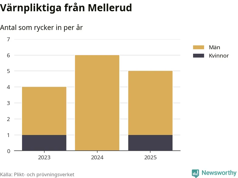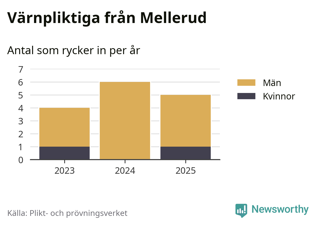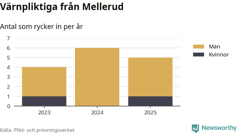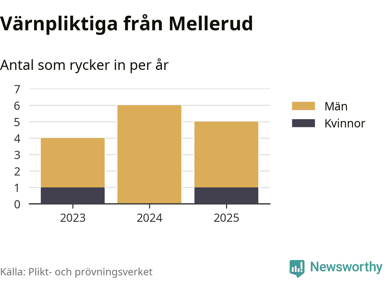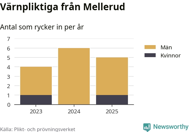 Sedan 2023 – som är det första året vi har jämförbara siffror för – har totalt 15 ungdomar från Mellerud påbörjat sin värnplikt. Av dem har två varit kvinnor.