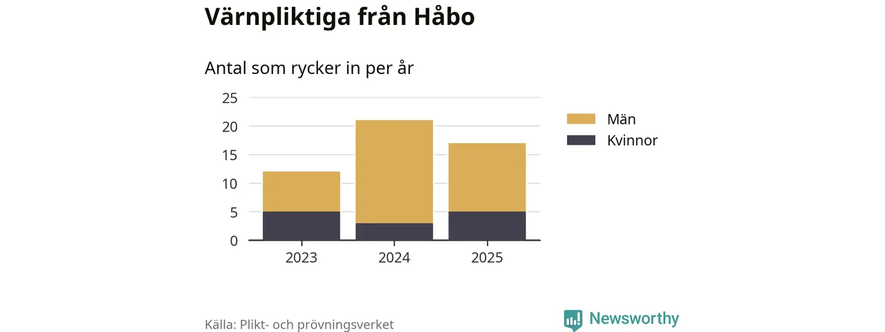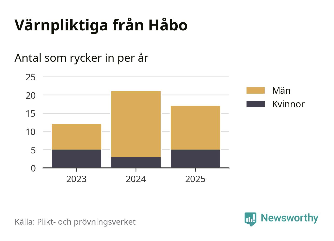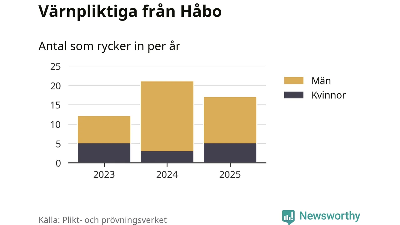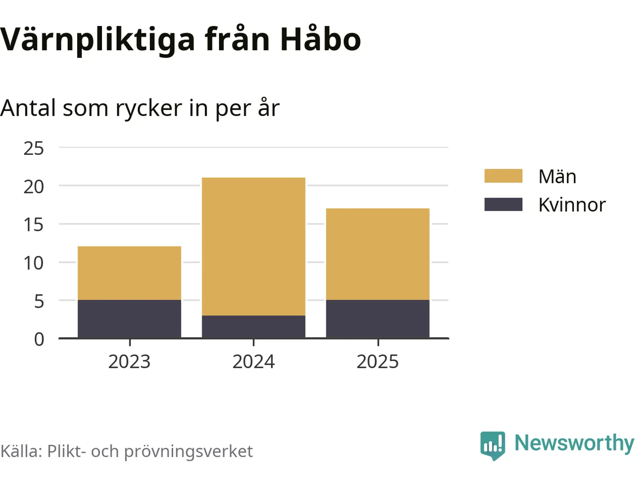 Sedan 2023 – som är det första året vi har jämförbara siffror för – har totalt 50 ungdomar från Håbo påbörjat sin värnplikt. Av dem har 13 varit kvinnor.