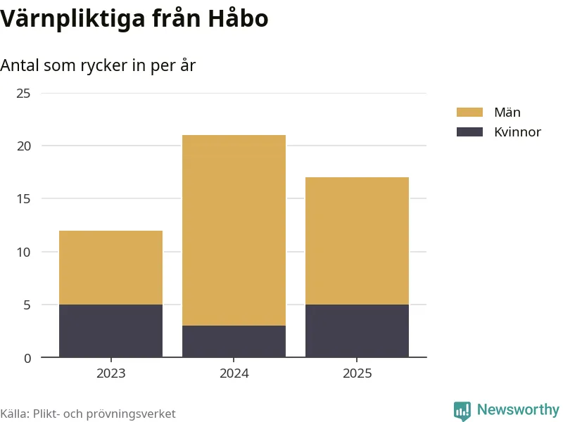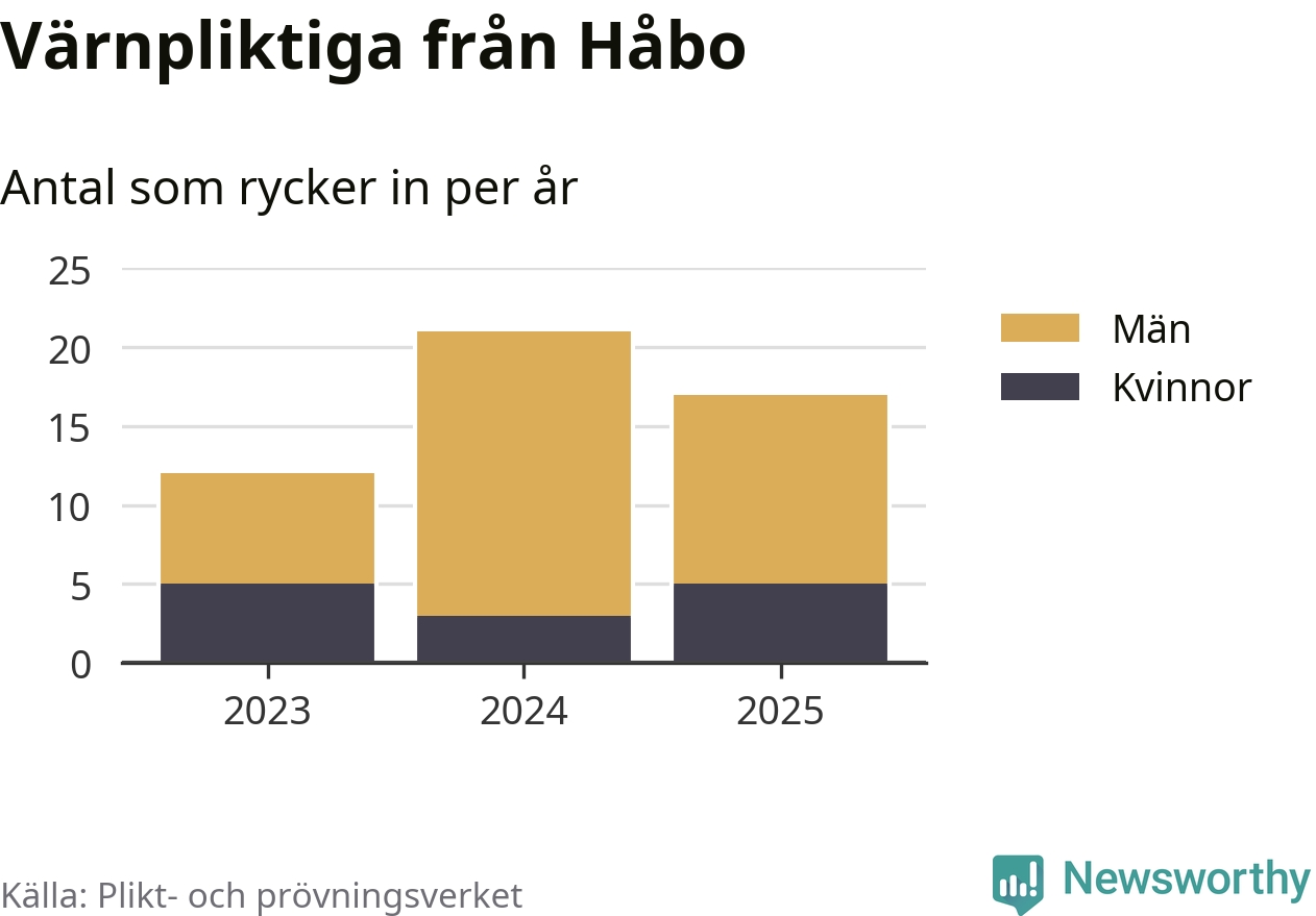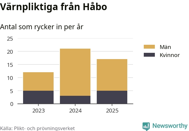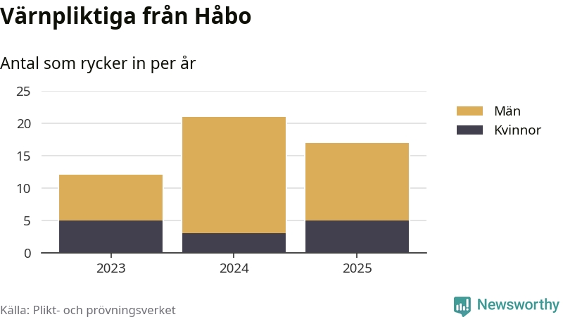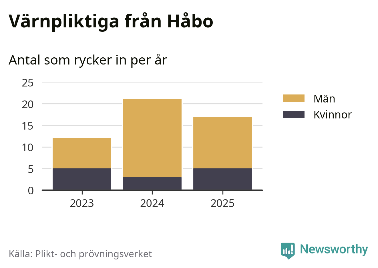 Sedan 2023 – som är det första året vi har jämförbara siffror för – har totalt 50 ungdomar från Håbo påbörjat sin värnplikt. Av dem har 13 varit kvinnor.